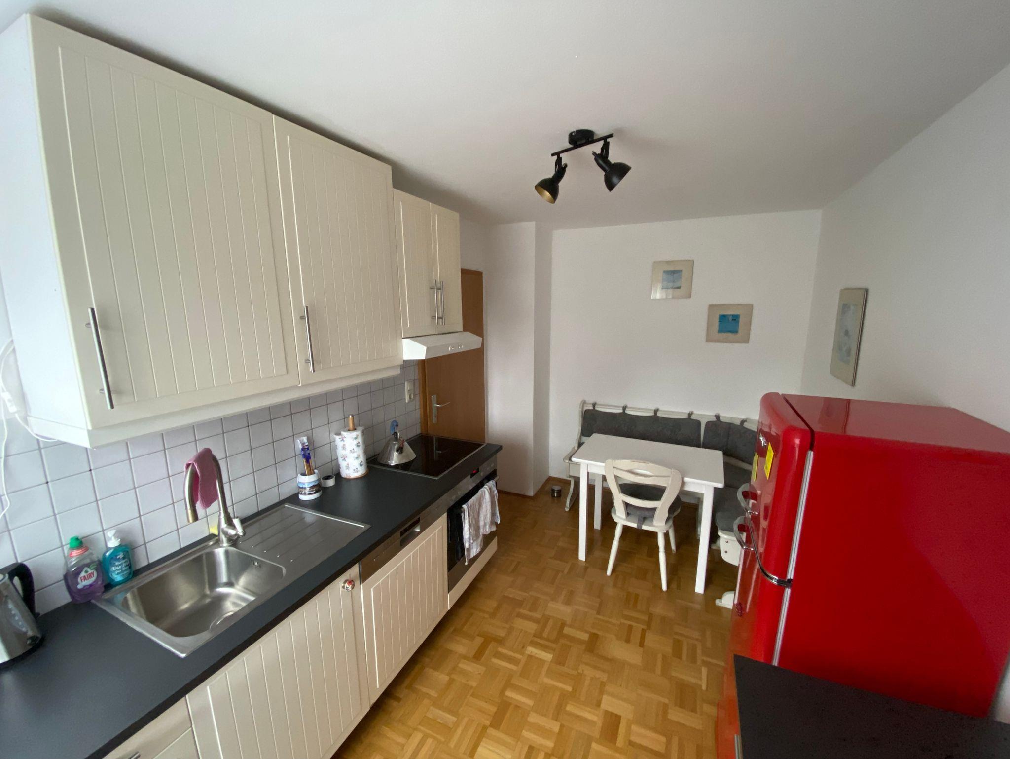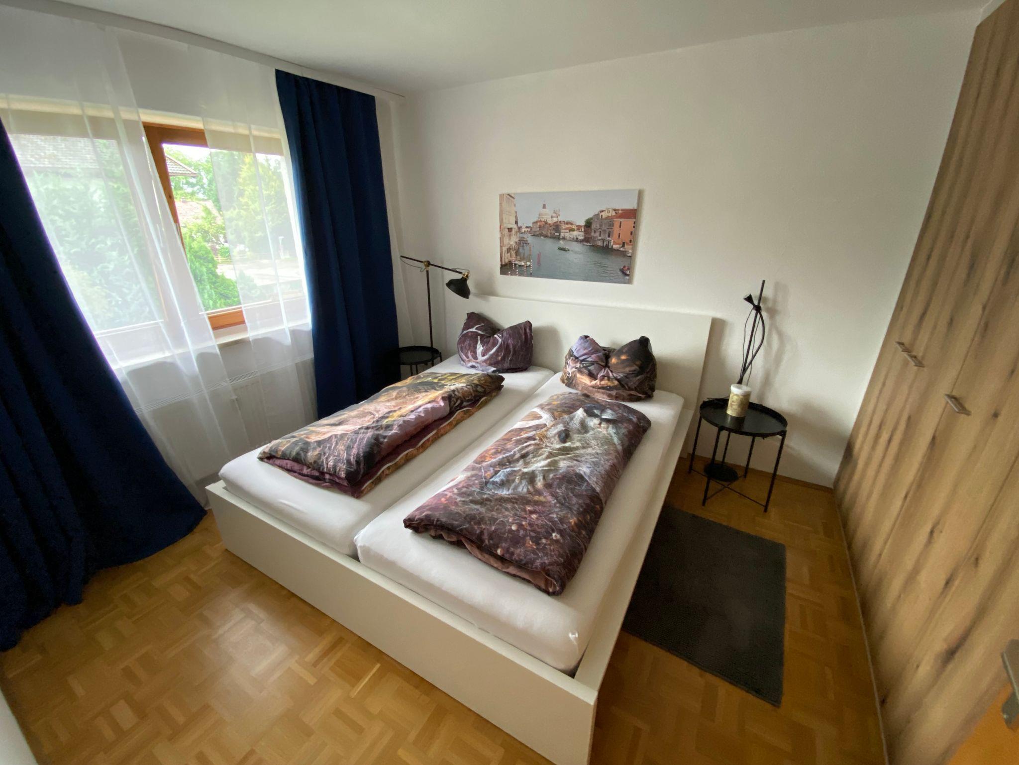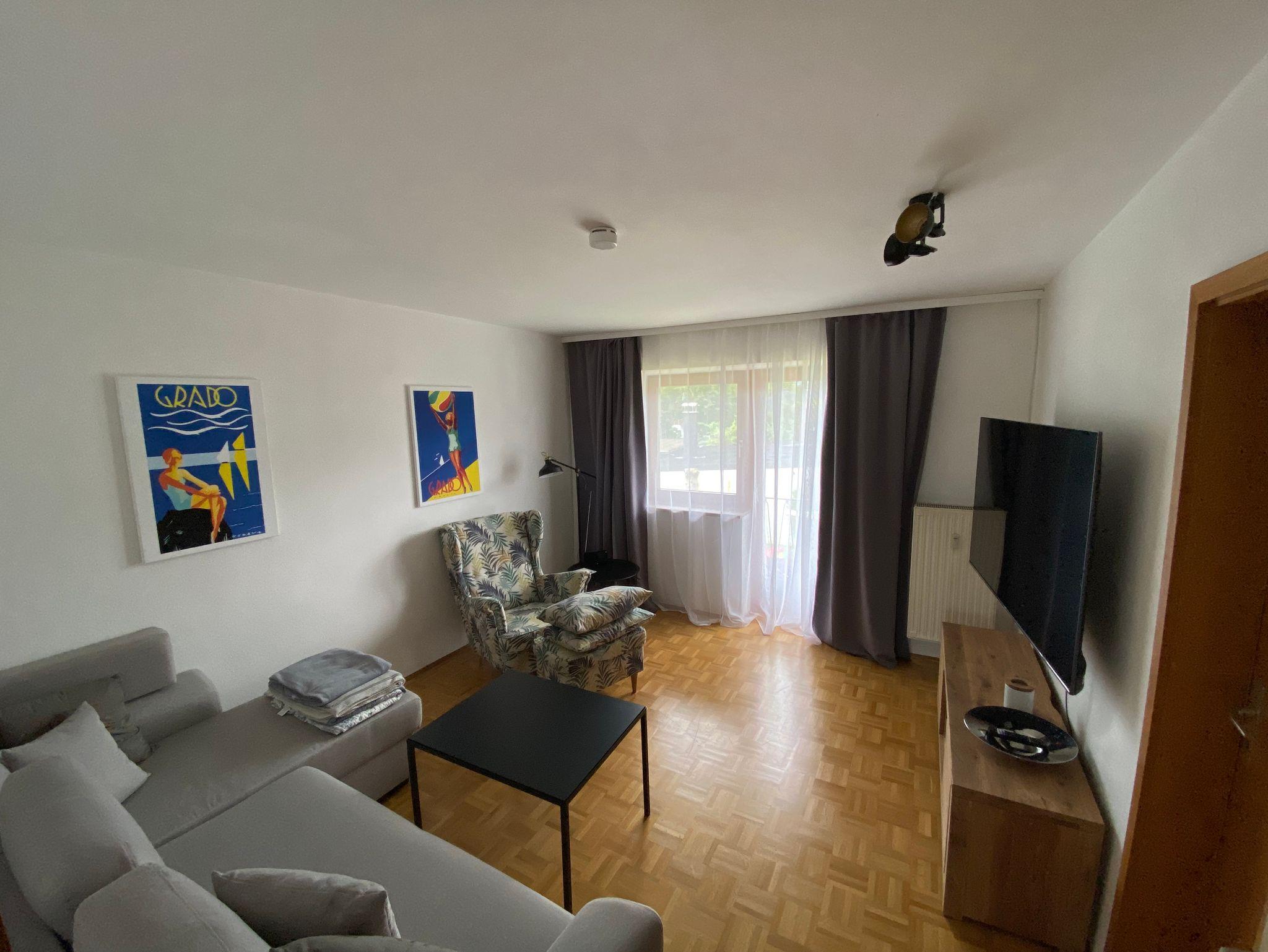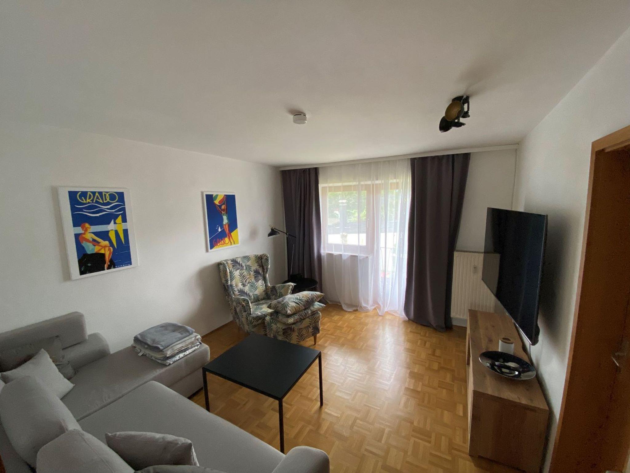 Gemütliche Ferienwohnung für 2 Personen. Im 1. Stock mit Balkon und Bergblick. Großes Doppelbett. Wohnzimmer mit Sitzgruppe und großem Flatscreen-TV. Badezimmer mit Badewanne/WC. Küche ausgestattet mit Eckbank, komplette Küchenzeile mit Backofen und Kühlschrank mit Eisfach.