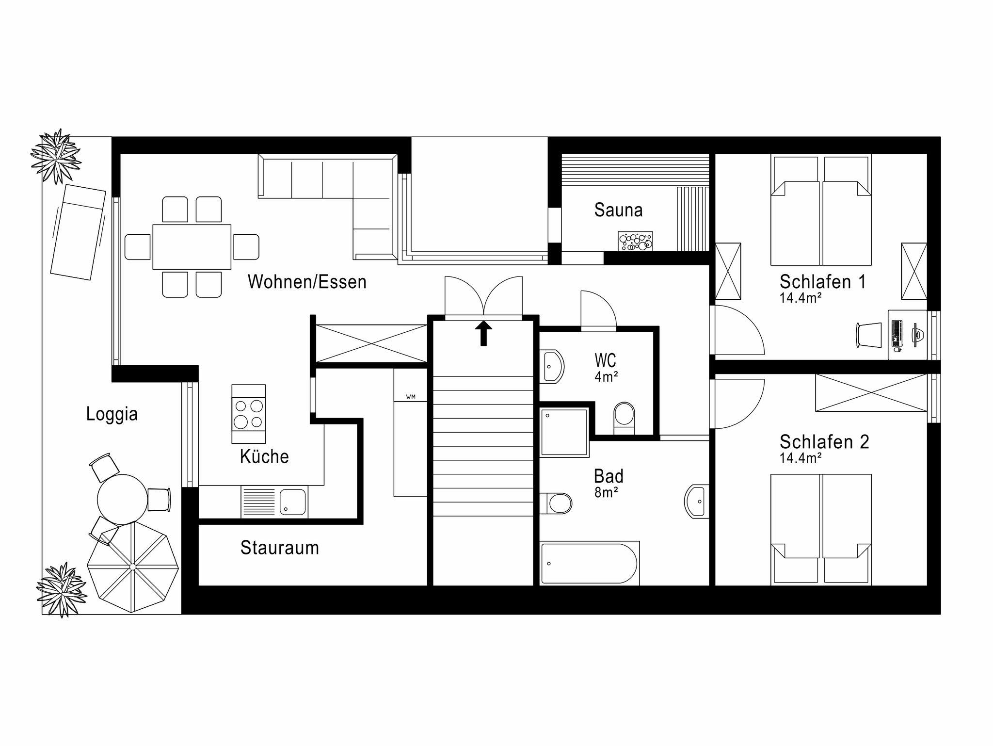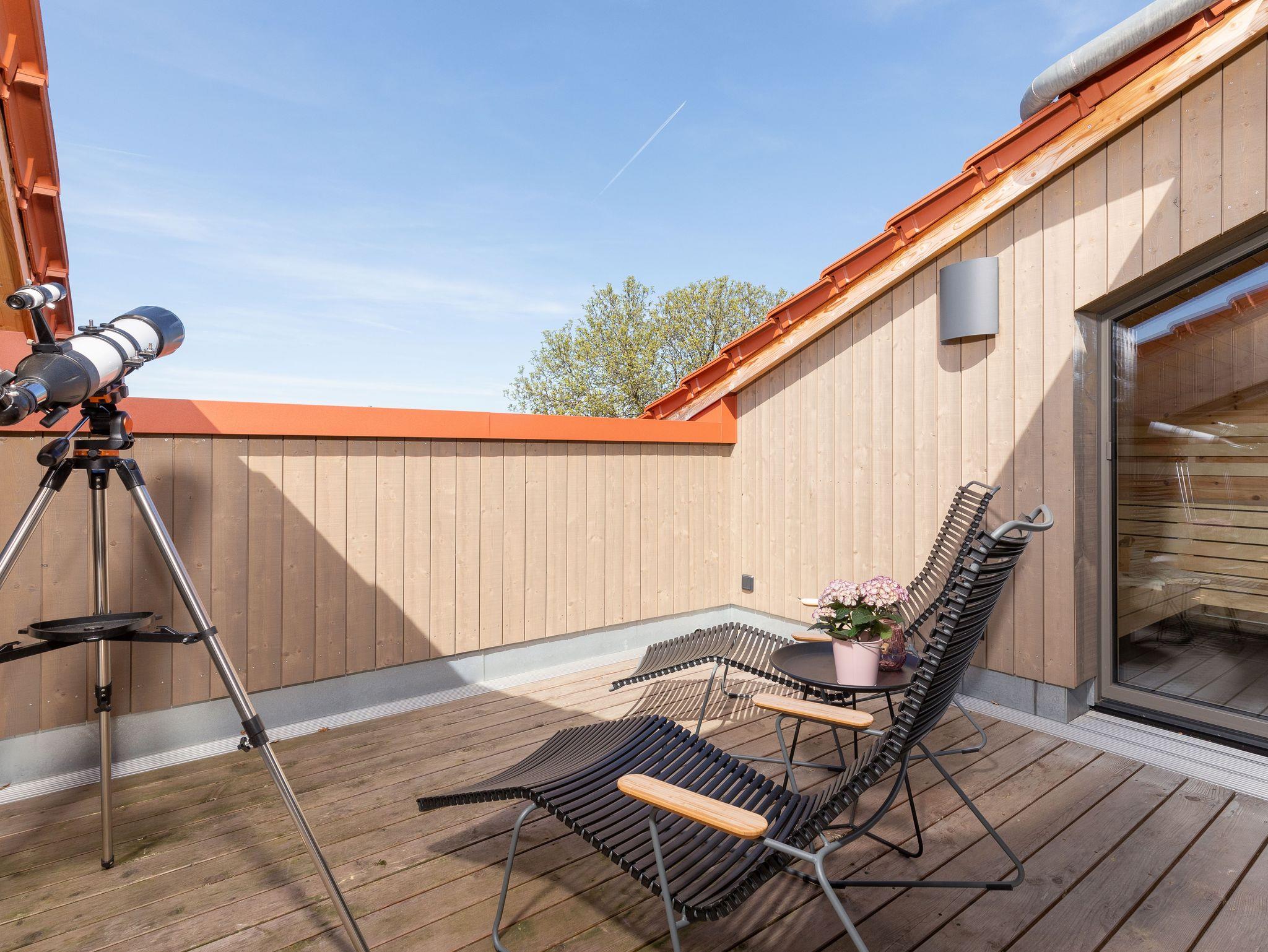 Hier ist noch Sonne, bis in die späten Abendstunden. Ungestört relaxen und Frischluft nach einem Saunagang. Cabrio-Feeling inmitten Ihres Ferienlofts!