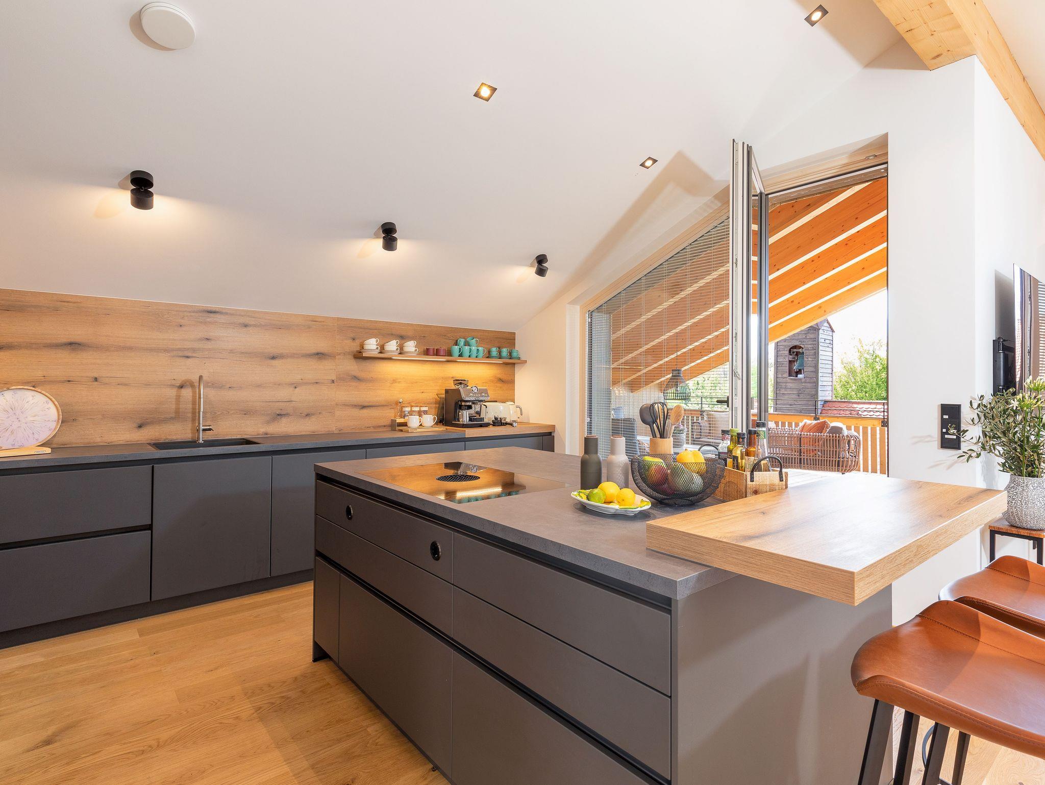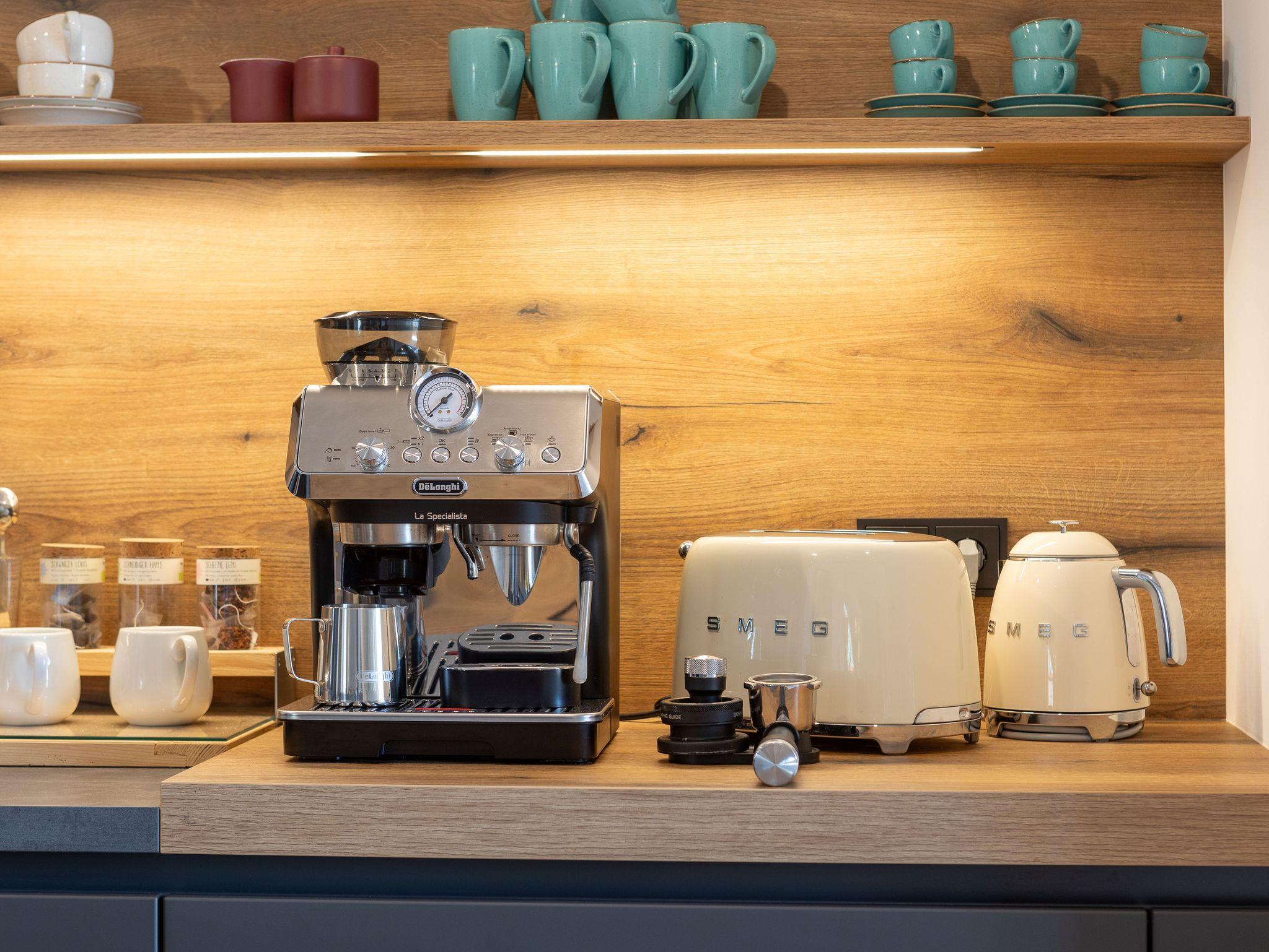 Voll ausgestattete Küche mit Kühlschrank, Spülmaschine, Gefrierfächer, Kaffeemaschinen, Toaster, Wasserkocher, Mikrowelle, Thermomix T31 (incl. Kochbücher), Herdplatte mit Boraabzug, Eierkocher, Wassersprudler (incl. Patronen- natürlich kostenlos) Geschirr reicht für 12 Personen usw…