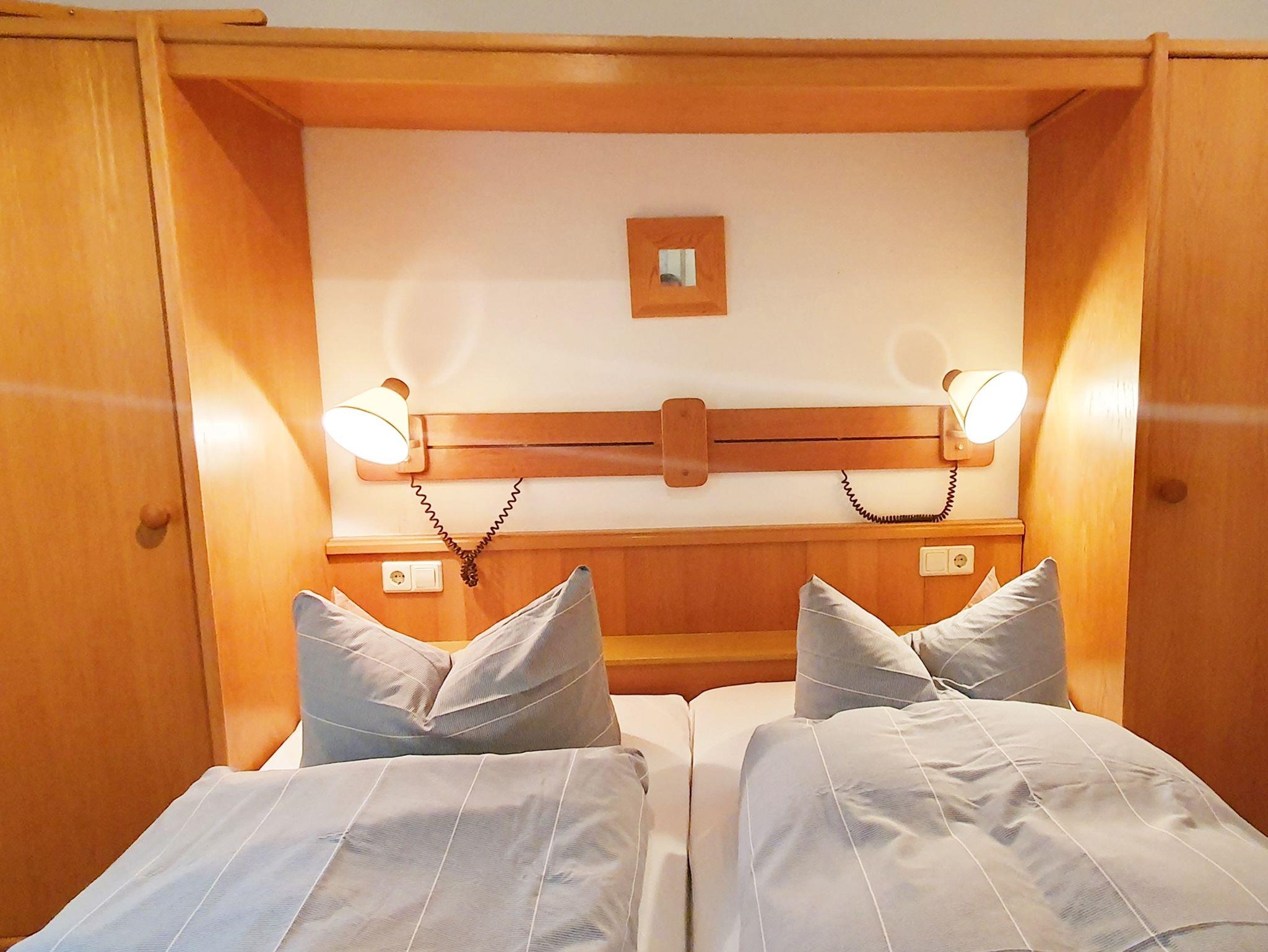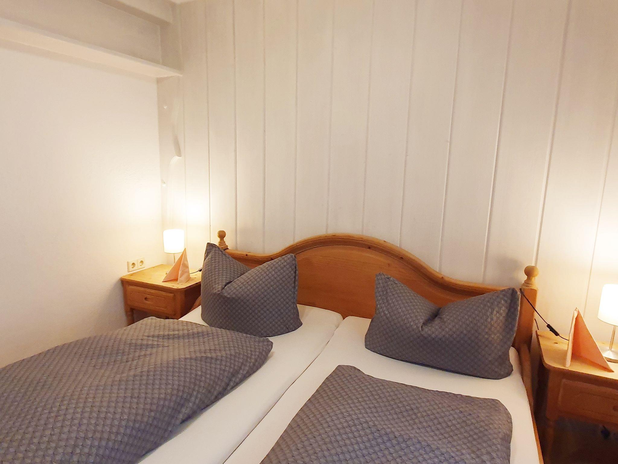 Unser komfortables Vierbettzimmer bietet Platz für bis zu vier Personen und ist ideal für Familien oder kleine Gruppen. Die Ausstattung umfasst ein gemütliches Doppelbett, ein Einzelbett sowie eine praktische Schlafcouch. Das Zimmer verfügt über ein eigenes Badezimmer mit Dusche und WC.