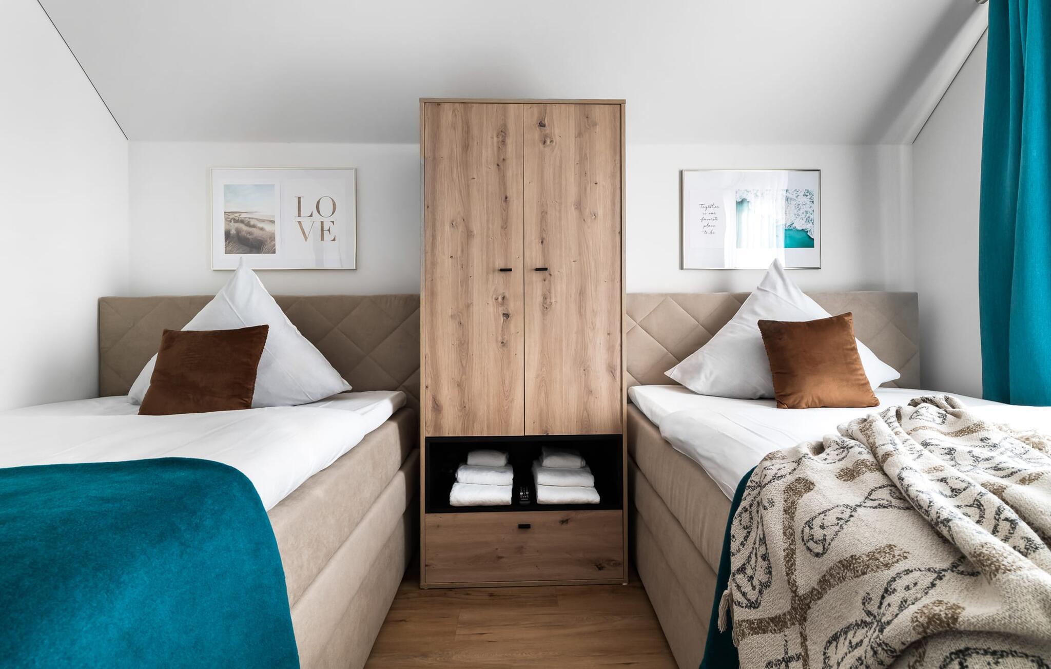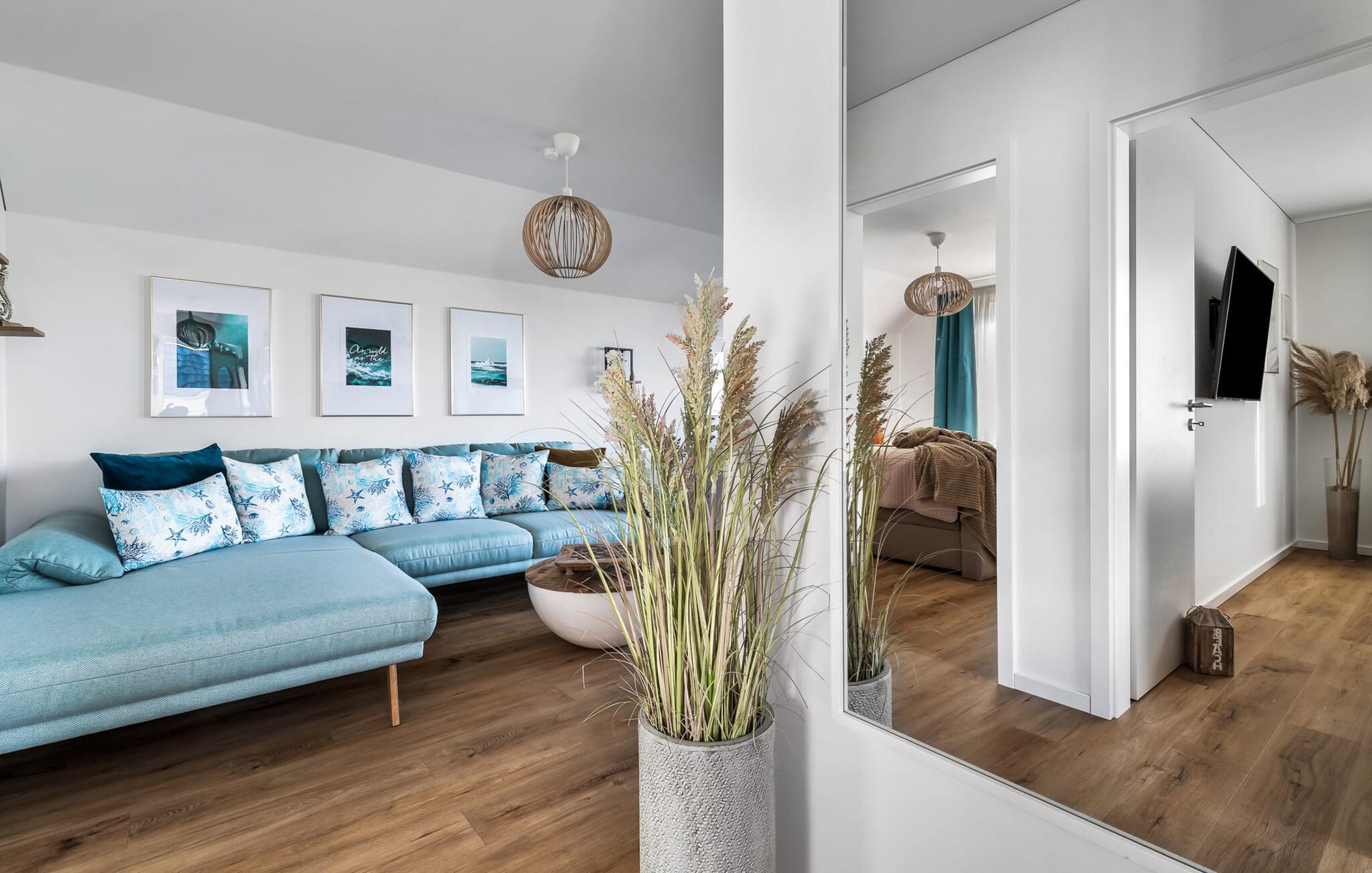 Velkommen til Überseegold! Møbler af høj kvalitet i maritim stil venter jer her. Den rummelige ferielejlighed på øverste etage scorer med en rummelig følelse, en terrasse til solbadning og plads til op til 5 personer. Her kan I nyde jeres ferie og glemme hverdagen. En anden lille terrasse ved indgangen giver en ekstra feriefølelse. Sandstranden Weidefelder med kiosk, restaurant og strandstole ligger i gåafstand og er et attraktivt rejsemål på alle tider af året. Minigolfbanen med maritimt tema ligger også i umiddelbar nærhed og glæder både store og små. Den livlige havnepromenade med indkøbsmuligheder og lystbådehavnen er også i nærheden. Med sine gulv-til-loft-vinduer og den store tilstødende terrasse er den åbne stue/spisestue hjertet af Überseegold. Den stilfulde indretning og den hyggelige opholdsstue skaber en afslappet atmosfære og inviterer jer til at slappe af. Ren afslapning! Skulle vejret nogensinde vise sin nordiske side, sørger pejsen og den infrarøde sauna (varmekabinen) for hyggelig varme og komfort. Når solen skinner, venter terrassen allerede på jer. Nyd dagen her i den friske Østersøluft eller ring ind til en grillaften sammen. Det åbne køkken er ideelt udstyret og vil få amatørkokkenes hjerter til at slå hurtigere. To soveværelser er tilgængelige til afslapning om natten. Det ene soveværelse er udstyret med en stor dobbelt boxmadras, mens det andet soveværelse har to store enkeltsenge (140x200). I opholdsstuen kan sofaen omdannes til endnu et soverum med få enkle trin. Efter en travl feriedag giver badeværelset med brusebad på gulvniveau og en infrarød sauna beroligende øjeblikke. En dag på Østersøen kunne ikke ende bedre. For at give en hel feriekomfort finder I jeres egen parkeringsplads og et aflåseligt cykelskur foran ferielejligheden. Vores favoritsted: At tilbringe en hyggelig grillaften på terrassen efter en dag på stranden... Bemærk venligst: OstseeResort Olpenitz er meget populært, og der bygges fortsat i parken. Ikke desto mindre kan I se frem til en 5-stjernet standard og et førsteklasses ophold. Byggeaktiviteterne kommer ikke til at forstyrre jer på ferien, og derfor gives der ikke yderligere afslag i prisen.