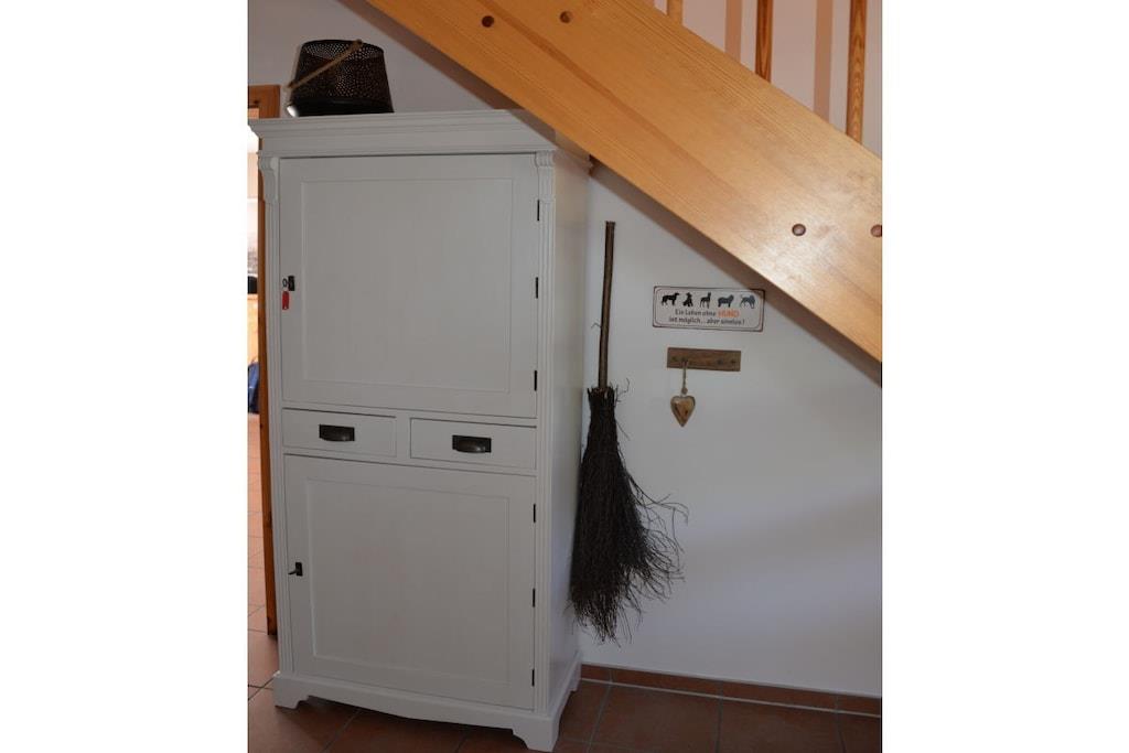 Stueetage: (entre(, varme), Stue(, , Fjernsyn, sofahjørne, DVD-afspiller, CD-afspiller, stereoanlæg, varme), spisestue(spisebord, varme), Køkken(, , , , kogeplade, elkedel, brødrister, kaffemaskine, ovn, mikrobølgeovn, køleskab, fryser, ), badeværelse(, toilet, bruser, håndvask, varme), pulterkammer(, strygebræt, strygejern, tørreskab)) På 1. etage: (soveværelse(, , dobbeltseng, Fjernsyn, varme)) , , , , soveværelse(, , dobbeltseng, Fjernsyn, varme, barneseng), soveværelse(, , enkeltfoldeseng, enkeltfoldeseng, varme), badeværelse(, toilet, badekar, bruser, håndvask, varme, føntørrer), Internetadgang, Internetadgang, Førstehjælp, tørretumbler, vaskemaskine, varme, terrasse(, Grill center, Strand, grill, havemøbler, solstole), have(Grill center, havemøbler, Haveskur), parkering, trappegitter, strygebræt, strygejern, tørreskab