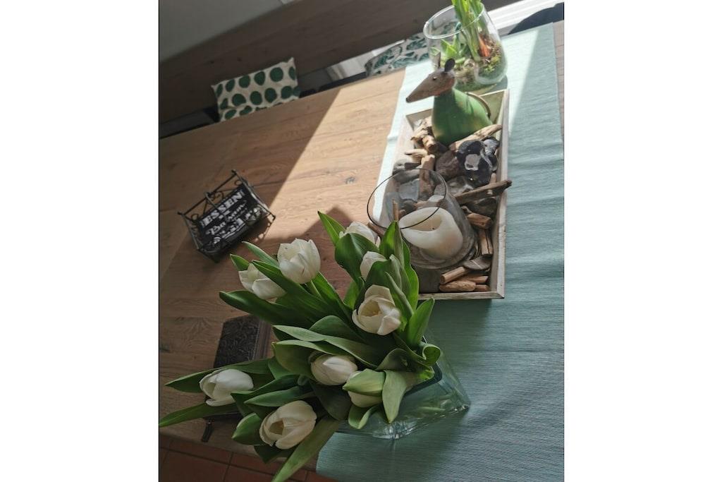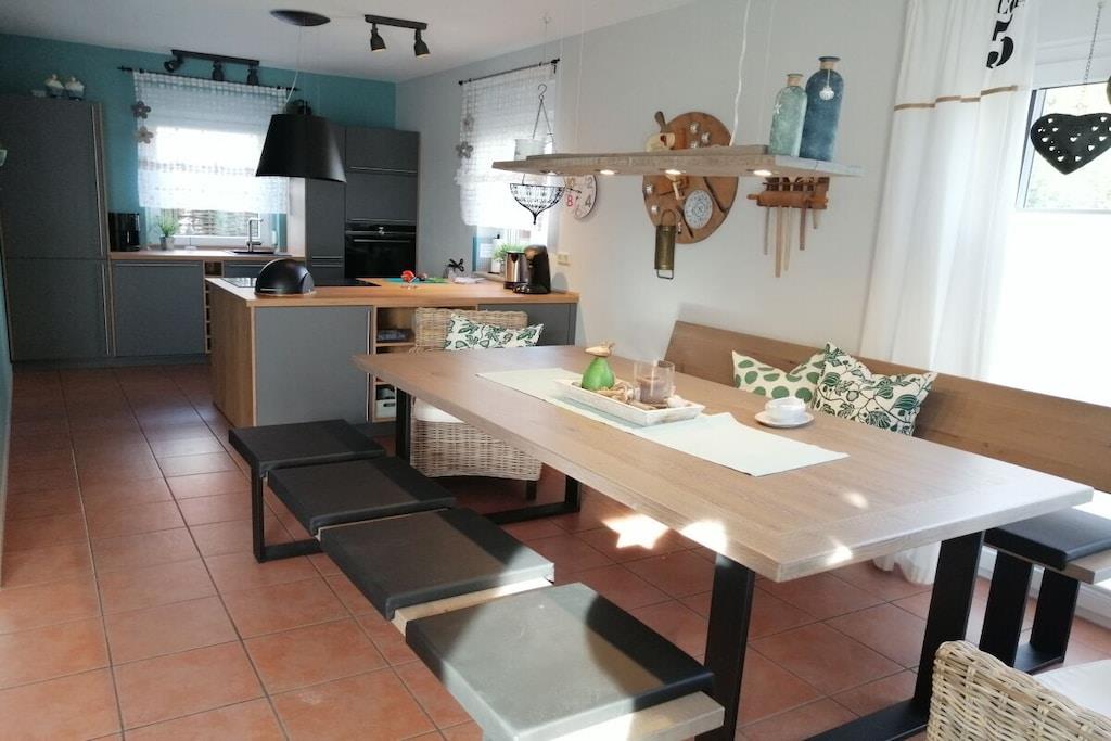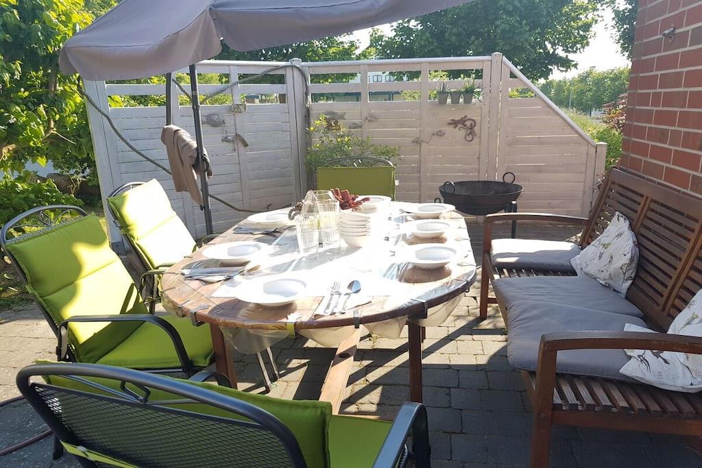5-stjernet feriehus (106 m²) til op til 8 personer (efter forespørgsel) + hund, med indhegnet have, 2 parkeringspladser, stor møbleret terrasse med indbygget grill, opbevaring til 2 cykler, strandstol, rummelig stue/spisestue, 3 soveværelser, 2 badeværelser og et fuldt udstyret køkken. Wi-Fi og Sky TV er inkluderet. Et feriehus at nyde med alle bekvemmeligheder! Vinduer med myggenet og udvendige persienner, gulvvarme, trappegitter, barneseng, højstol og pusleunderlag er til rådighed for små børn. Der er vaskemaskine og tørretumbler til rådighed i bryggerset.
