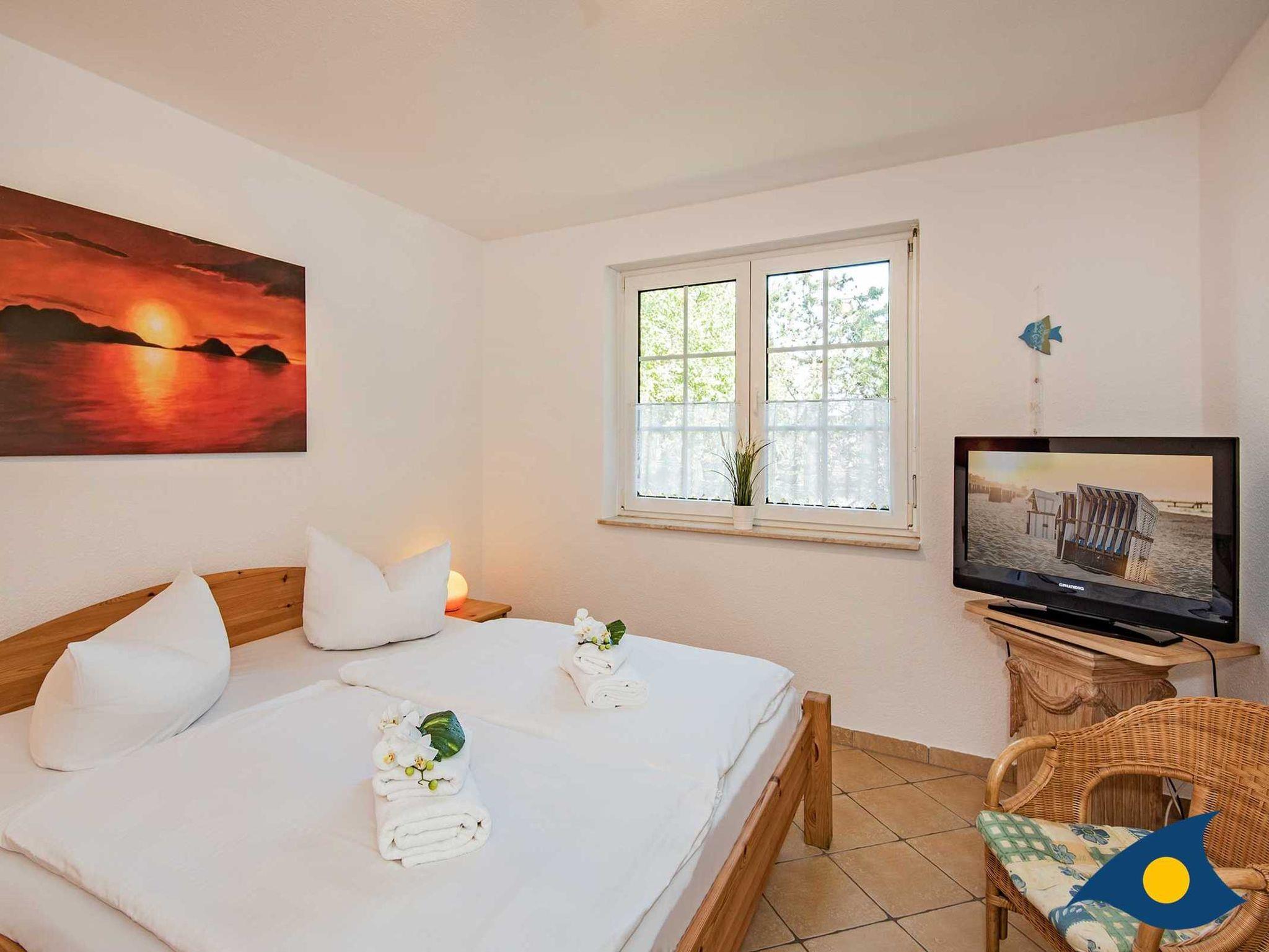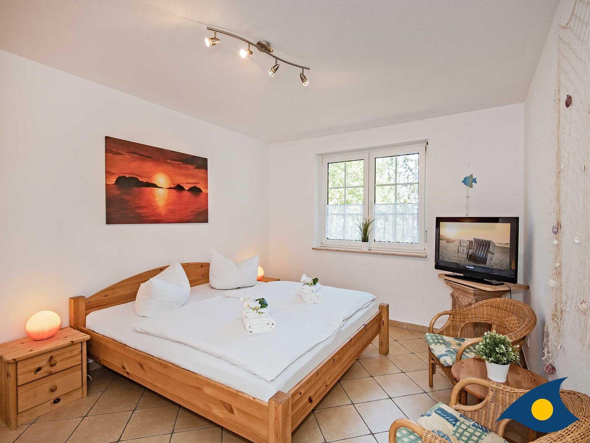Das liebevoll eingerichtete Schlafzimmer mit bequemem Doppelbett lässt Sie nach einem aufregenden Tag sicherlich gut träumen. Für unseren kleinen Gäste steht ein Kinderreisebett und eine Kinderzudecke zur Verfügung.