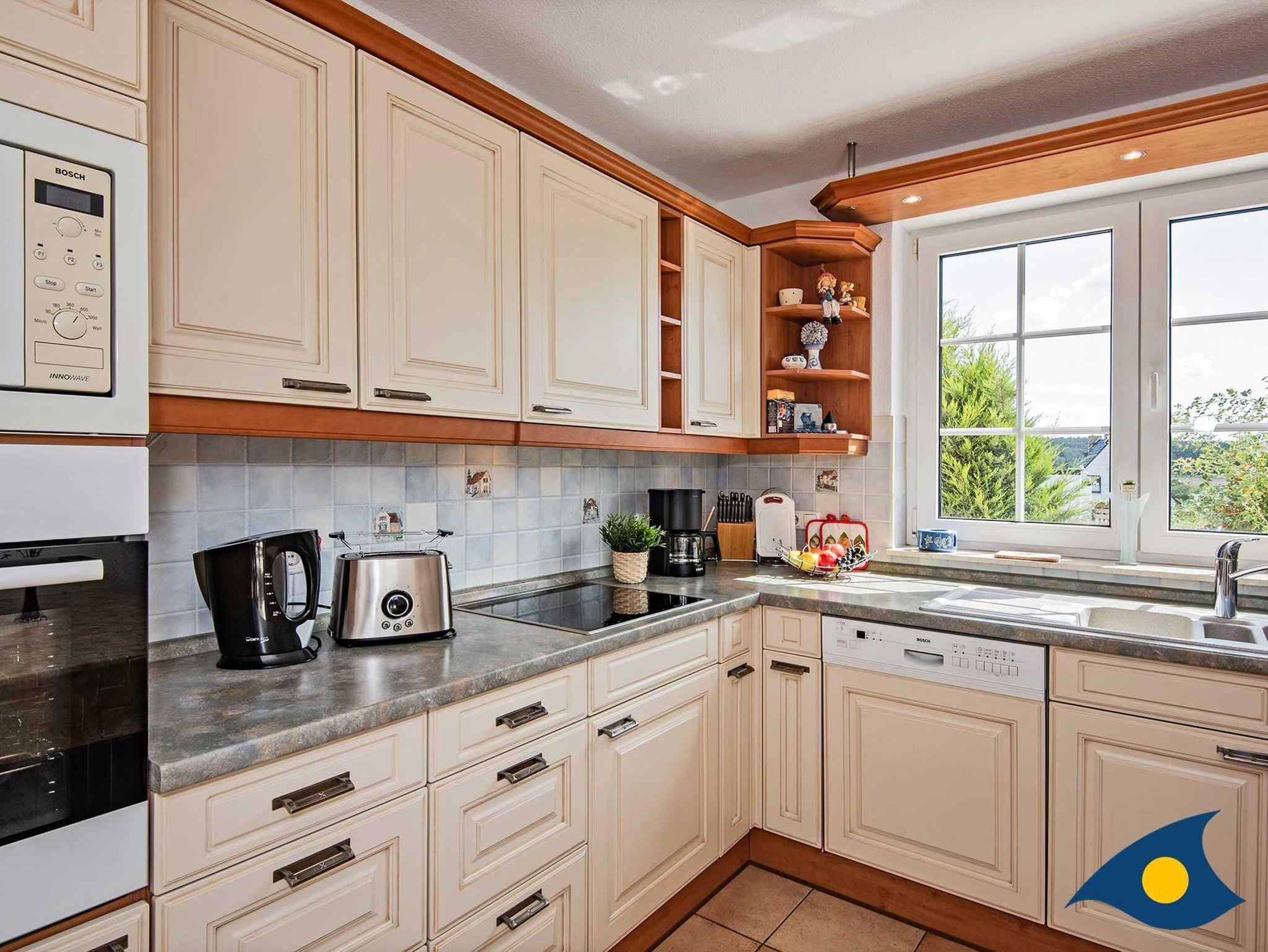 In der großen Komfortküche finden Sie alles, um sich und Ihren Lieben ein leckeres Menue zu zaubern. Neben einem Backofen und einer Mikrowelle stehen Ihnen auch eine Kaffeemaschine und ein Wasserkocher für einen guten Start in den Tag oder das Kaffeekränzchen zwischendurch zur Verfügung.