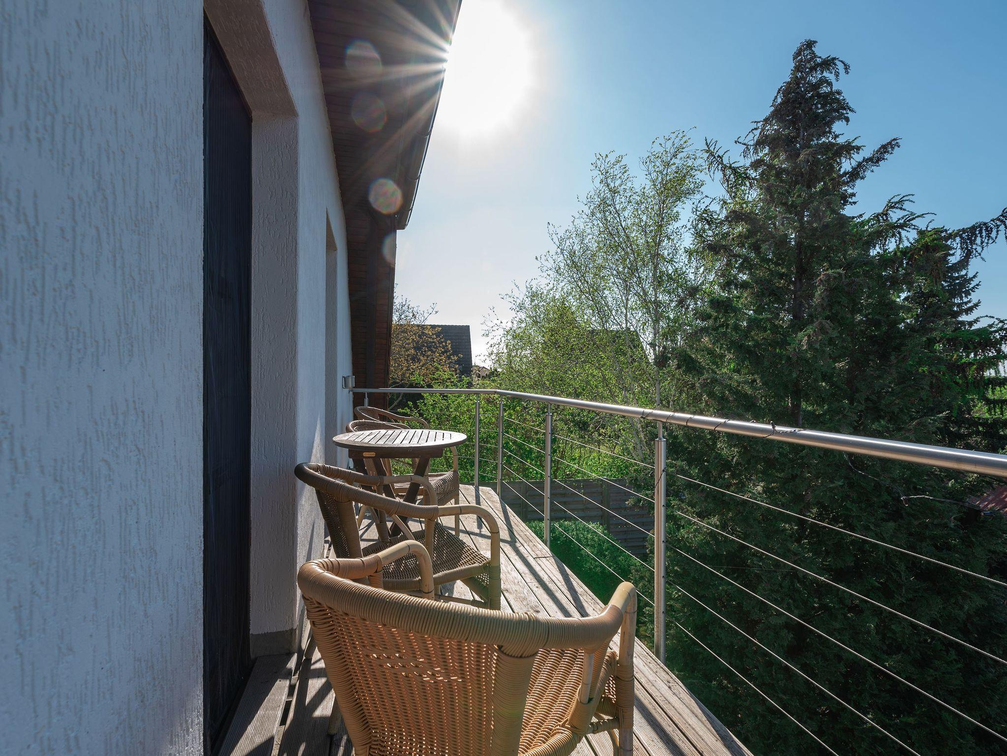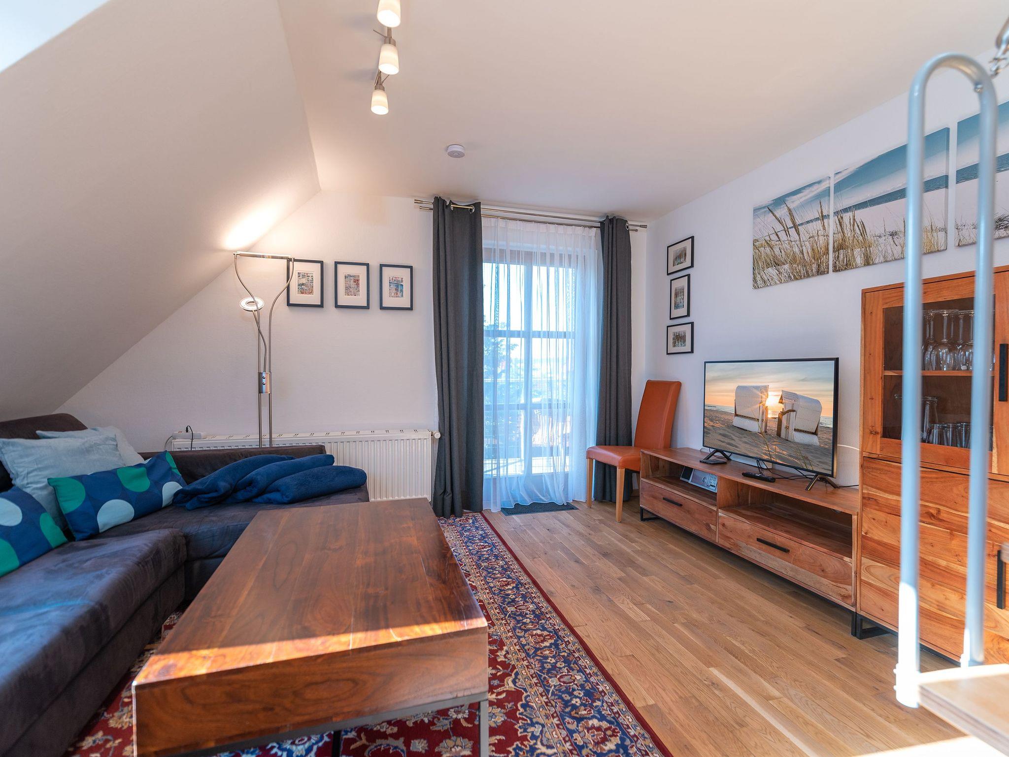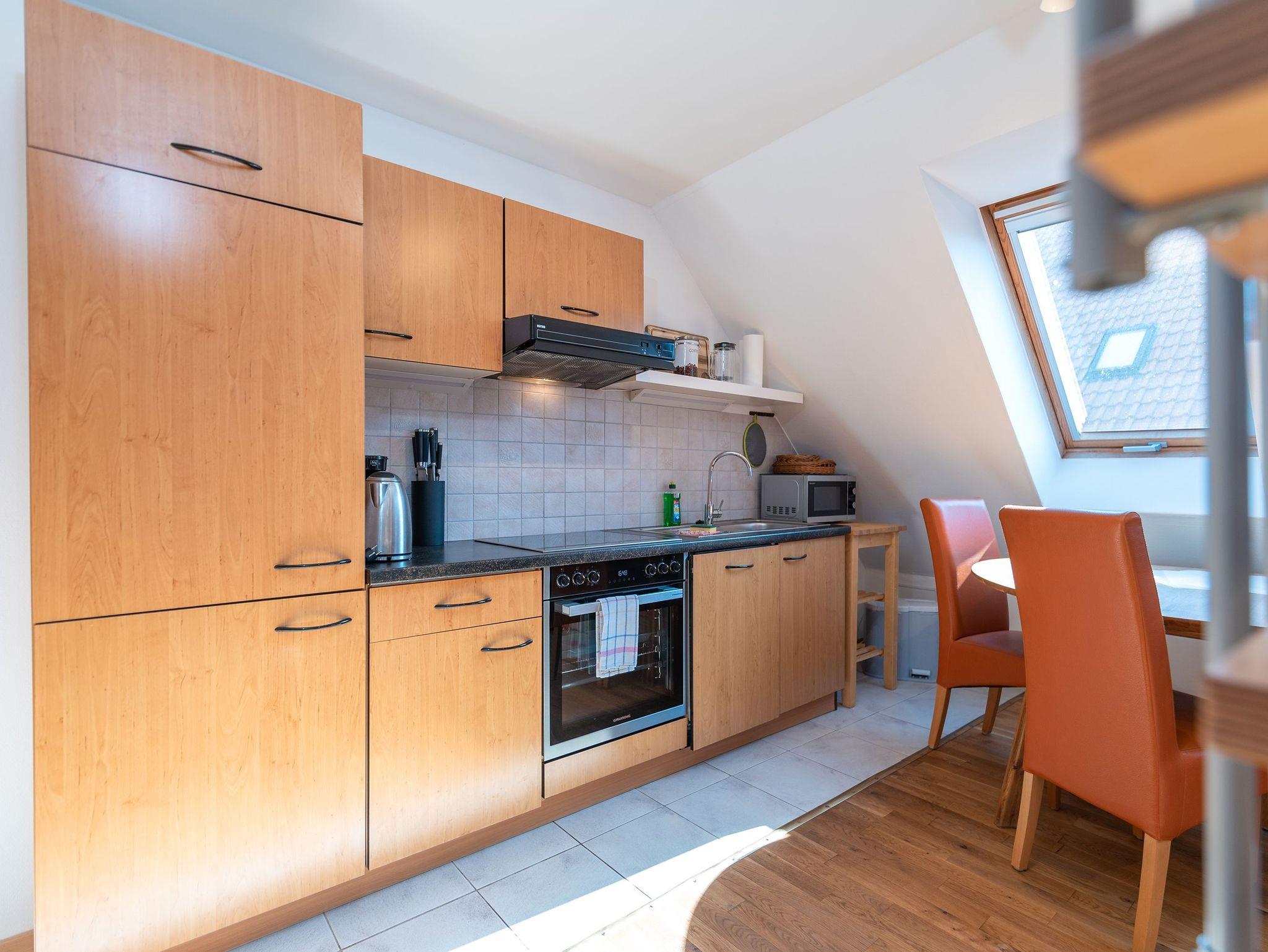 Die Ferienwohnung Ackerweg 2 im Obergeschoss ist ideal für bis zu 4 Personen konzipiert und zeichnet sich durch eine helle, freundliche und gemütliche Einrichtung aus. Der Wohnbereich umfasst eine Küchenzeile und einen Flat-TV, während das Schlafzimmer mit einem Doppelbett ausgestattet ist. Ein zusätzliches Schlafzimmer mit zwei Einzelbetten befindet sich im Dachboden, der über eine steile Treppe erreichbar ist. Sowohl das Wohn- als auch das Hauptschlafzimmer bieten Zugang zu einem großzügigen Balkon, der zu entspannten Momenten im Freien einlädt. Das Badezimmer ist mit einer Dusche ausgestattet.