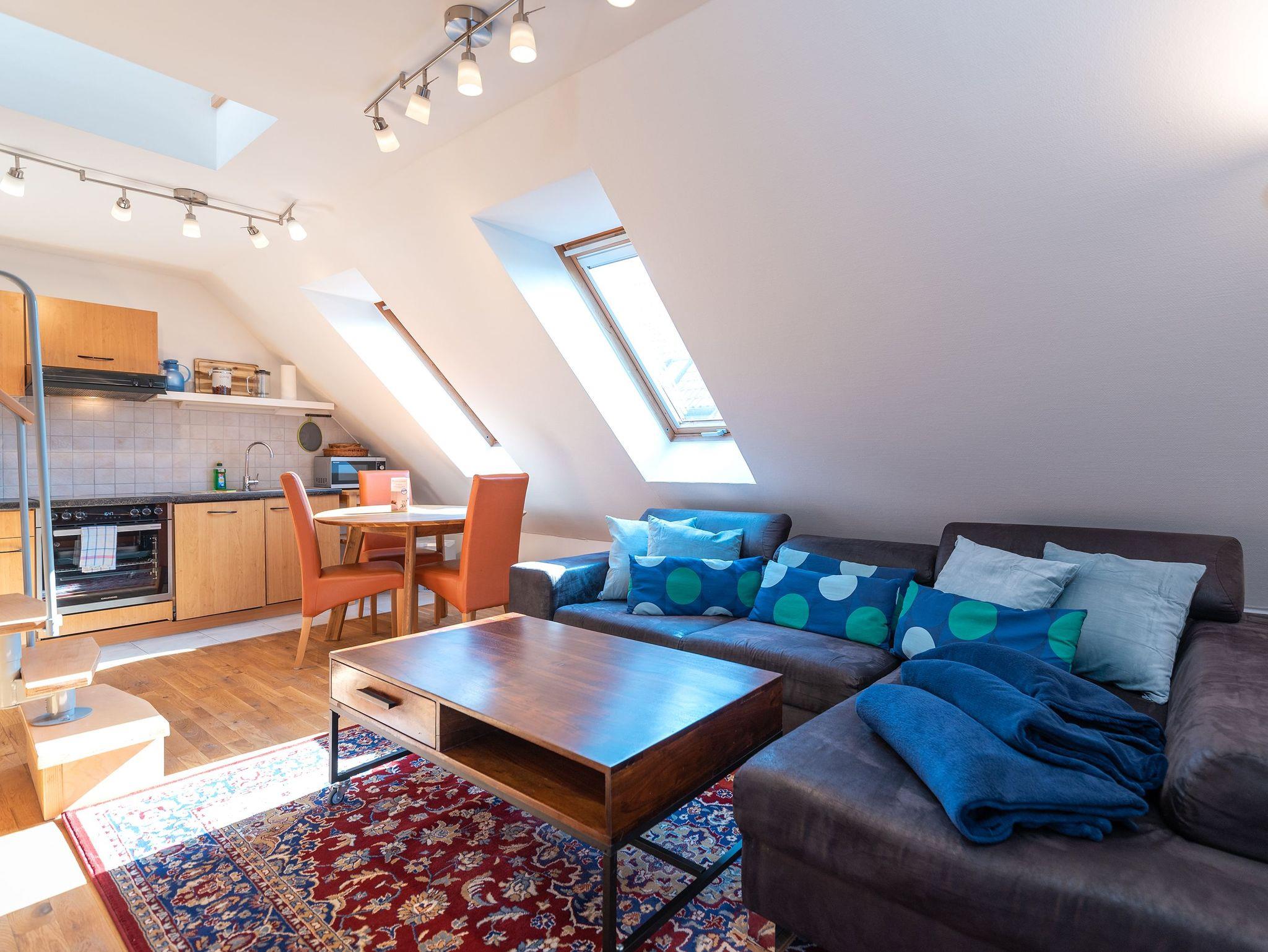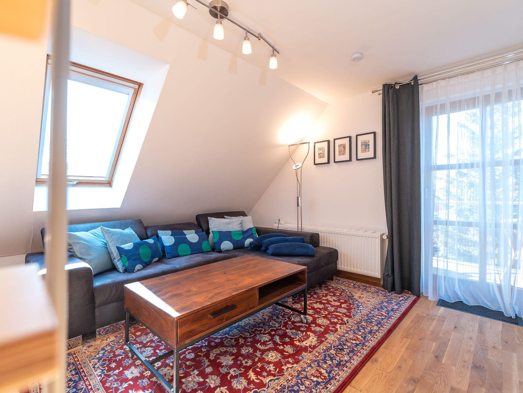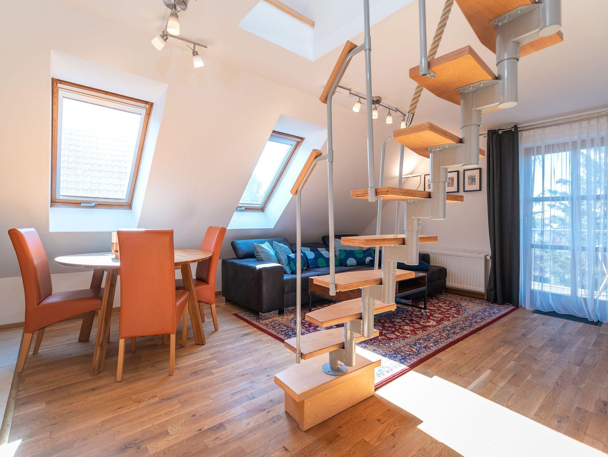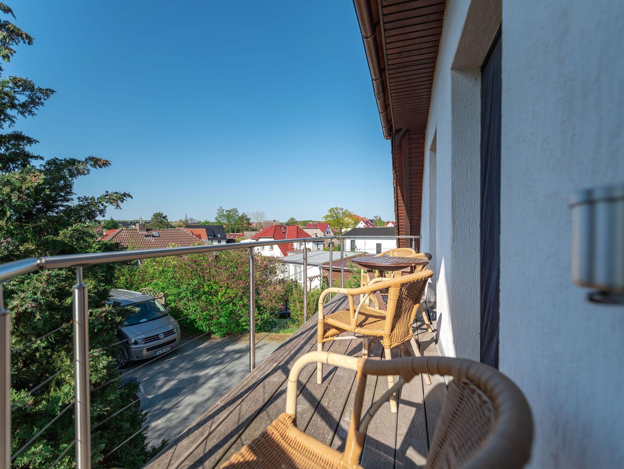 Die Ferienwohnung Ackerweg 2 im Obergeschoss ist ideal für bis zu 4 Personen konzipiert und zeichnet sich durch eine helle, freundliche und gemütliche Einrichtung aus. Der Wohnbereich umfasst eine Küchenzeile und einen Flat-TV, während das Schlafzimmer mit einem Doppelbett ausgestattet ist. Ein zusätzliches Schlafzimmer mit zwei Einzelbetten befindet sich im Dachboden, der über eine steile Treppe erreichbar ist. Sowohl das Wohn- als auch das Hauptschlafzimmer bieten Zugang zu einem großzügigen Balkon, der zu entspannten Momenten im Freien einlädt. Das Badezimmer ist mit einer Dusche ausgestattet.