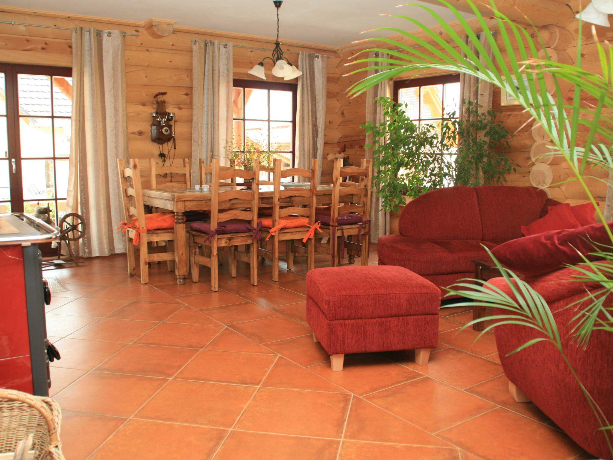Das große Rundstammhaus ist 140m² groß und verfügt über eine hauseigene Sauna, Fahrrad-Carport und über 3 kostenfreie PKW-Stellplätze. Auf der großen Terrasse können Sie den Tag ausklingen lassen. Davor befindet sich ein Grill und ein Strandkorb. Die Erstausstattung Bettwäsche und Handtücher sind bereits im Preis enthalten. Das Frühstück kann dazugebucht werden und wird morgens zum Haus geliefert.