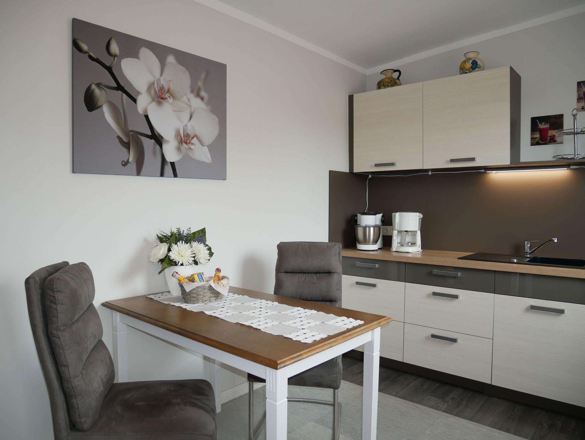 Die schöne 2-Raum-Ferienwohnung verfügt über ein Wohnzimmer, eine Küche und ein separates Schlafzimmer, sowie einem Badezimmer mit Dusche und WC.
