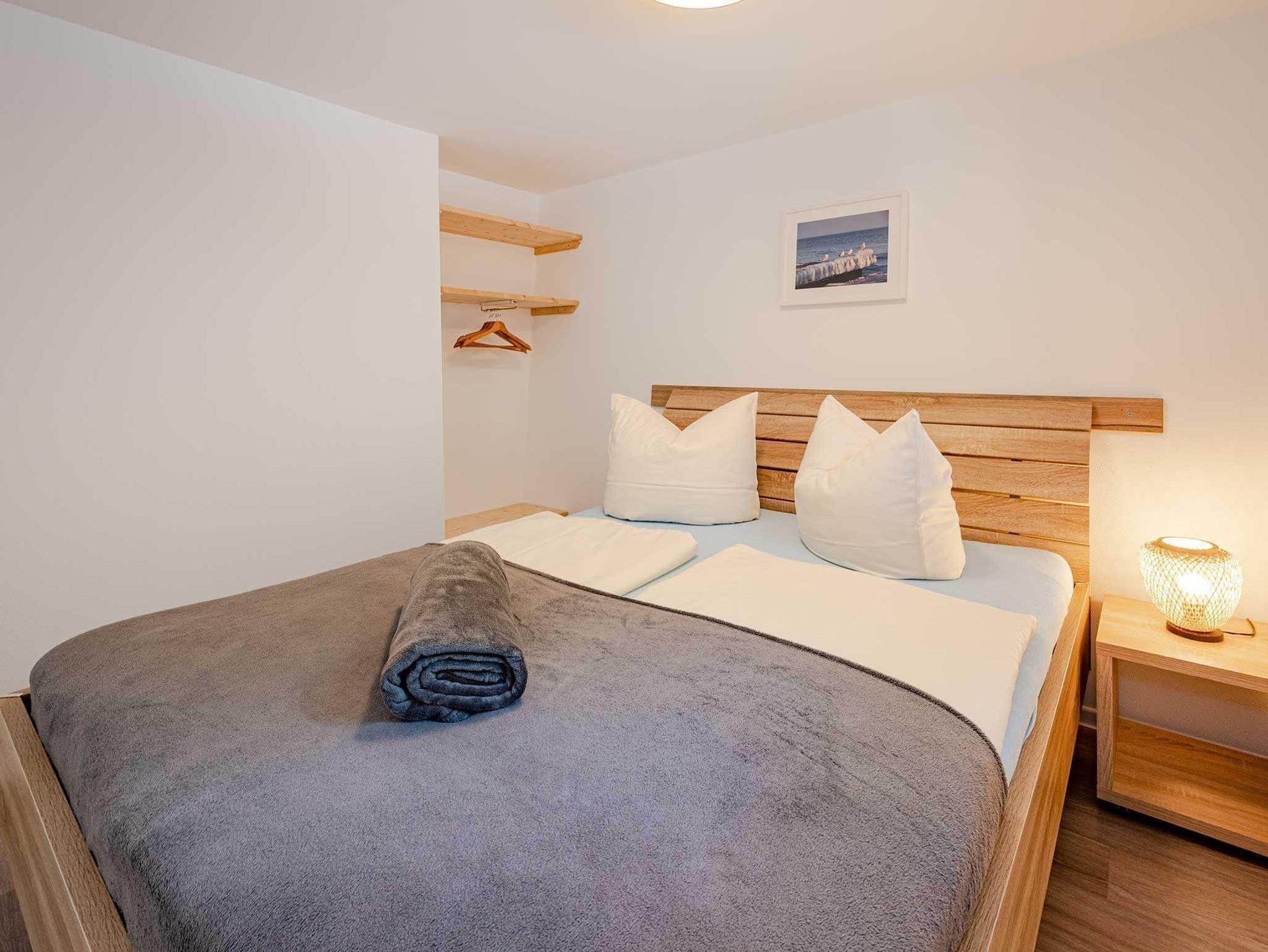 - 1 Schlafzimmer mit 1 Doppelbett (1,60 x 2,00 m), Nachttisch