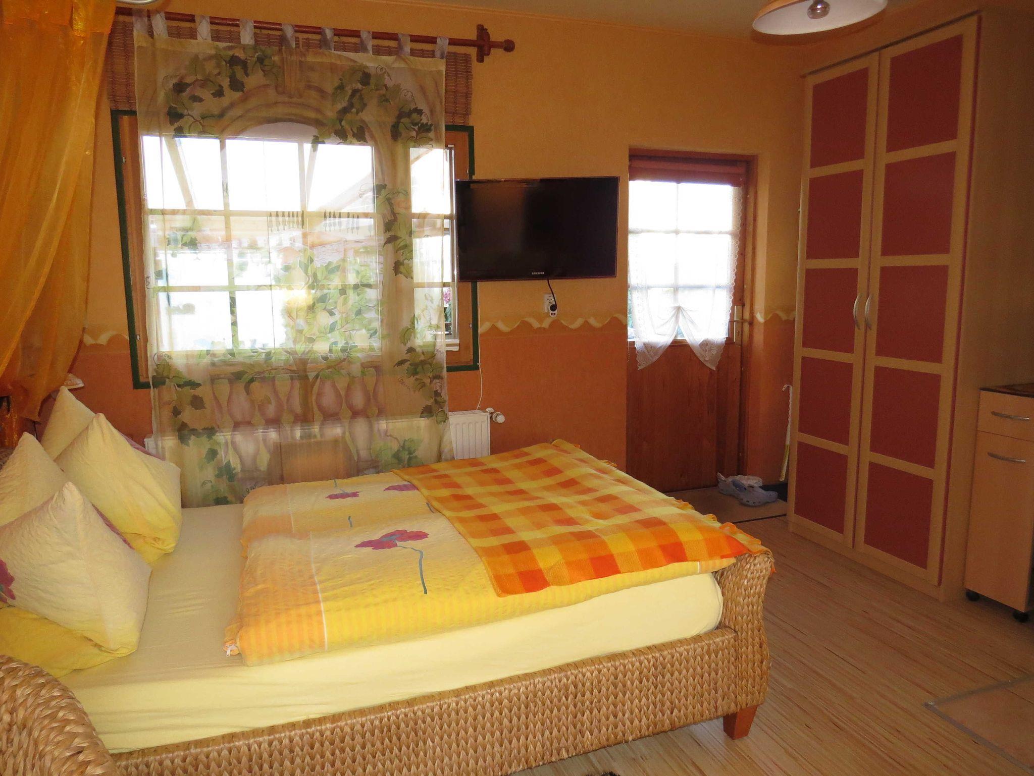 Ferienwohnung für 2 Personen mit separatem Eingang. Das App. ist ausgestattet mit einem Doppelbett, Küchenzeile, TV, Tisch mit 2 Korbsessel, Du/WC. Bettwäsche ist inklusive. Handtücher bitte mitbringen. Nichtraucher sind erwünscht (Rauchmöglichkeit auf überdachter Eingangsterrasse). Haustiere nicht erlaubt.