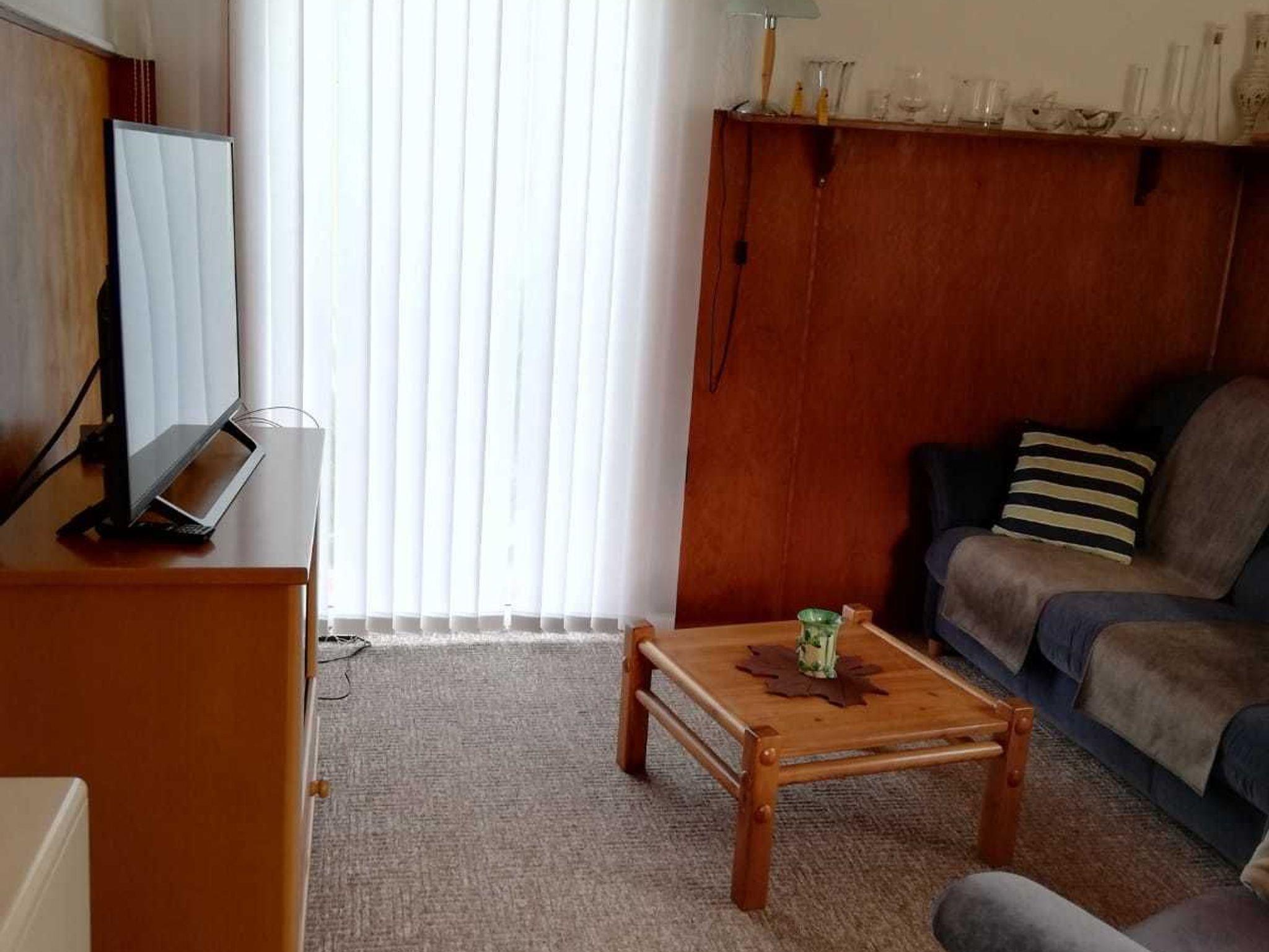 Vorflur, Wohnzimmer mit Samsung 55 TV neu, Schlafcouch neu , Esstisch DVD-Player, Terrasse. Separate kleine Küche mit div. Ausstattung, 1 Schlafzimmer mit Doppelbett und 1 sep. Bett, für 2 Kind. 1 Bad mit Dusche und WC, Waschbecken.