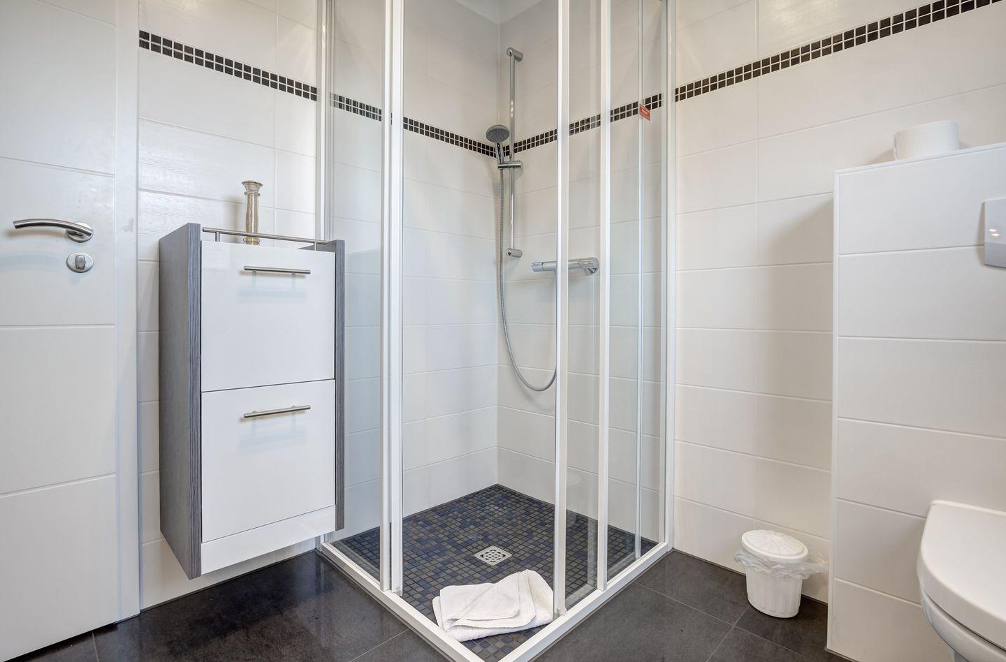 - Das Ferienhaus verfügt über zwei Badezimmer, jeweils mit Dusche – eines im Obergeschoss und eines im Erdgeschoss.