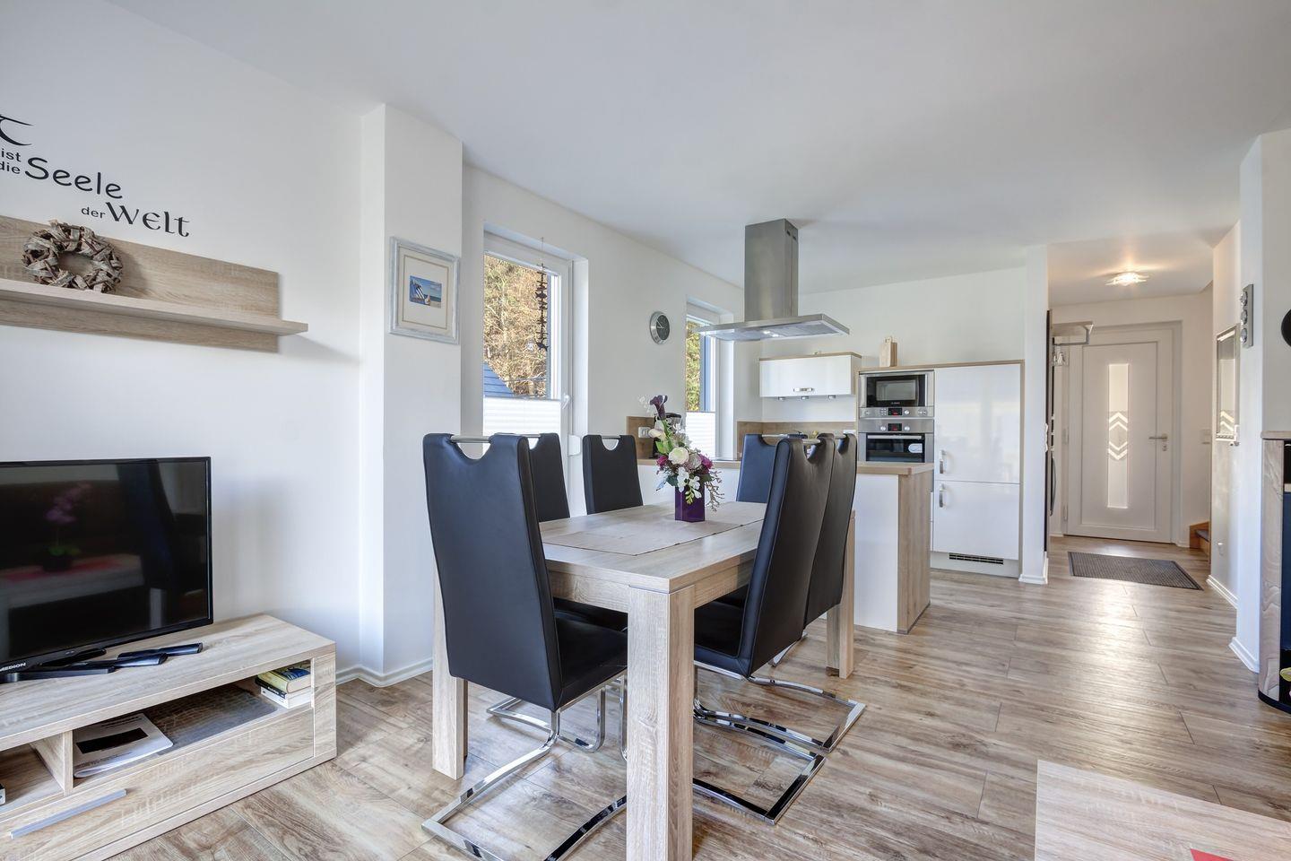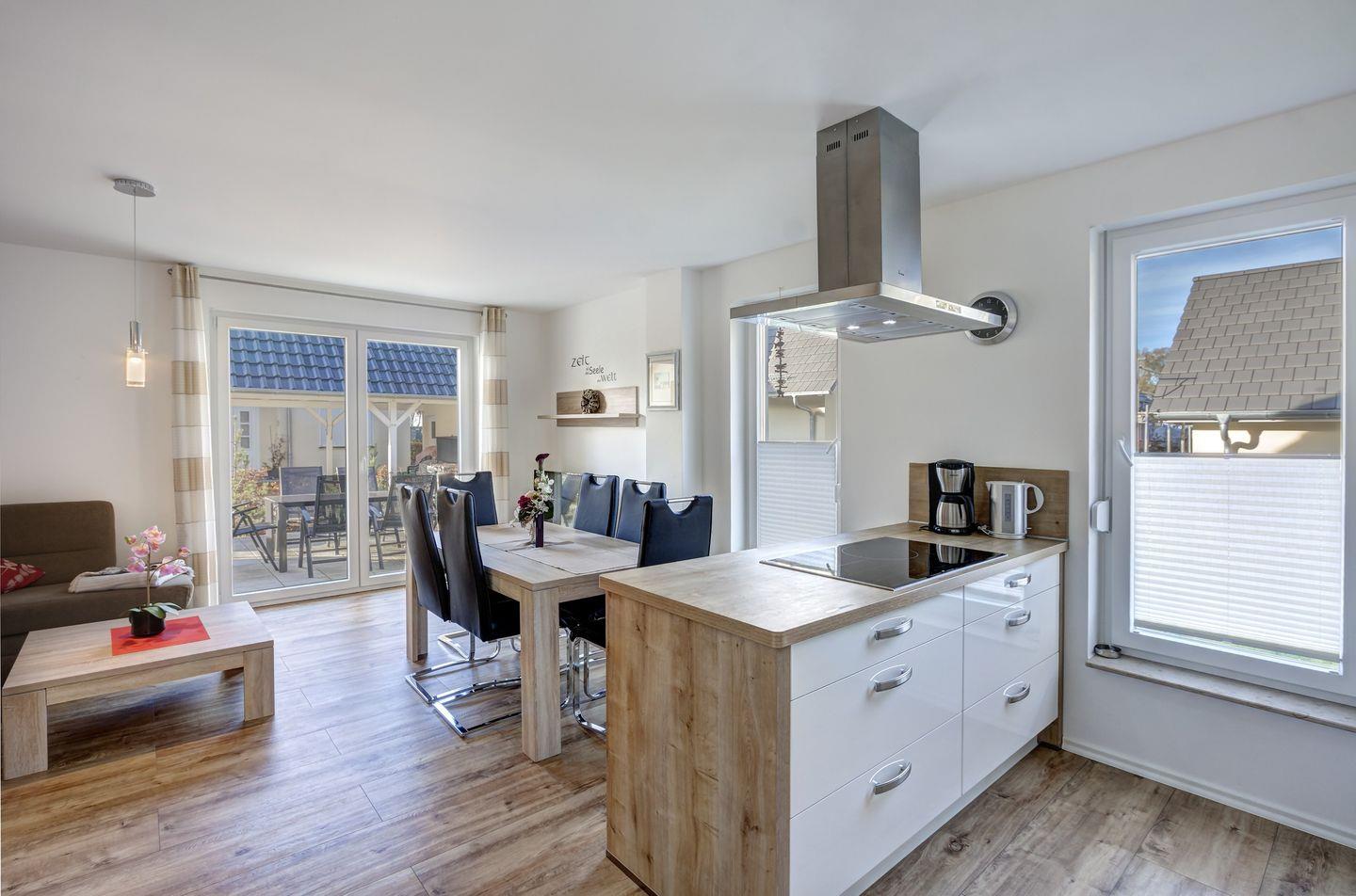 - Die moderne Küche ist mit allem ausgestattet, was Sie für die Zubereitung leckerer Mahlzeiten benötigen. Der Esstisch für 6 Personen lädt zu gemeinsamen Mahlzeiten ein.