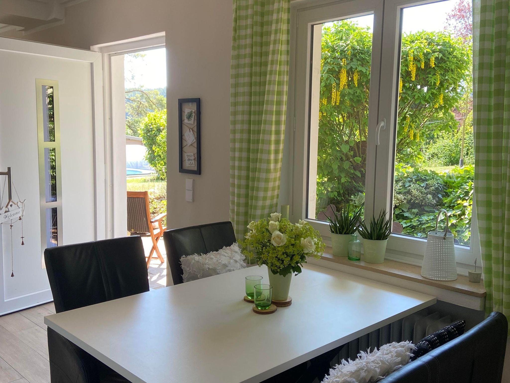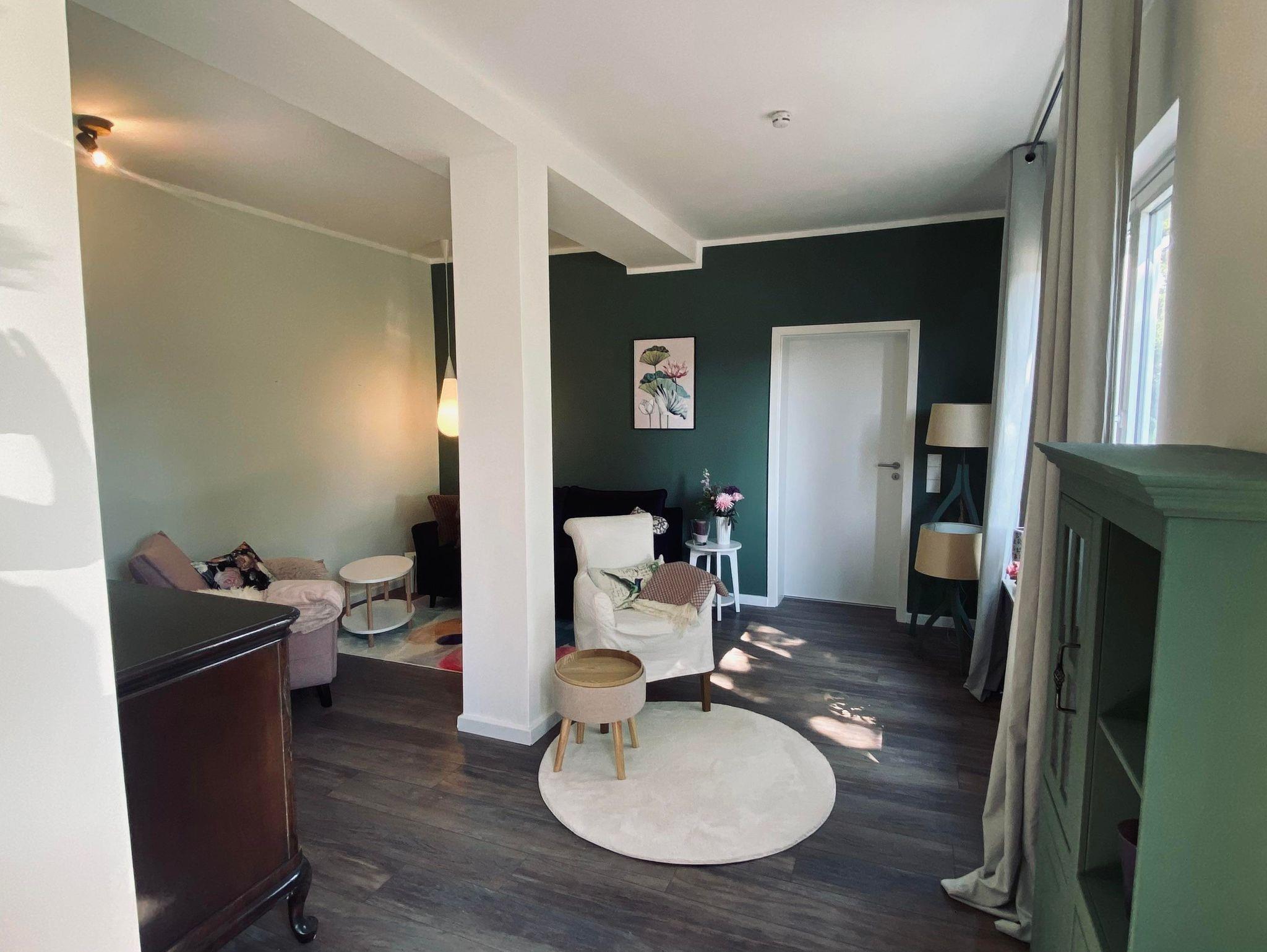 Ferienwohnung auf Gartenebene Unser Traumprinz bietet mit rund 85 Quadratmetern Platz für zwei bis drei Personen (ein Doppelbett im separaten Schlafzimmer, ein bequemes Schlafsofa im Wohnzimmer ohne Verdunkelung).