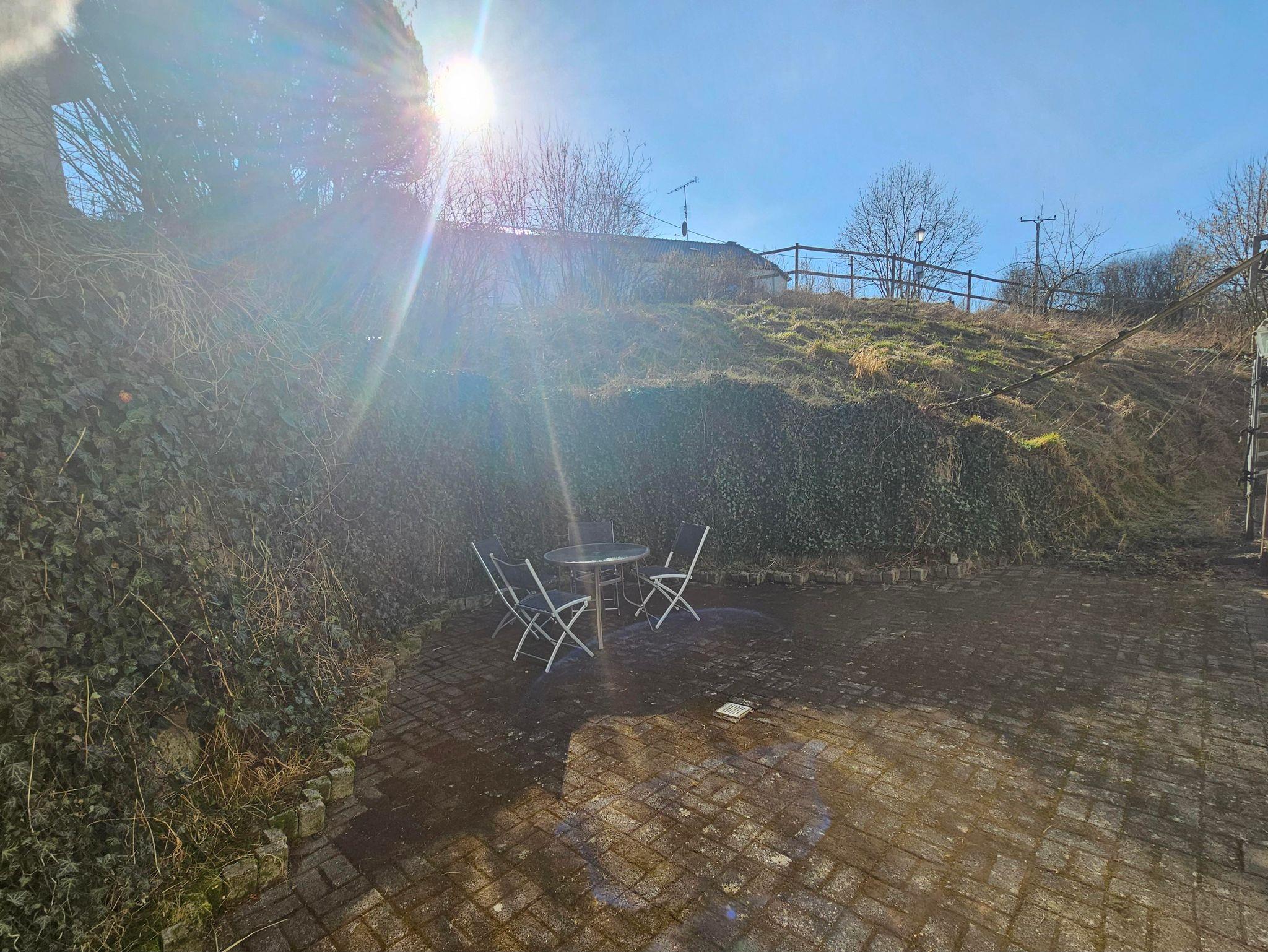 Zu der Wohnung gehört ebenfalls eine eigene Terasse mit Sitzecke.