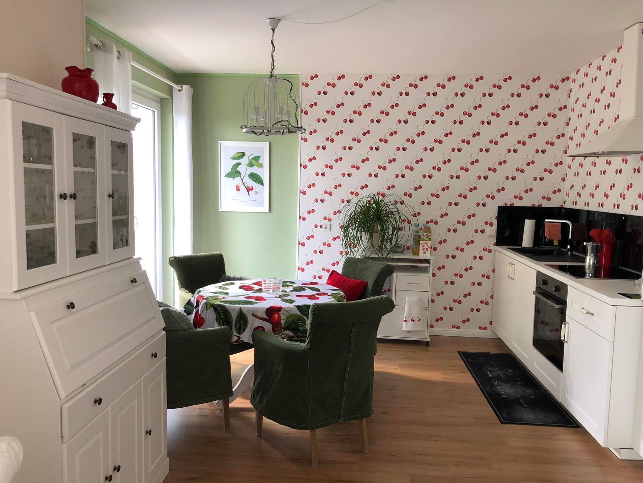 Mit traumhafter Aussicht auf den Garten und die Hügel des Betterberges ist unsere rund 75 Quadrameter große Ferienwohnung Das Krönchen im 1. OG für zwei Personen ausgelegt. Das Krönchen bietet euch ein geschmackvoll eingerichtetes Wohnzimmer, eine offene Küche mit Essplatz, ein großzügiges Bad, Schlafen im Himmelbett (1,60 m) und einen schönen Balkon mit herrlichem Blick in die Natur.