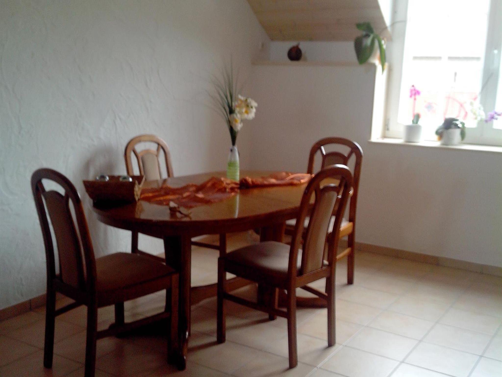 Die 2-Personen-Nichtraucher-Ferienwohnung mit offener Galerie ist gemütlich eingerichtet und über einen eigenen Aufgang erreichbar. Sie verfügt über einen großen Ess-/Wohnbereich sowie eine komplett eingerichtete Küche mit Spülmaschine, Backofen, Mikrowelle, Toaster, Eierkocher, Kaffeemaschine, Mixer. Das Bad ist ausgestattet mit Dusche/WC, Fön. Das Schlafzimmer, ein Doppelschlafzimmer, befindet sich auf der Galerie; aufgrund dieser offenen Galerie ist unsere Ferienwohnung nur bedingt für Kleinkinder geeignet.