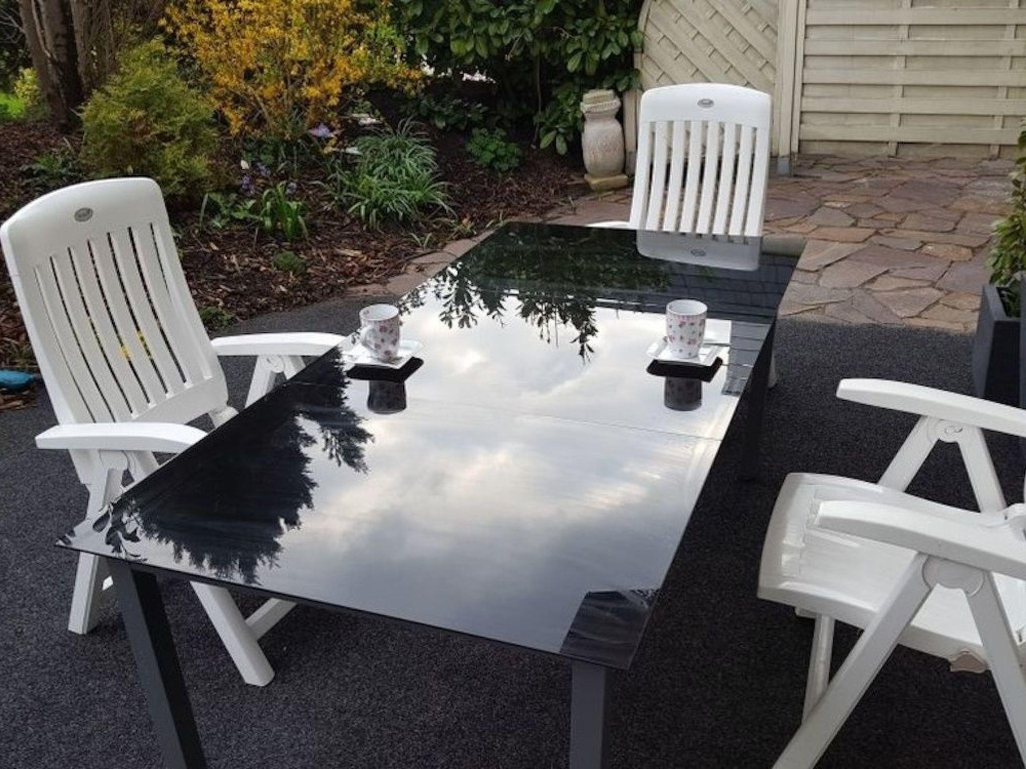 The living/dining room, with a large 75-inch TV, Magenta TV, Internet and WLAN and a view of the barely visible, sunny and sheltered garden, invites you to relax, barbecue and unwind after returning from your day trips.