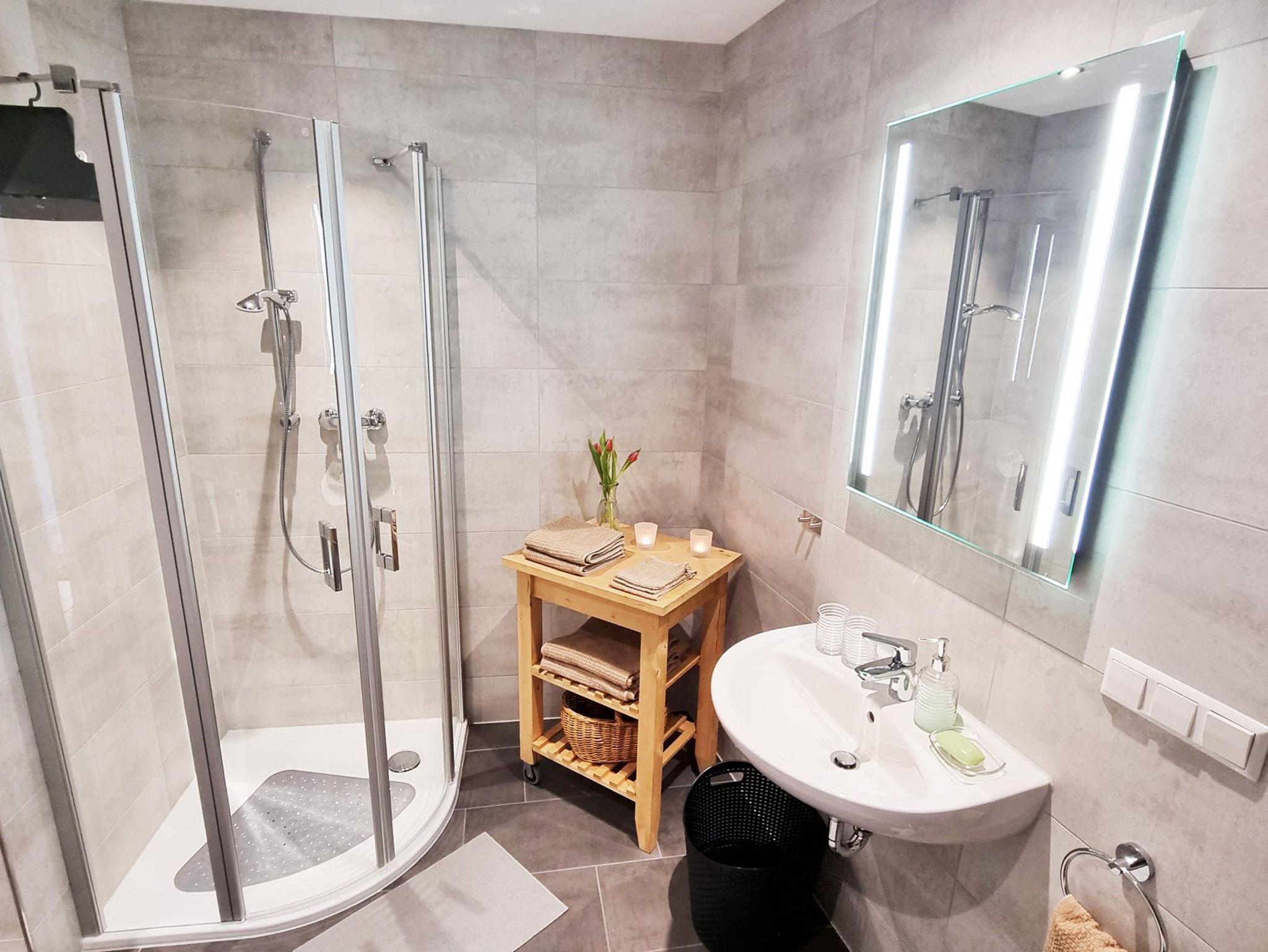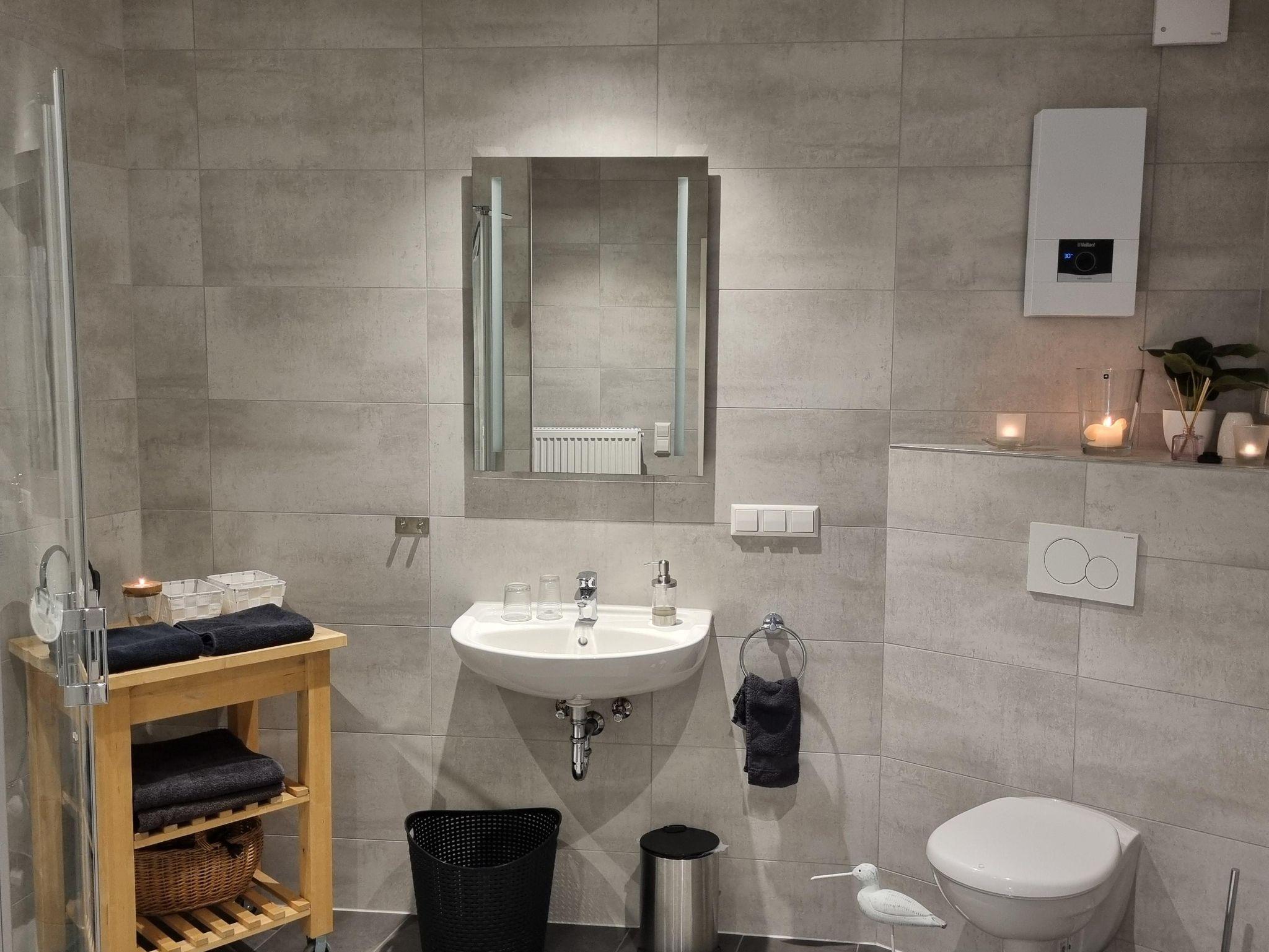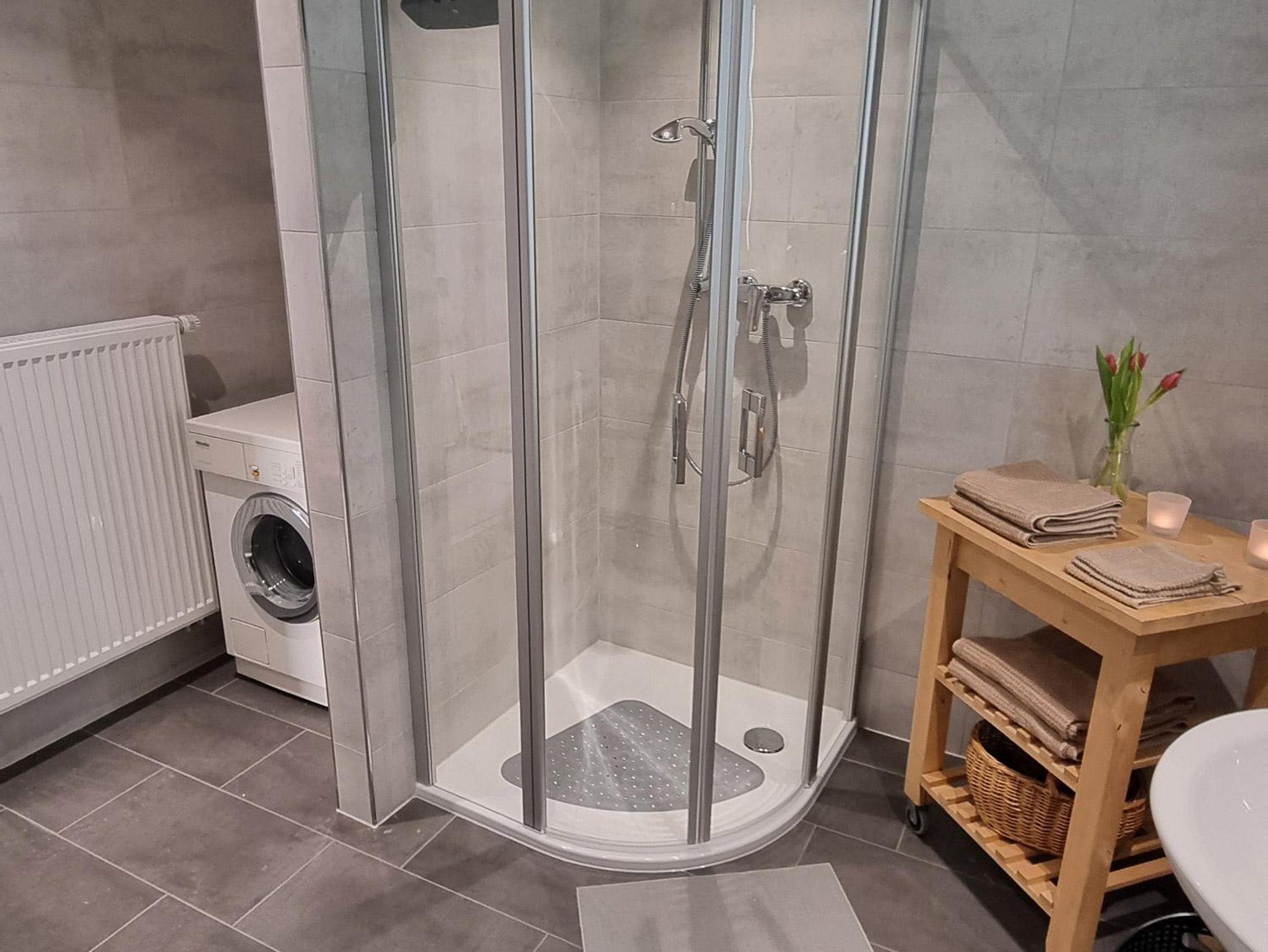 • Großes Badezimmer mit Dusche, WC und Waschmaschine
