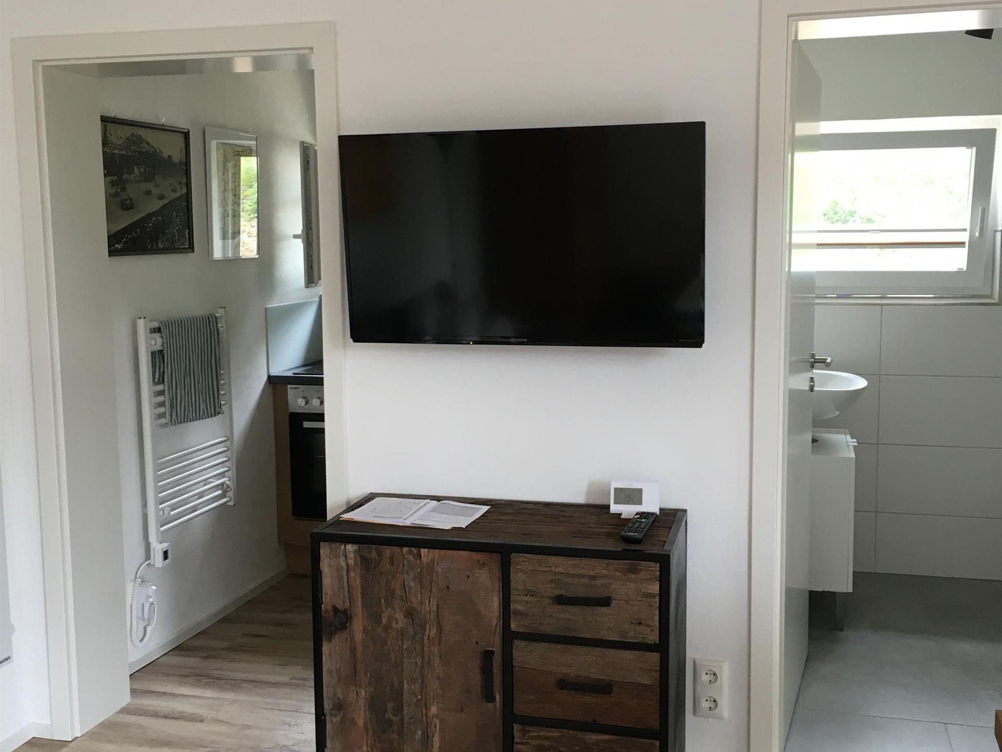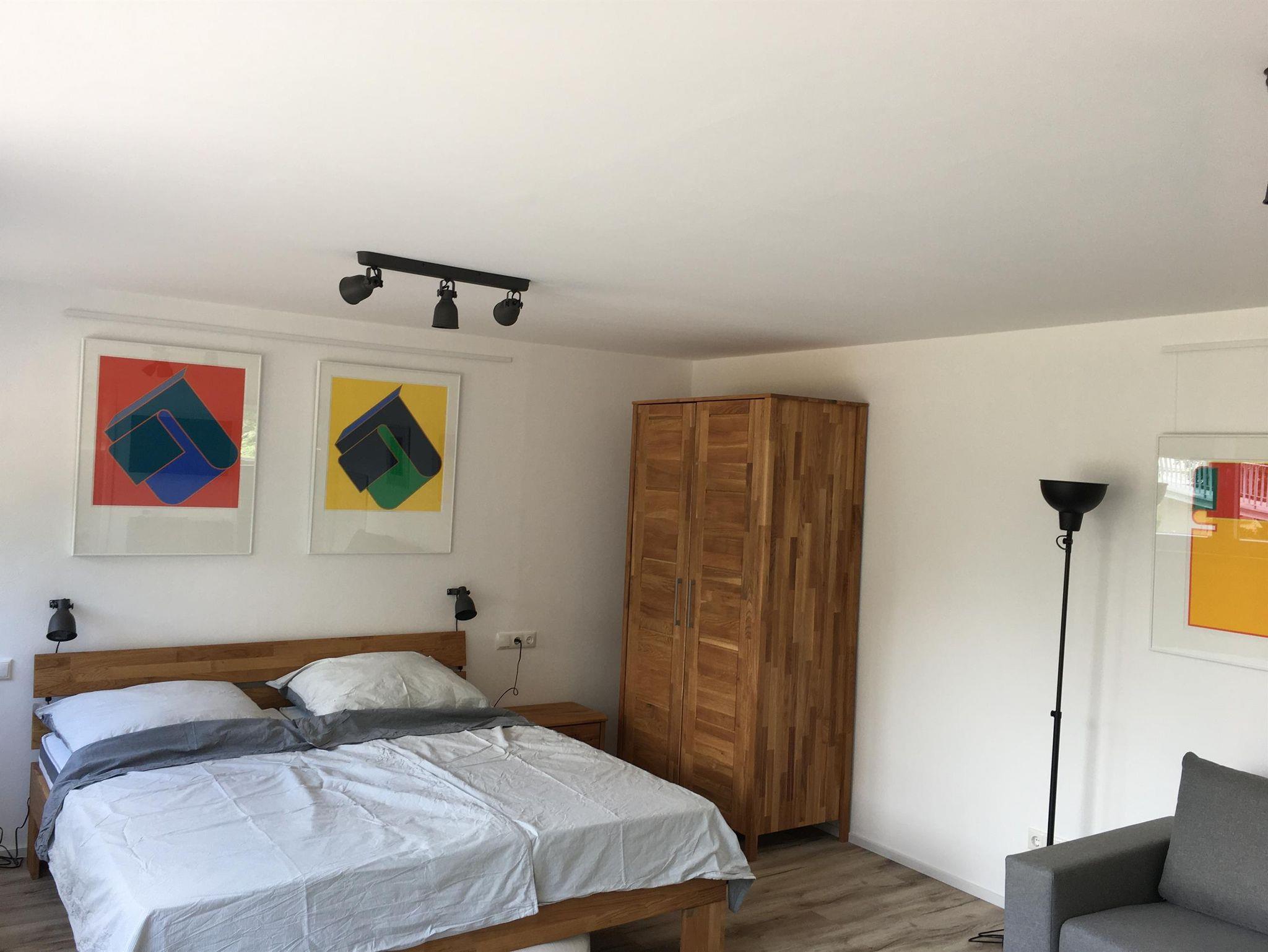 Das Gästehaus ist ausgestattet mit einem Wohn- und Schlafraum mit direktem Zugang über die Terrasse und Blick in den Garten und jeweils separatem modernen Bad und Küchenraum. Die Küche ist vollständig eingerichtet. Der Wohnraum verfügt über ein großes Doppelbett, ein Sofa als zusätzliche Schlafgelegenheit, Esstisch, Smart TV und WLAN. Auf der Terrasse befindet sich eine Grillmöglichkeit.
