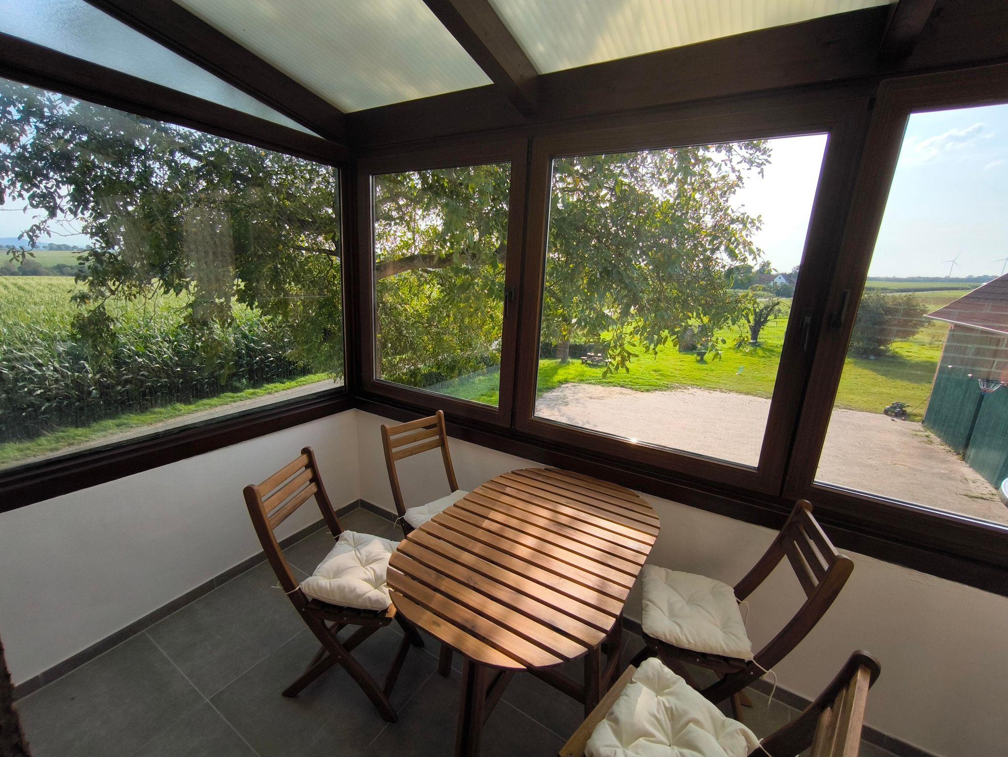 Auf der Etage dieser Ferienwohnung befindet sich ein kleiner Wintergarten, dieser steht den Gästen dieser Ferienwohnung zur Verfügung. Ein Kaffee am Morgen oder ein Sekt am Abend mit einem tollen Ausblick.