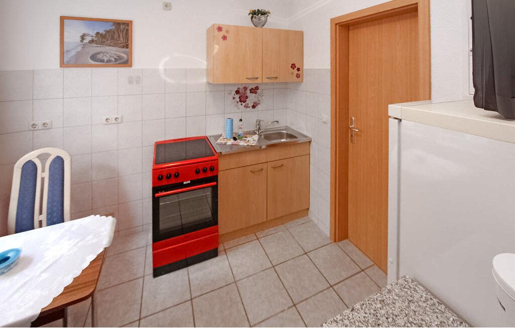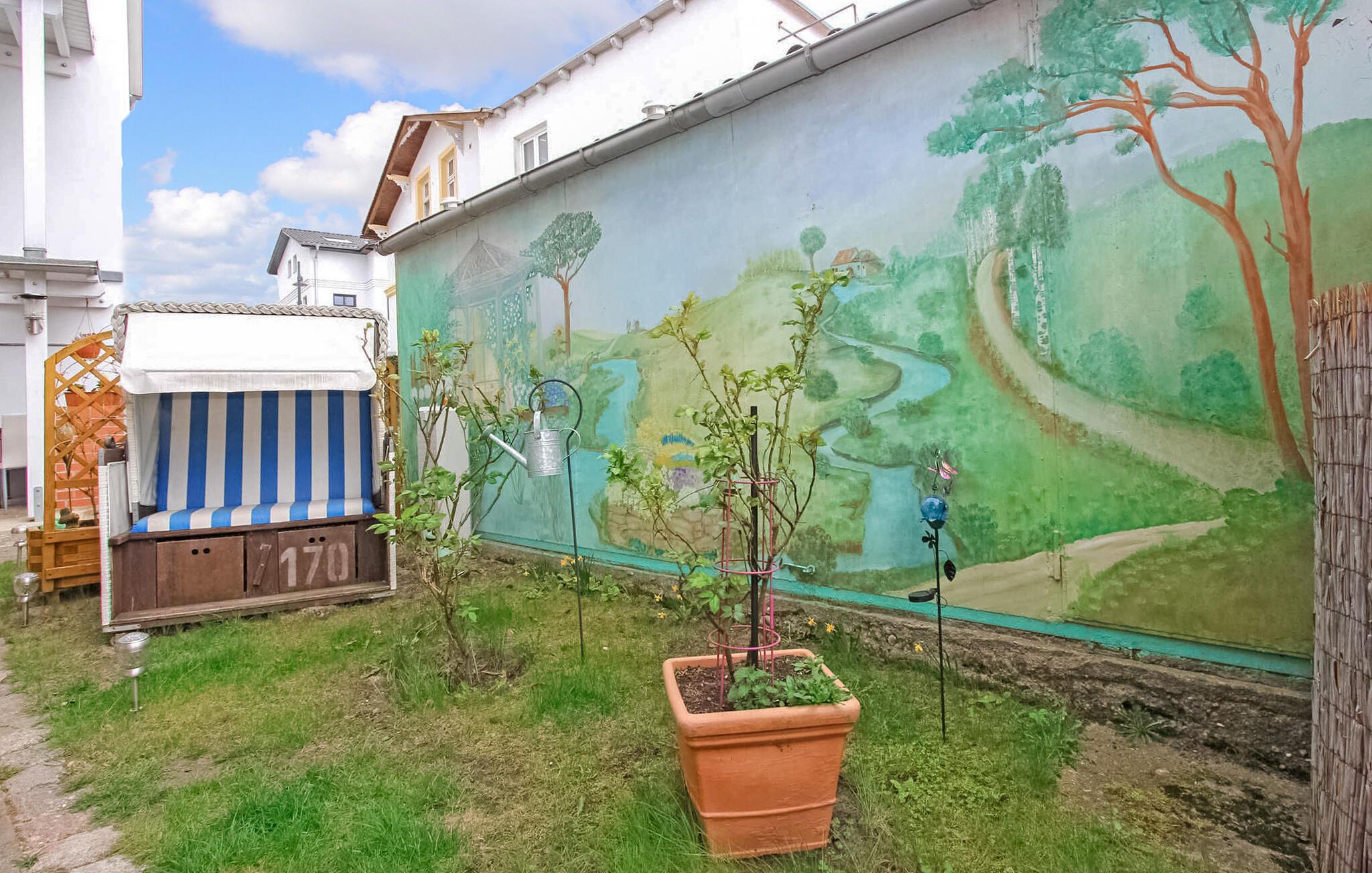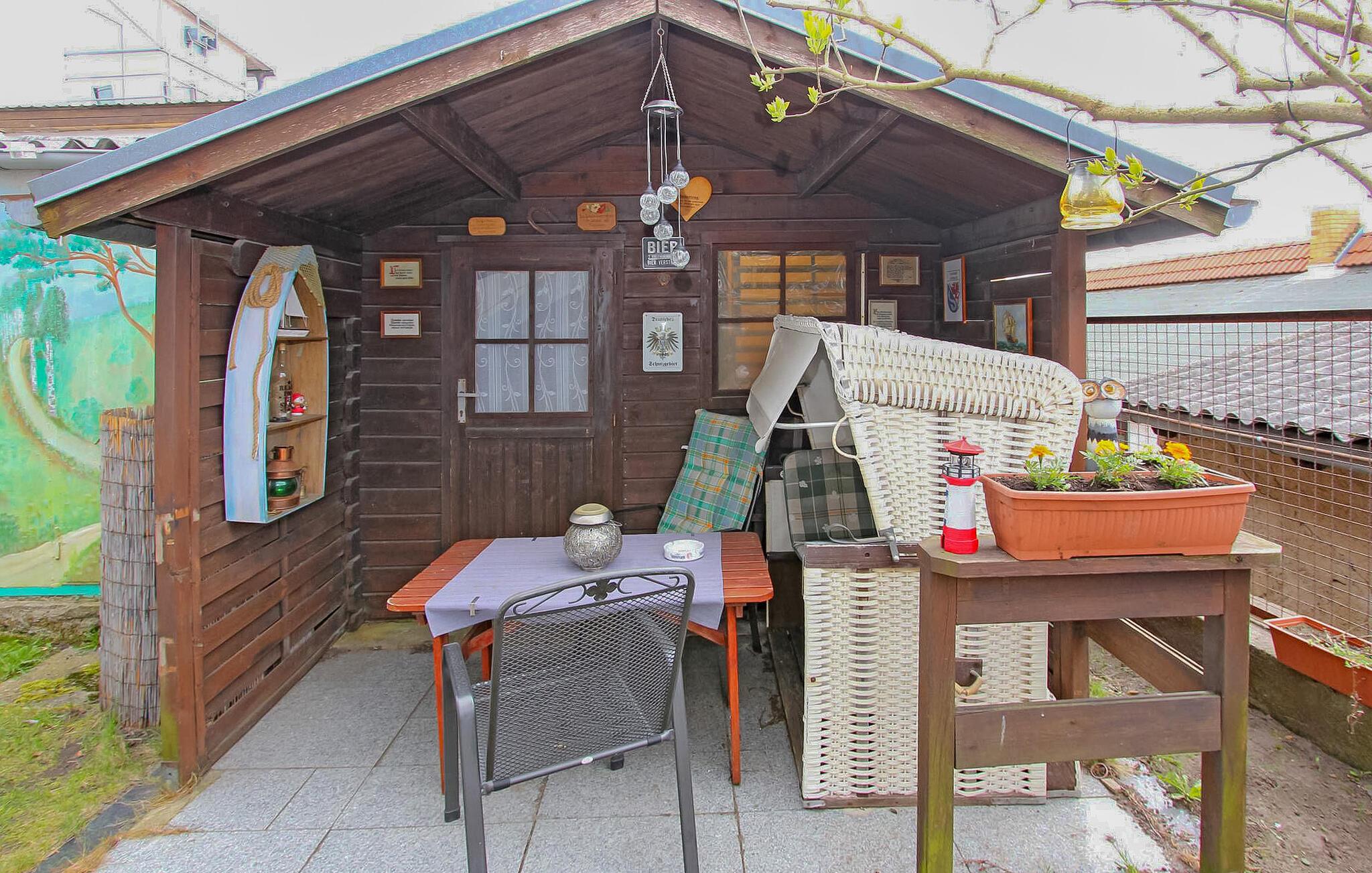 Ferielejligheden og de tre lejligheder ligger i stueetagen og øverste etage i et separat feriehus i gården til en badevilla, kun cirka 200 m fra Ahlbeck-molen og Østersøstranden. Butikker og restauranter ligger inden for få hundrede meter. Ejendomsbeskrivelsen findes for den respektive boligenhed. På det udendørs område er der et lille overdækket opholdsområde, grillfaciliteter, to strandstole til fælles brug samt cykelkælder og parkeringsplads (fra 2024 mod et gebyr på EUR 3,00/dag). Den samlede pris inkluderer slutrengøring, sengelinned, håndklæder samt vand- og energiforbrug. Da Østersøferiestedet Ahlbeck er et spa-/rekreationsresort, opkræves der en spaskat på stedet. En hund er tilladt i denne ejendom. Lejligheden (ca. 28 kvm til 2 personer) er beliggende i stueetagen af feriehuset.Den er udstyret med kombineret opholds-/soveplads (dobbeltseng, garderobeskab, opholdsområde, tv og radio), separat køkken med bl.a. el-komfur, bad/toilet, centralvarme og møbleret udendørs opholdsområde. Badebyerne Bansin, Heringsdorf og Ahlbeck er de såkaldte kejserlige feriesteder på øen Usedom. De har brede sandstrande, moler med moler og er forbundet med hinanden af en promenade, der fører til Swinoujscie i Polen. I byerne er der leje af cykler, båd og strandstole, tennisbaner og et netværk af godt afmærkede vandrestier. Et moderne vandland, "Ostseetherme", ligger centralt mellem Heringsdorf og Ahlbeck. Grænseovergangen til Polen kan nås fra Ahlbeck på få minutter.