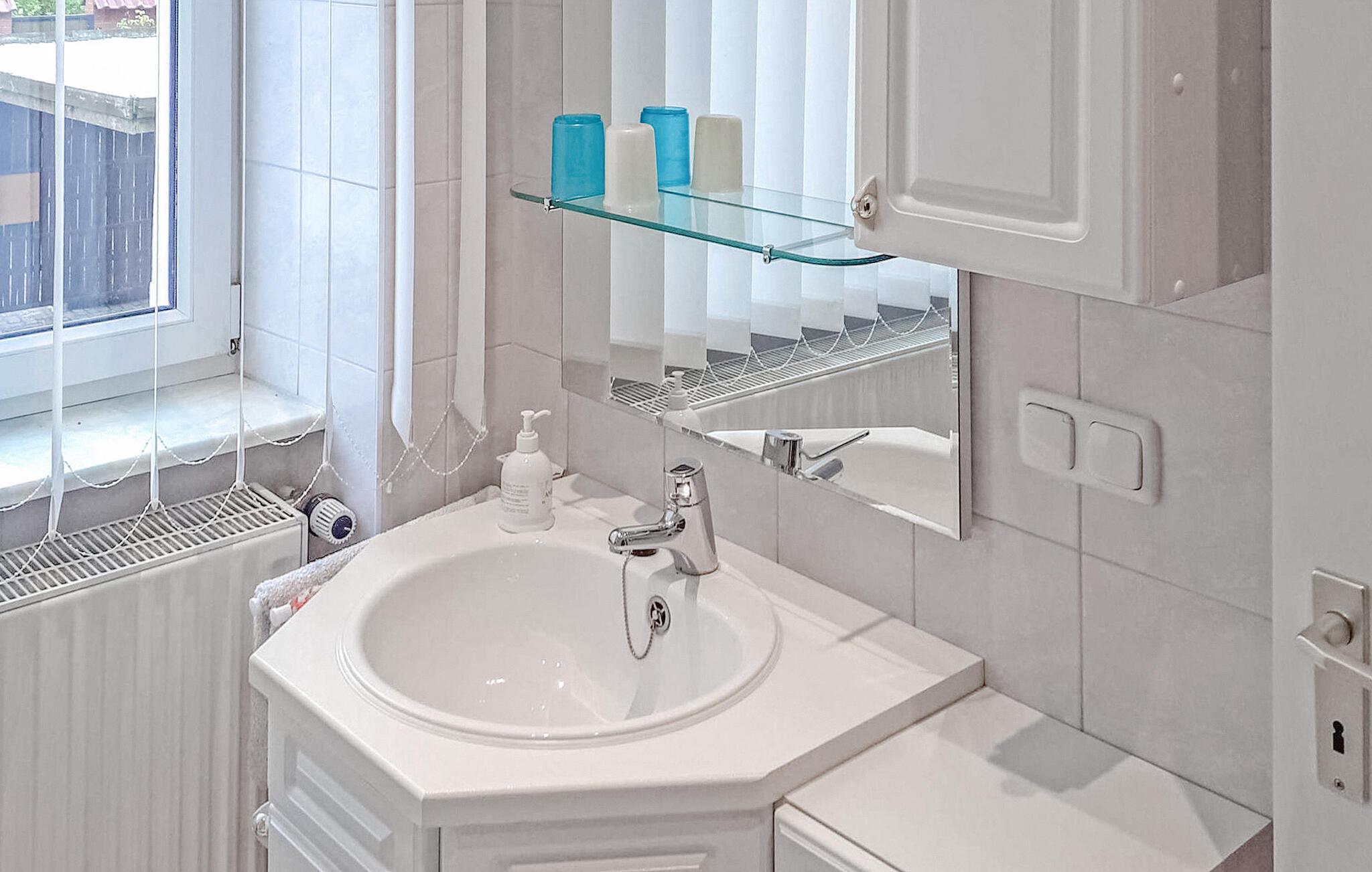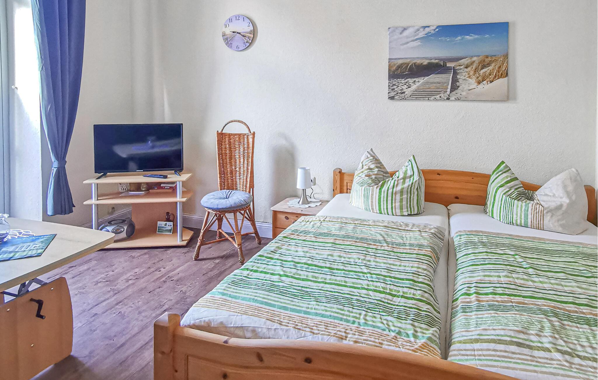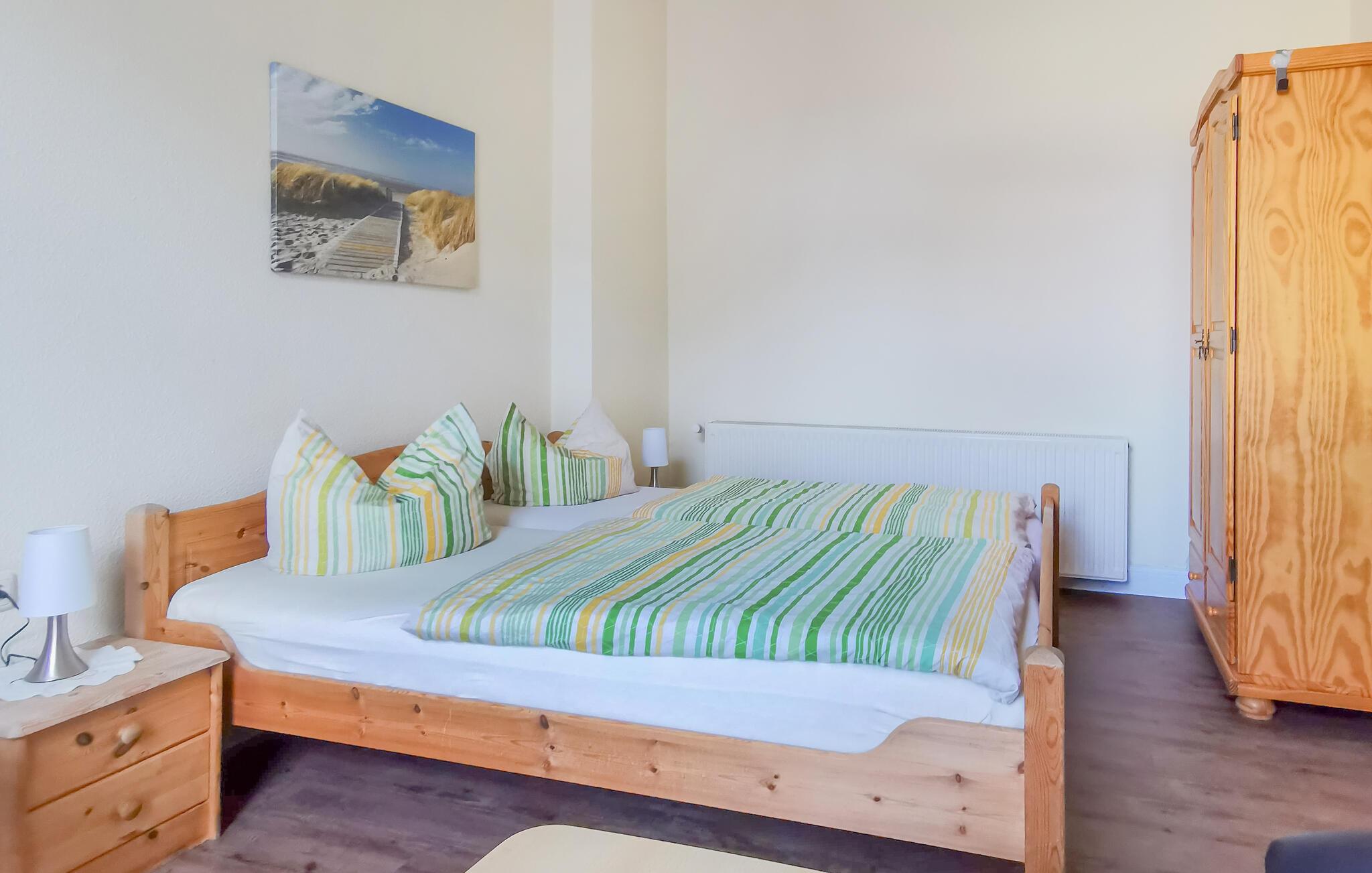 Denne en af ??to ferielejligheder i forskellige størrelser ligger på 1. sal i en strandvilla direkte på strandpromenaden. Adgang til stranden er ca. 20 m væk. Der er en lille kælderbar i boligen. Der er en parkeringsplads plads på ejendommen (4. sal EUR/dag) og cykelrum. Ejendommen er indhegnet tilladt og forbliver uden opsyn i lejligheden.