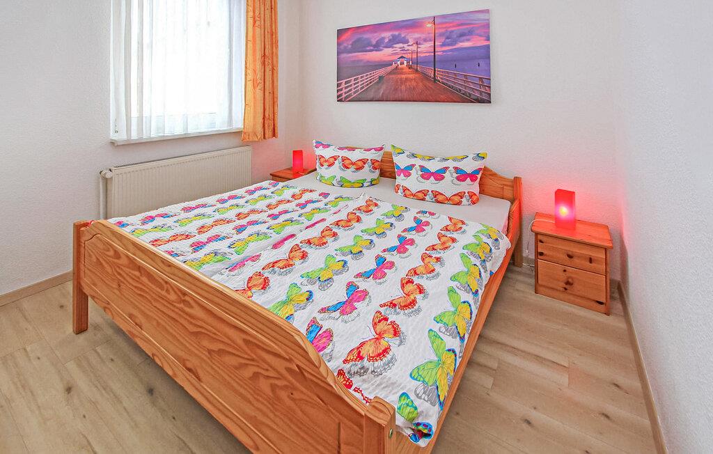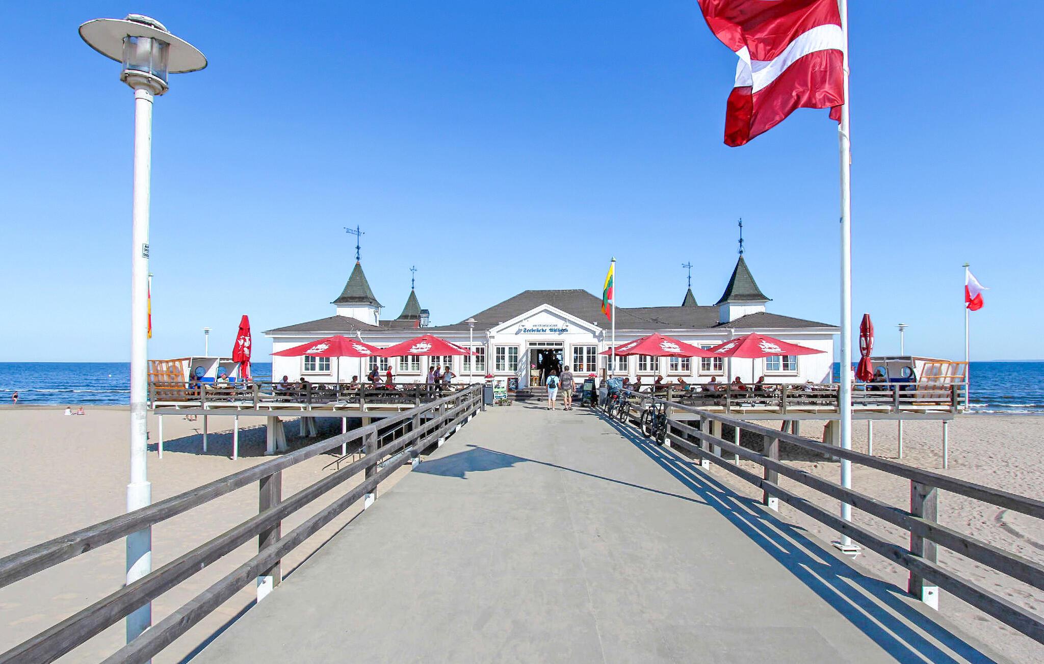 Denne 55 kvm store ferielejlighed til 4 personer ligger på øverste etage af en separat ferielejlighed i gården til en spavilla, cirka 200 m fra Ahlbeck-molen og Østersøstranden. Butikker og restauranter ligger inden for få hundrede meter. Lejligheden har en stue (polstrede møbler, nogle med sovefunktion (stueplan), fladskærms-tv), et soveværelse (dobbeltseng, fladskærms-tv). På øverste etage er der en ekstra sovealkove med 2 enkeltsenge. Lejligheden har separat køkken (spisebord, el-komfur med ovn, køleskab med fryser, mikroovn, diverse køkkenmaskiner) og badeværelse med brus/toilet. Udenfor er der et lille overdækket opholdsområde i indgangspartiet og en strandstol. En privat parkeringsplads per lejlighed, cirka 8 minutters gang væk (EUR 3,00/dag). Den samlede pris inkluderer slutrengøring, sengelinned, håndklæder samt vand- og energiforbrug. Da Østersøferiestedet Ahlbeck er et spa-/rekreativt feriested, opkræves en turistskat på stedet. Én hund er tilladt i denne ejendom. Badebyerne Bansin, Heringsdorf og Ahlbeck er de såkaldte kejserlige feriesteder på øen Usedom. De har brede sandstrande, moler med moler og er forbundet med hinanden af en promenade, der fører til Swinoujscie i Polen. I byerne er der leje af cykler, båd og strandstole, tennisbaner og et netværk af godt afmærkede vandrestier. Et moderne vandland, Ostseetherme, ligger centralt mellem Heringsdorf og Ahlbeck. Grænseovergangen til Polen kan nås fra Ahlbeck på få minutter.