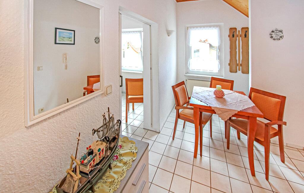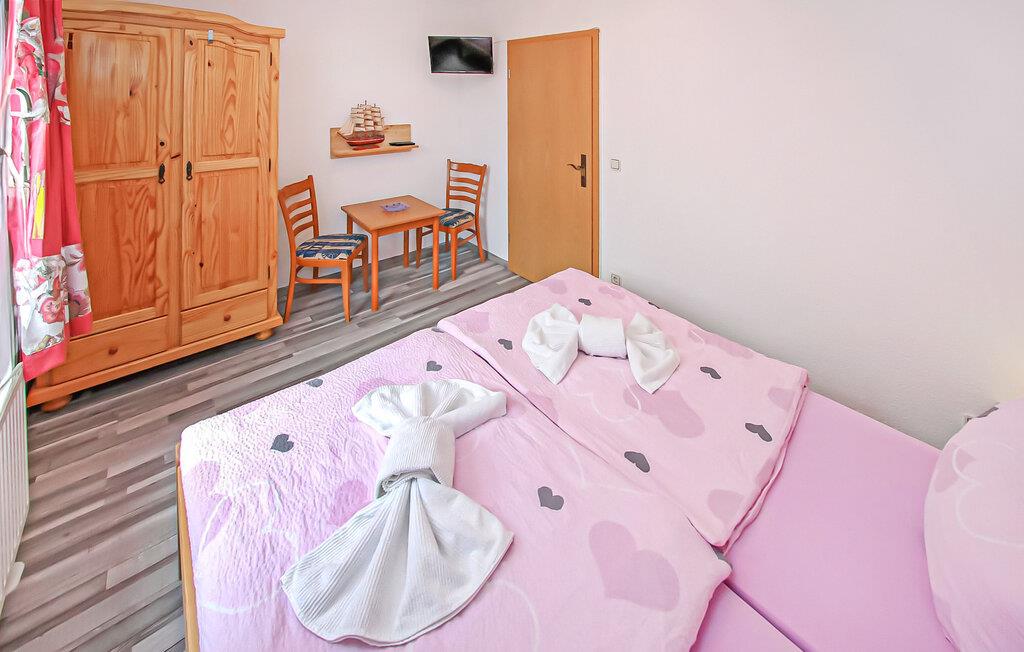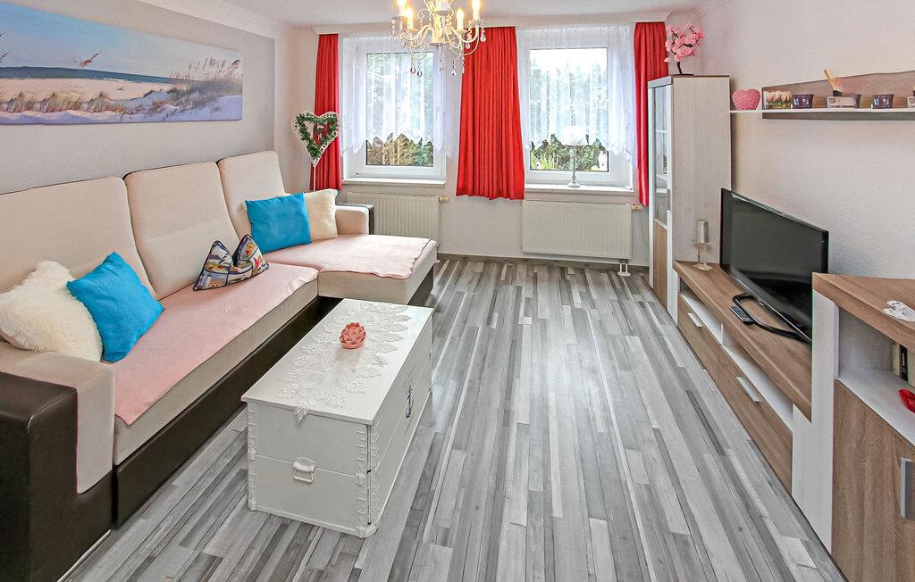 Denne 55 kvm store ferielejlighed til 3 personer ligger i stueetagen af en separat ferielejlighed i gården til en spavilla, cirka 200 m fra Ahlbeck-molen og Østersøstranden. Butikker og restauranter ligger inden for få hundrede meter. Lejligheden har en stue (polstrede møbler, nogle med sovefunktion (stueetagen), fladskærms-tv), et soveværelse (dobbeltseng, fladskærms-tv), et separat køkken (spisebord, el-komfur med ovn, køleskab) med fryser, mikroovn, diverse køkkenmaskiner) samt badeværelse med brus/toilet. Udenfor er der et lille overdækket opholdsområde i indgangspartiet og en strandstol. En privat parkeringsplads per lejlighed, cirka 8 minutters gang væk (EUR 3,00/dag). Den samlede pris inkluderer slutrengøring, sengelinned, håndklæder samt vand- og energiforbrug. Da Østersøferiestedet Ahlbeck er et spa-/rekreationsresort, opkræves der en spaskat på stedet. En hund er tilladt i denne ejendom. Badebyerne Bansin, Heringsdorf og Ahlbeck er de såkaldte kejserlige feriesteder på øen Usedom. De har brede sandstrande, moler med moler og er forbundet med hinanden af en promenade, der fører til Swinoujscie i Polen. I byerne er der leje af cykler, båd og strandstole, tennisbaner og et netværk af godt afmærkede vandrestier. Et moderne vandland, Ostseetherme, ligger centralt mellem Heringsdorf og Ahlbeck. Grænseovergangen til Polen kan nås fra Ahlbeck på få minutter.