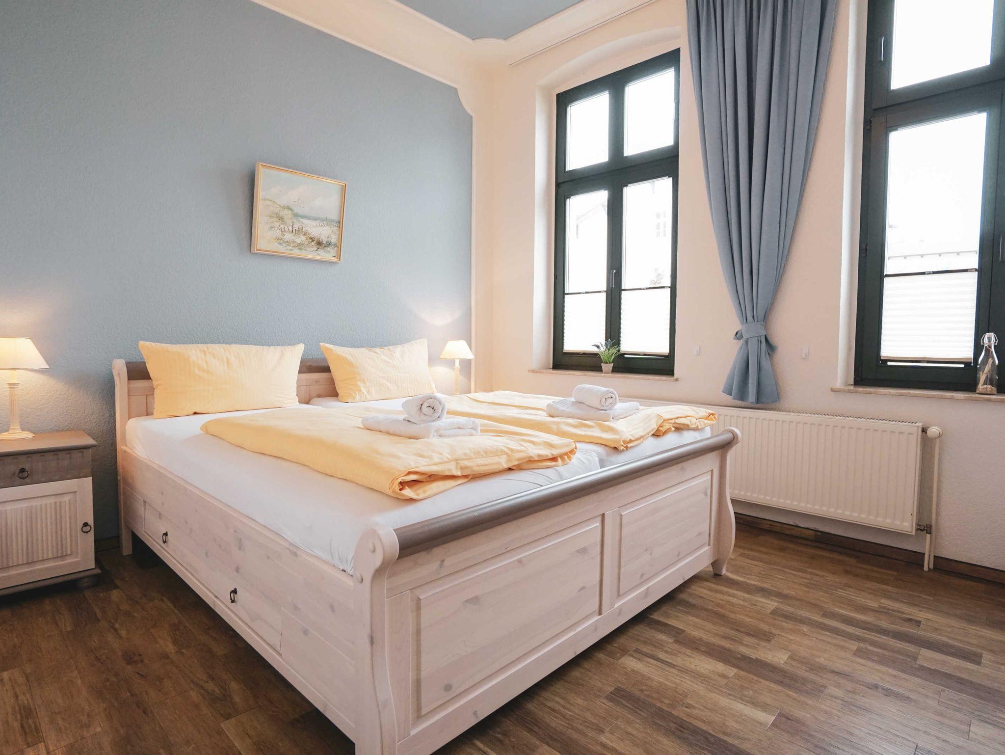Die modern und komfortabel eingerichtete Ferienwohnung im Erdgeschoss des Hauses Ostpreußen ist ca. 50qm groß und bietet 2 bis 3 Personen Platz zum Wohlfühlen. Das Wohnzimmer ist mit einer Sitzgruppe, einem Flachbildfernseher und einem Elektrokamin ausgestattet. Die offene Küchenzeile mit einem Elektroherd ist komplett ausgestattet (inkl. Geschirrspüler). Im Erkerzimmer befindet sich eine gemütliche Schlafcouch. Das Schlafzimmer verfügt über ein Doppelbett , einen Kleiderschrank und einen weiteren Flachbildfernseher mit DVD-Player (Ausreichend Platz für ein Kinderbett). Das Duschbad ist modern und zweckmäßig ausgestattet. Ein eigener Parkplatz direkt am Haus ist selbstverständlich und ein kostenfreies WLAN Netzwerk steht Ihnen ebenfalls zur Verfügung.
