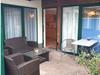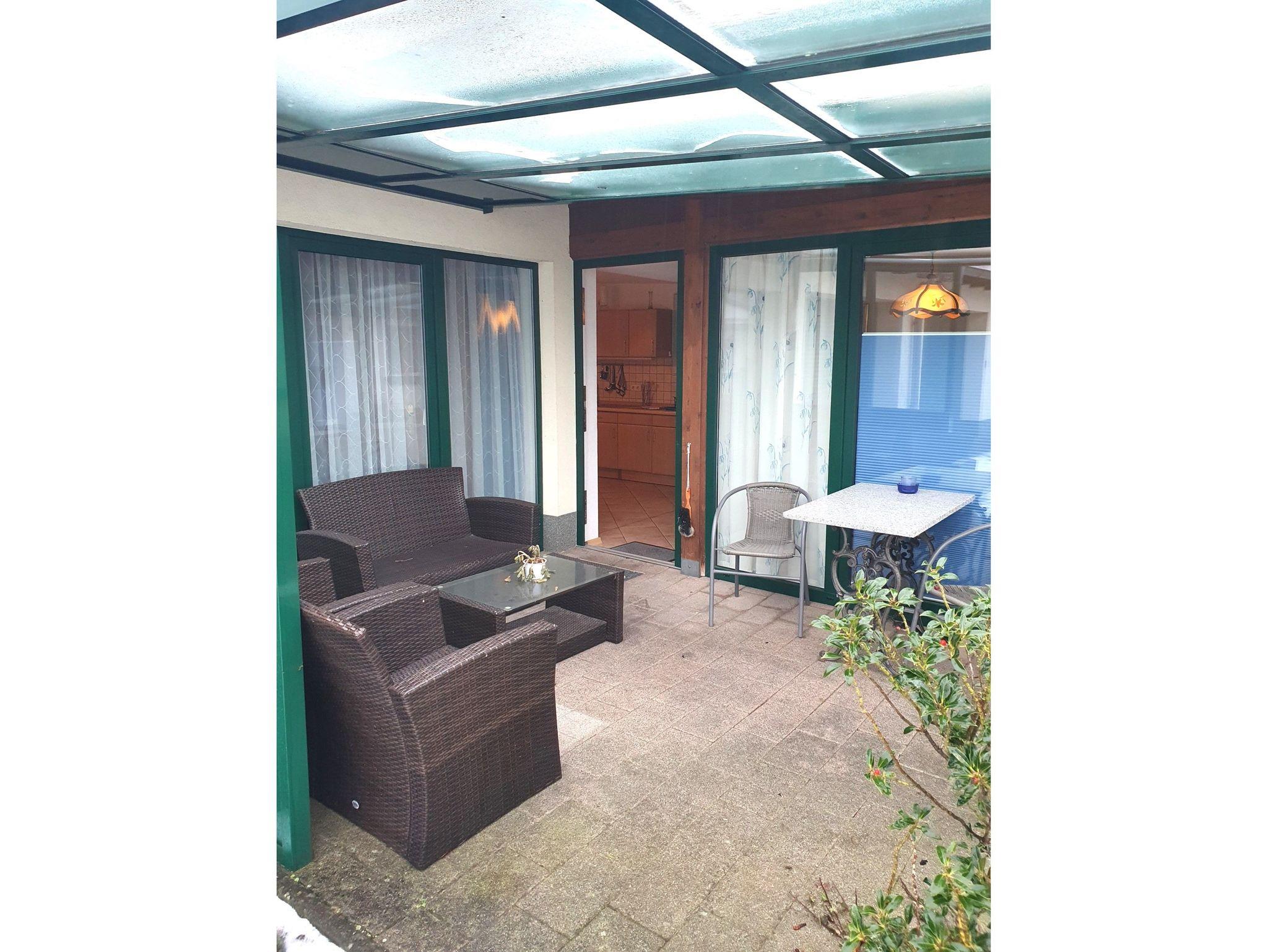 Die 2-Raum-Wohnung Lila befindet sich im Erdgeschoss und ist ca. 55 m² groß. Das Wohnzimmer ist mit einer gemütlichen Couch, Sessel und Flachbildfernseher ausgestattet. Im Wohnzimmer befindet sich die offene Küche und der Essbereich. Die Küche verfügt über ein 4er-Cerankochfeld, Kühlschrank mit Gefriermöglichkeit, Kaffeemaschine, Wasserkocher, Toaster und Mikrowelle. Das Schlafzimmer ist ausgestattet mit einem gemütlichen Doppelbett, einem kleinen Schlafsofa und Kleiderschrank, sowie einem zweiten Sofa. Das Badezimmer verfügt über eine Dusche und einen Haartrockner. Vor der Wohnung befindet sich eine möblierte und überdachte Terrasse mit Esstisch und gemütlichen Sesseln.