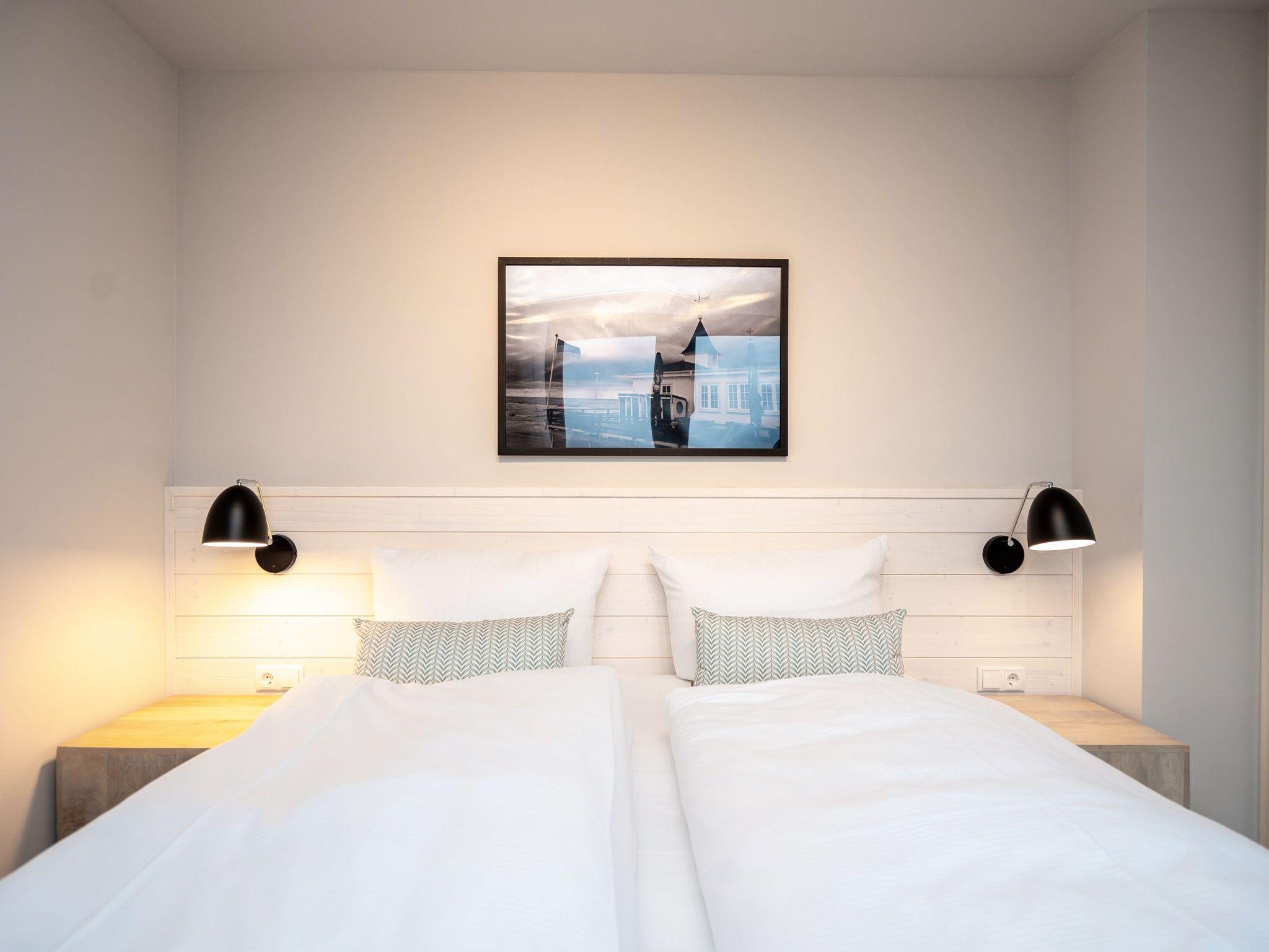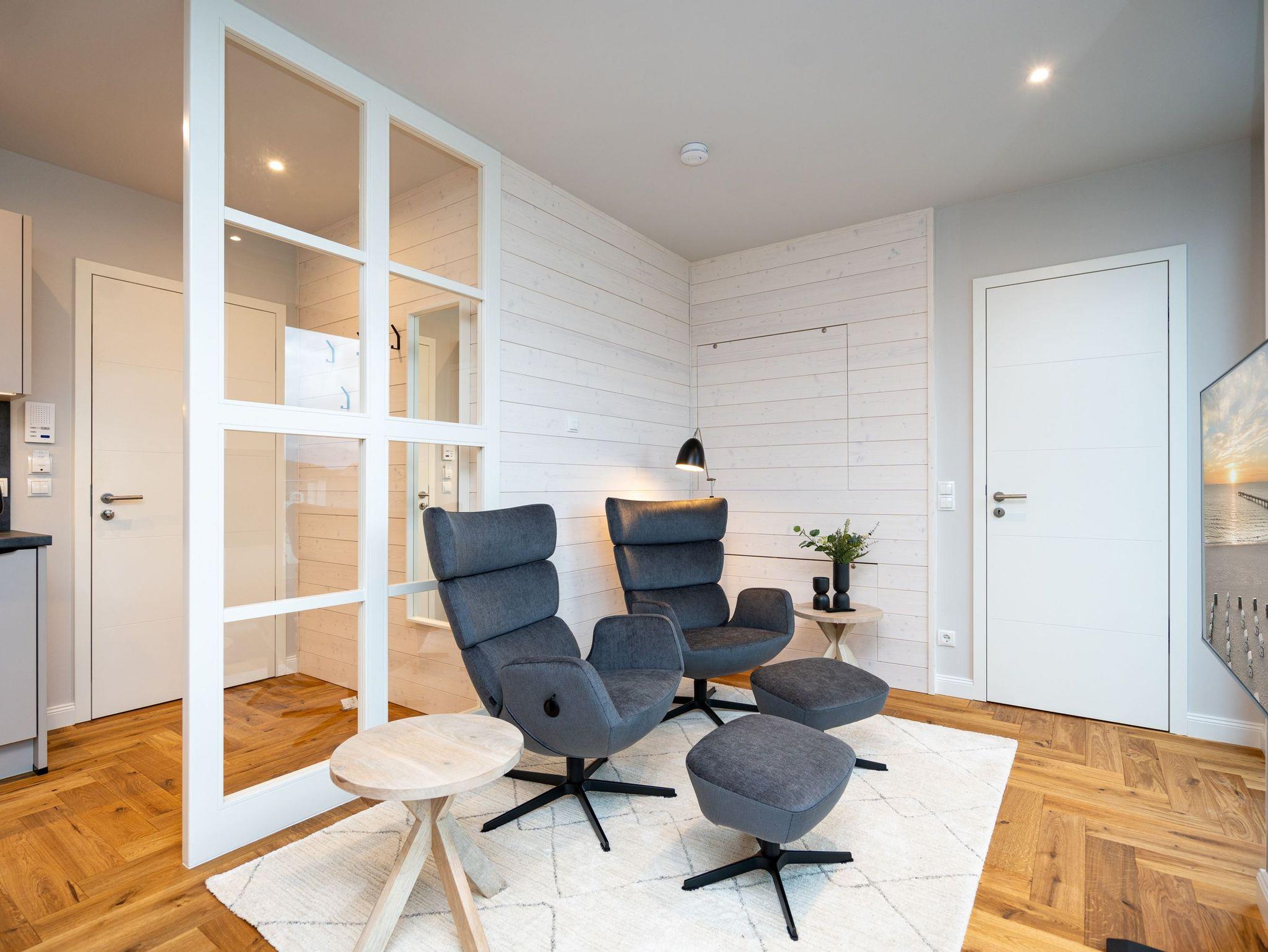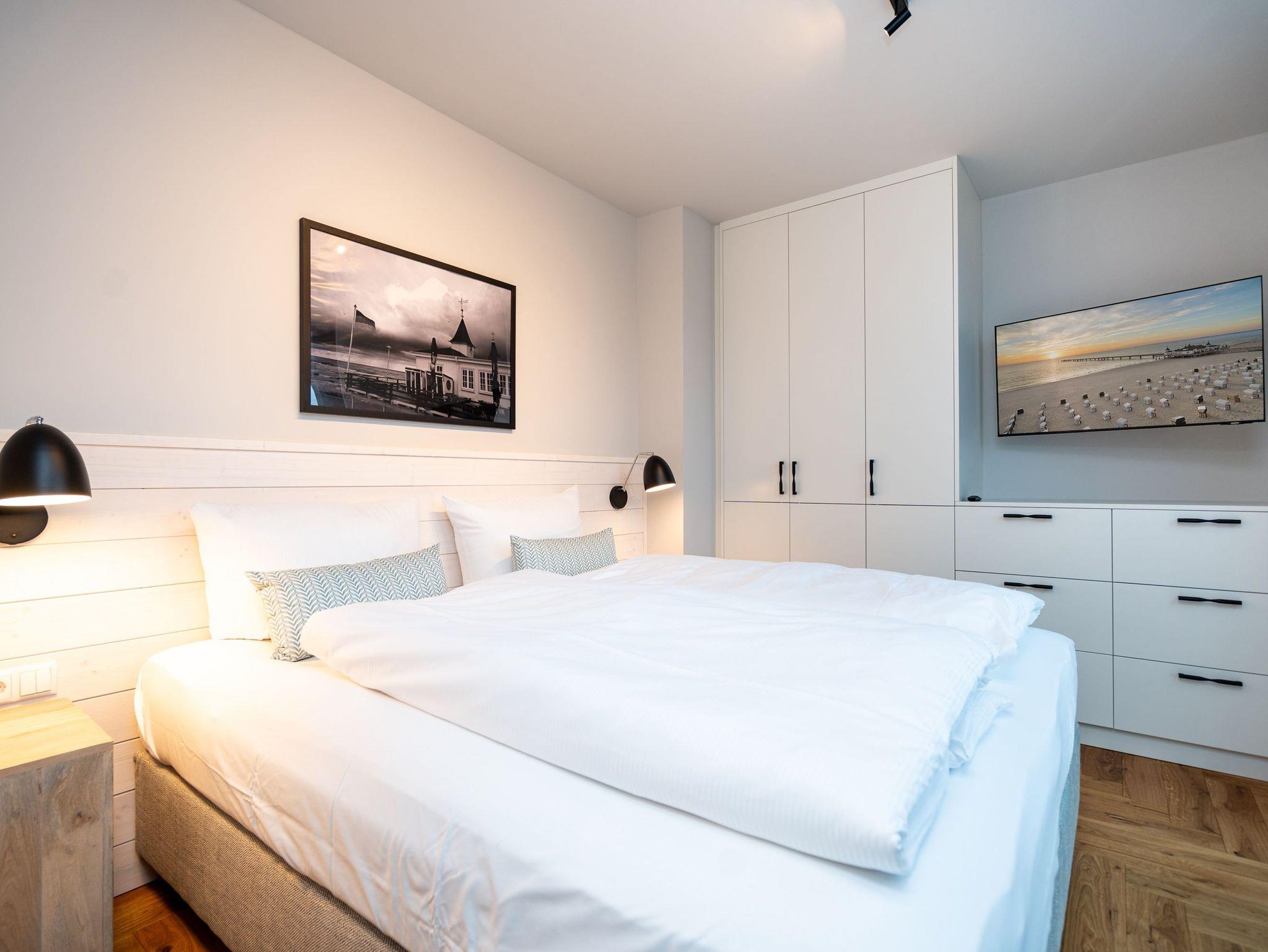 Die 2024 fertig gestellte Strandterrasse liegt direkt an der belebten Strandpromenade und bietet einen einzigartigen Ausblick auf die Grand Dame der historischen Seebrücken sowie die historische Konzertmuschel, einem beliebten Treffpunkt für Kunst und Kultur. Dahinter liegt die Ostsee ? ein Panorama, das zu den schönsten in den Kaiserbädern gehört. Es ist wie das Abtauchen in eine andere Zeit. In eine Zeit, in der man mit Stock, Sonnenschirm und Hut fürs „Sehen und gesehen werden“ über die Promenade schlenderte; aber auch in eine Zeit, in der ? damals wie heute ? Zeit einmal für eine kurze Weile keine Rolle spielt. Weil man angekommen ist im Loslassen, Entspannen und Genießen. Es ist dieser besondere Geruch nach Meeresluft und Freiheit, der in Erinnerung bleibt. Dazu die Bilder, die man mitnimmt. Von langen Strandspaziergängen, vom Lachen in fröhlich schäumenden Ostseewellen, von der Zeit in einem wunderschönen Urlaubsdomizil. Denn genau das ist die Strandterrasse mit ihren 56 modernen und exklusiven Ferienappartements direkt gegenüber der Ahlbecker Seebrücke. Die Ein-, Zwei- oder Dreizimmerwohnungen ? zwischen 40 und 70 Quadratmeter groß ? sind von einer Innenarchitektin gemeinsam mit unserem Erfahrungsschatz an Gästewünschen mit viel Liebe zum Detail und ganz individuell konzipiert worden. Entspannung und Wohlfühlen stehen an erster Stelle. Alles ist aufeinander abgestimmt und sorgt für eine gemütliche Atmosphäre. Wählen Sie zwischen einem Domizil in einem hellen, sandfarbenen Designkonzept oder einem Appartement mit anthrazitfarbenen Farbakzenten. Alle Appartements verfügen gleichermaßen über eine stilvolle und komfortable Einrichtung, die passgenau angefertigt worden ist, sowie über moderne Küchen und Bäder. Jedem Schlafzimmer ist ein eigenes Bad mit Dusche zugeordnet (außer App. B4.5). Die Appartements besitzen fast alle einen Balkon ? viele schauen sogar zur Ostsee hinaus. Die meisten Feriendomizile haben einen Elektrokamin und Infrarotsaunen. Im Erdgeschoss befindet sich ein separater Gemeinschaftsraum für Fahrräder. Außerdem besteht die Möglichkeit, im Gemeinschaftswaschraum 2 Waschmaschinen [&] Trockner zu nutzen. Ergänzt wird das Angebot durch eine Gemeinschaftssauna, die täglich von 11:00 bis 22:00 Uhr nutzbar ist. In der Tiefgarage (Einfahrtshöhe 2,03 Meter) steht für jede Wohnung 1 Pkw-Stellplatz zur Verfügung. Ist alles zur Zufriedenheit untergebracht? Dann kann der Urlaub ja beginnen. Und beim Blick vom Balkon über die Ostsee treffen sich zum Sonnenaufgang das Heute und das Damals. Gelassenheit legt sich beim Gang hinunter an den Strand auf die Seele. Jetzt darf die Zeit stehenbleiben.