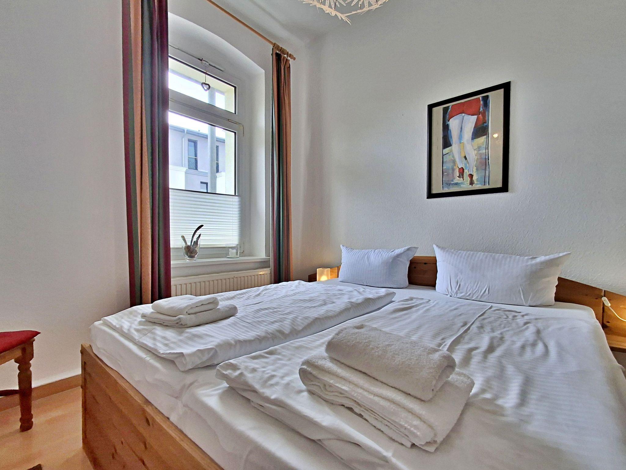 Diese gemütliche 50 qm große Wohnung befindet sich im Erdgeschoss der charmanten Villa Phönix. Hier erwartet Sie ein liebevoll eingerichteter Rückzugsort, perfekt für einen entspannten Urlaub zu zweit. Die Wohnung verfügt über zwei hübsche Zimmer, einen kleinen Wintergarten, eine kleine, gut ausgestattete Küche mit Kühlschrank, 2-Platten-Ceranherd, Mikrowelle, Wasserkocher, Toaster und Tassimo-Kaffeemaschine sowie ein großes Badezimmer mit Badewanne, die auch eine Duschfunktion bietet und Waschmaschine - ideal zum Relaxen nach einem erlebnisreichen Tag. Das Schlafzimmer hat ein bequemes Doppelbett und einen Kleiderschrank mit genügend Stauraum. Warme Farben, strapazierfähiger Laminatboden und bequeme Möbel sorgen für eine angenehme Atmosphäre. Zur Ausstattung gehören außerdem Flachbild-TV, Radio, MP3-Player, Esstisch mit 4 Stühlen und eine kleine Urlaubsbibliothek, damit Sie es sich richtig gemütlich machen können.