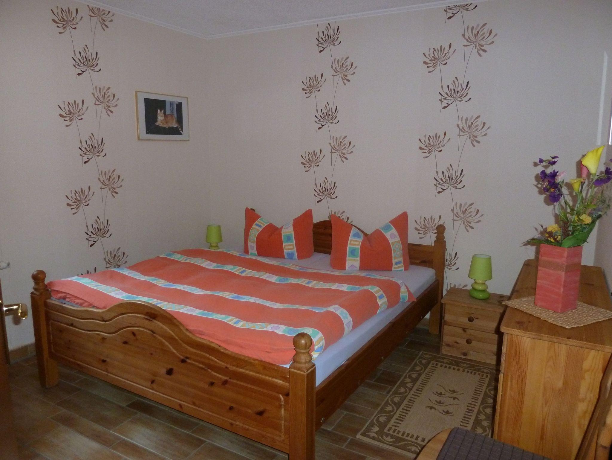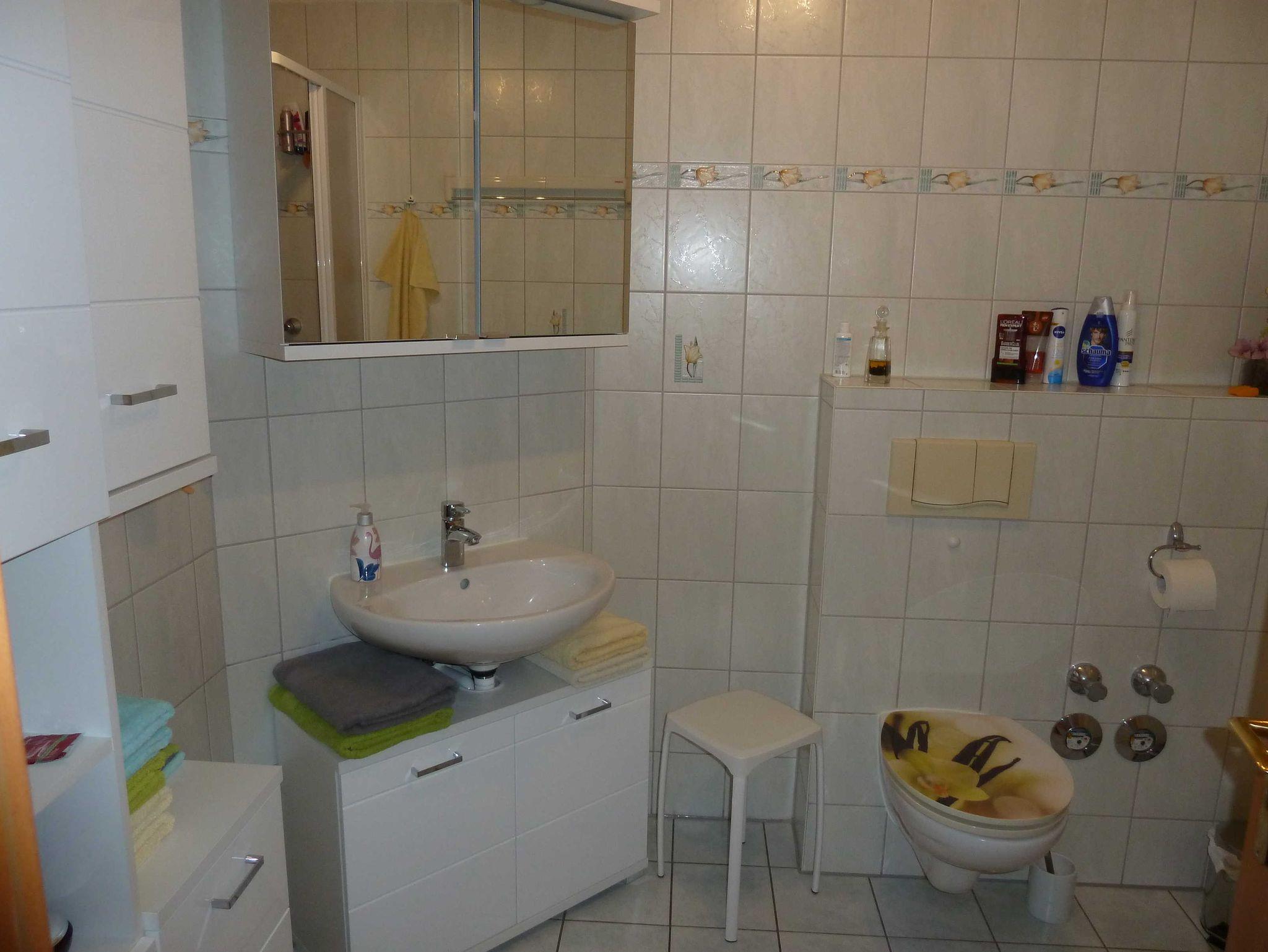 - Schlafzimmer: Anrichte, Doppelbett, Kleiderschrank Dusche großzügig mit Badmöbeln und WC
