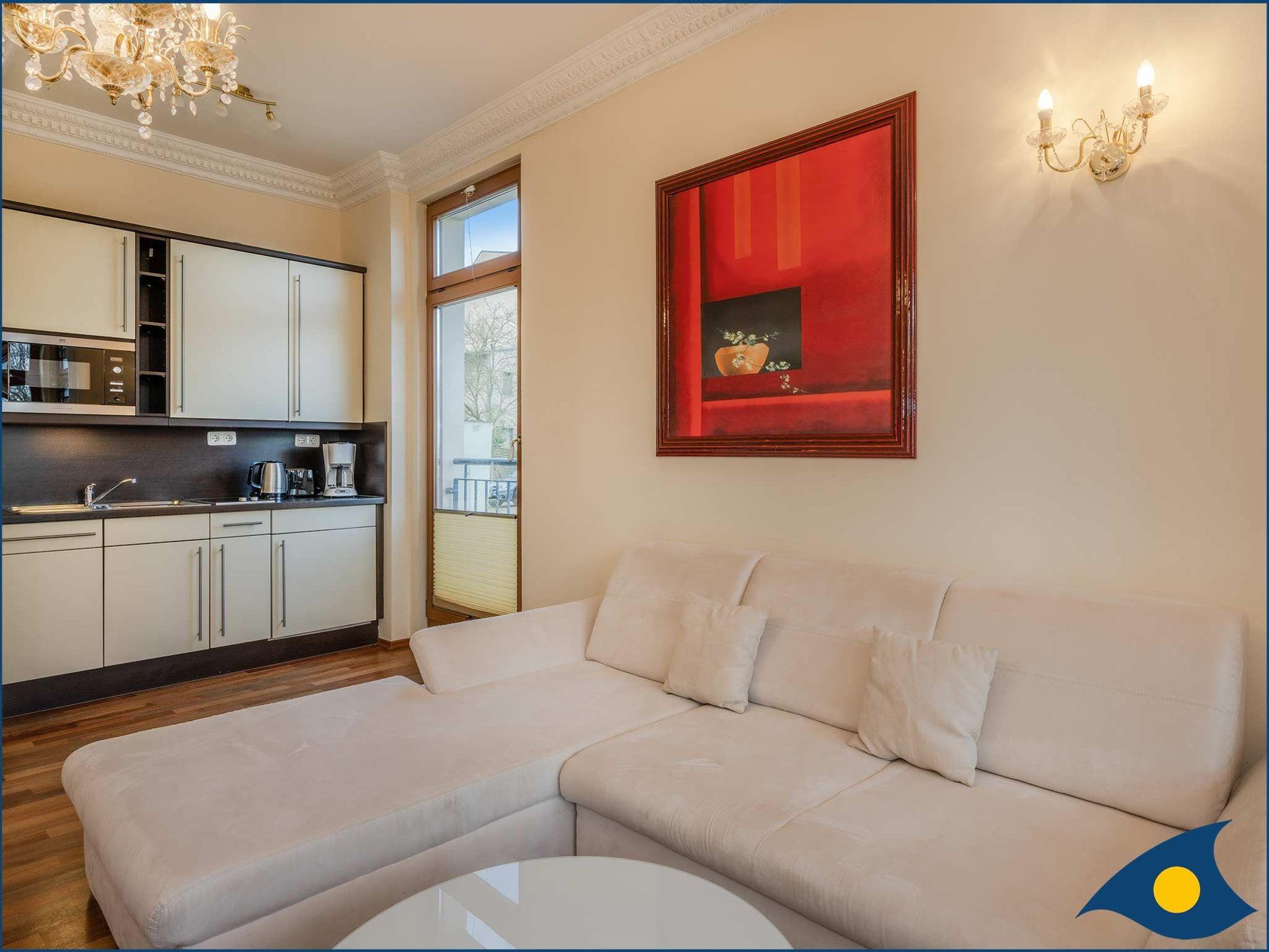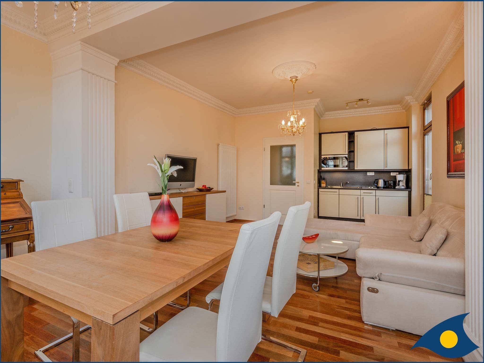 Diese großzügige Ferienwohnung im 1. Obergeschoss der Villa bietet Ihnen einen wundervollen Blick auf die Ostsee.