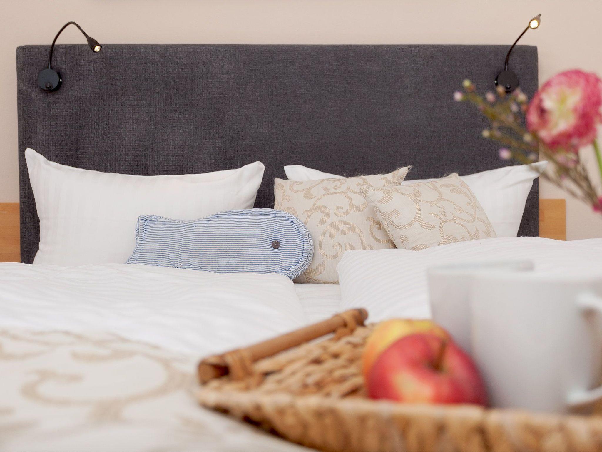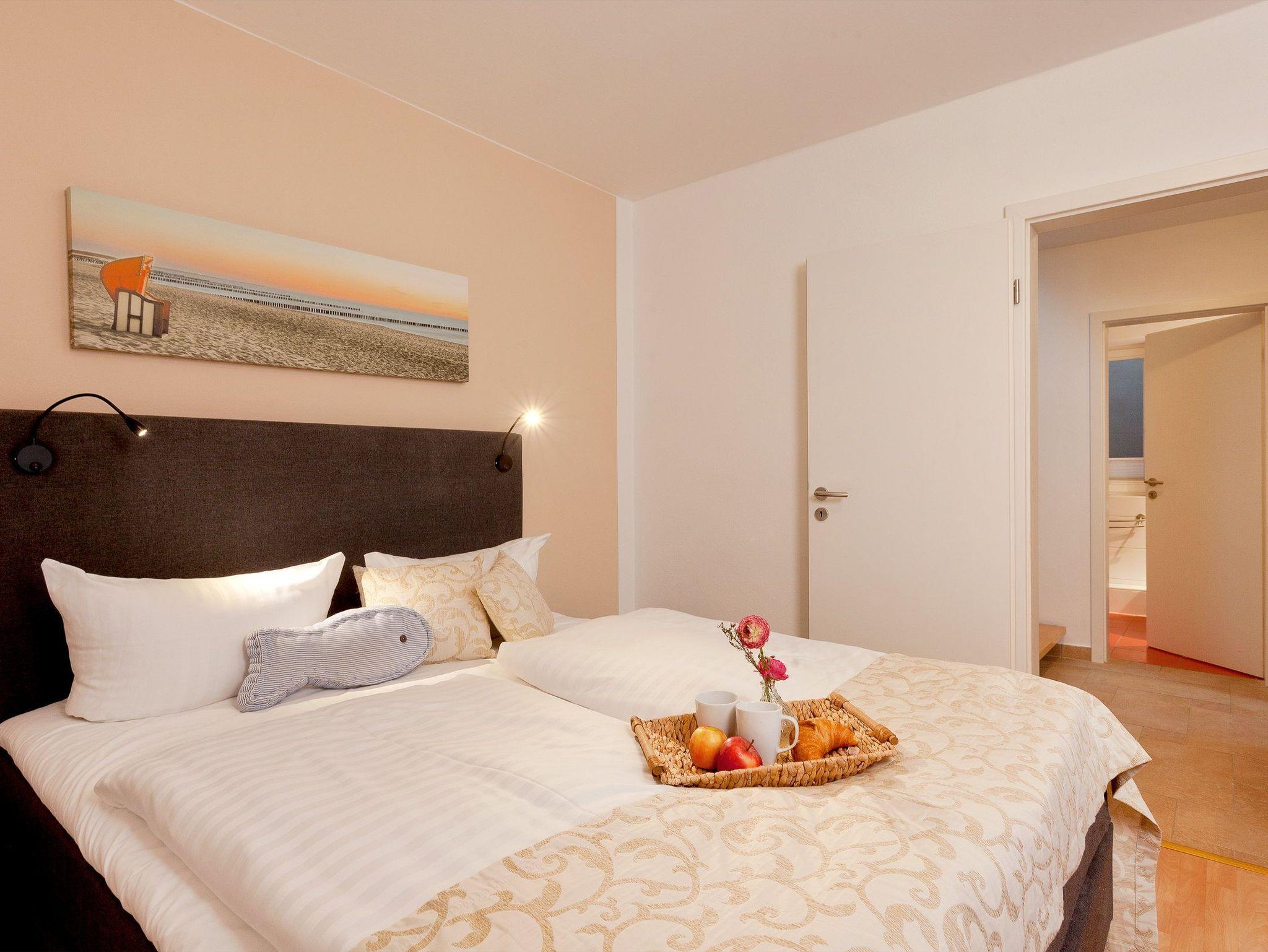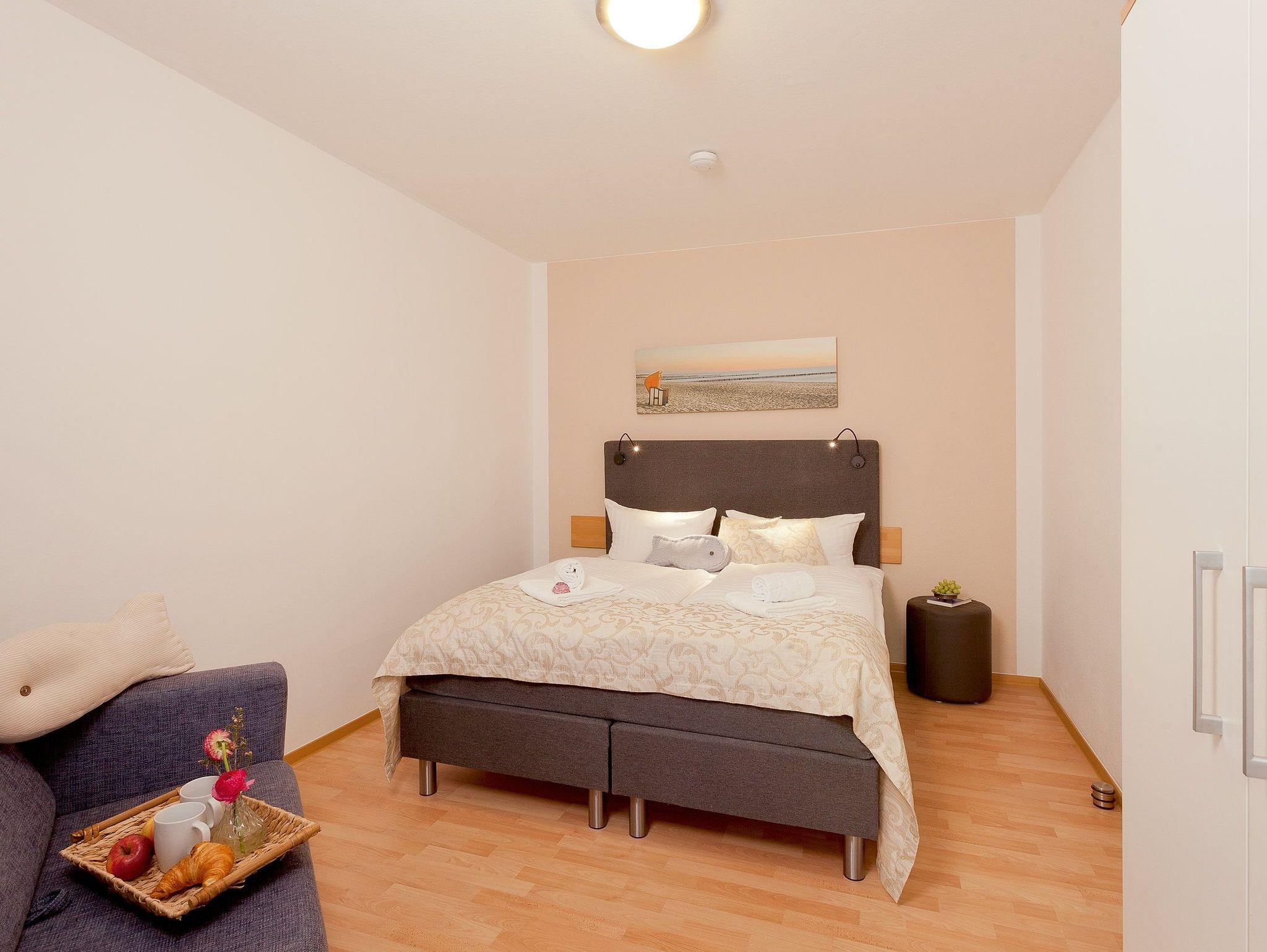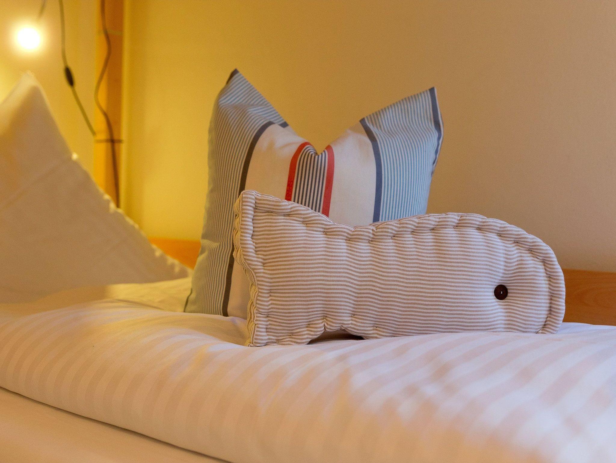 Damit Sie Ihre wohlverdiente Urlaubszeit bereits am Anreisetag in vollen Zügen genießen können, haben wir das Bett für Sie und das für Ihre lieben Mitreisenden bereits bezogen und ein Duschtuch sowie ein kleines Handtuch bereitgelegt. Die Aufbettung für ein Kind ist im Schlafzimmer im Babyreisebett (max. 3 Jahre) oder auf Faltmatratze (3 bis10 Jahre) 80 x 200 cm möglich. Im 2. Schlafzimmer befindet sich für unsere kleineren Gäste ein Etagenbett (jeweils 90 x 200cm). Das Badezimmer ist mit Dusche, WC, Handtuchtrockner und Fußbodenheizung ausgestattet.