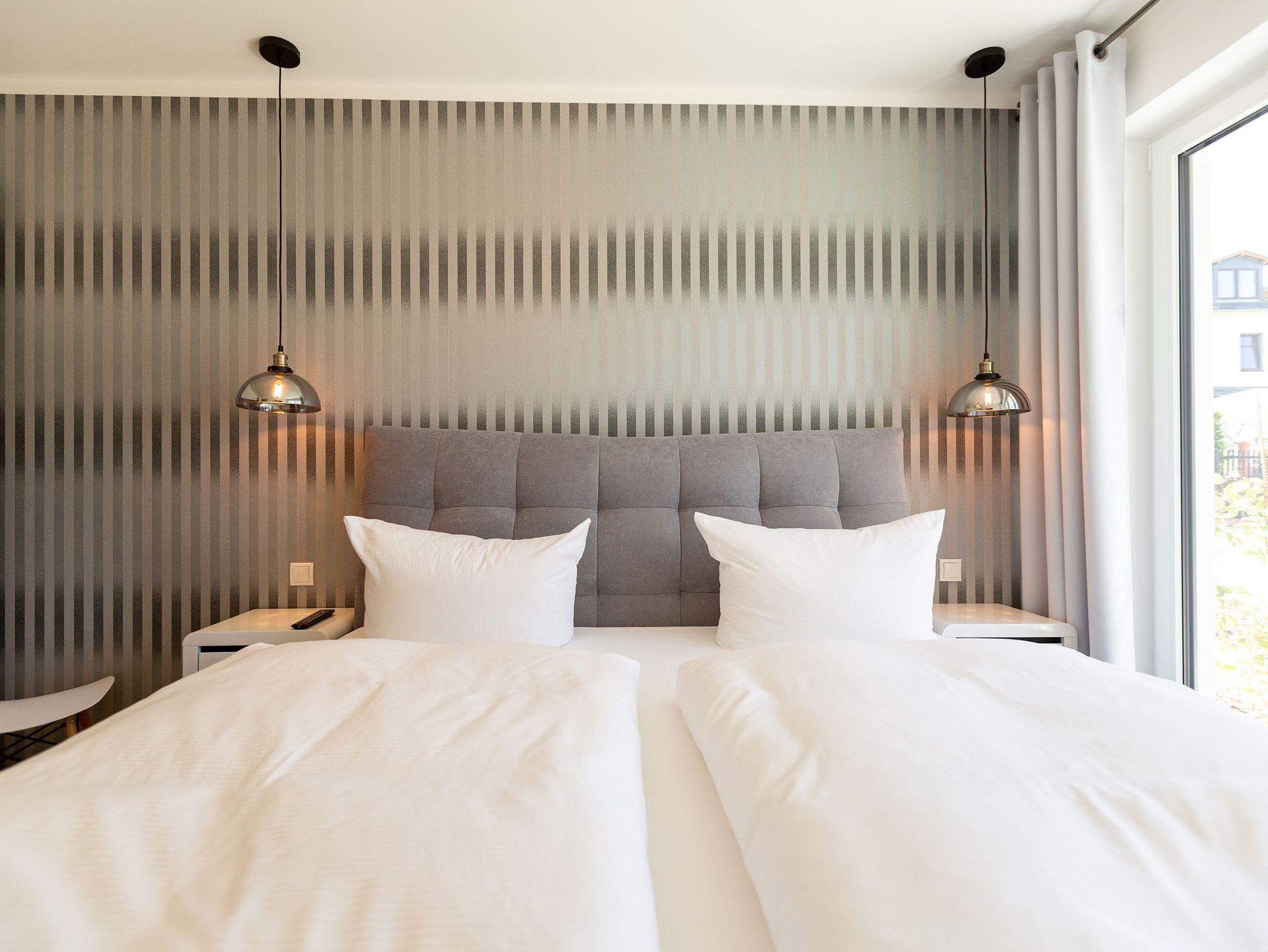 Ankommen, abschalten und neue Energie tanken. Im neu gebauten Quartier 7 im Herzen des Kaiserbades Ahlbeck fällt Ihnen das sicher ganz leicht. Moderne und stilvoll eingerichtete Appartements laden zum Wohlfühlen und Entspannen ein. In den ersten und zweiten Stock gelangen Sie via Fahrstuhl. Schöne, alte Villen umgeben die Anlage, verleihen dem Wohngefühl ein besonderes Flair. Die Zwei- und Drei-Zimmer-Appartements sind geräumig, offen und hell und teilweise mit einer Sauna oder einem Kamin ausgestattet. Wohnkomfort vom Feinsten lädt zum Faulenzen ein. Genießen Sie die frische Ostseeluft auf dem Balkon oder der Terrasse, denn jede Wohnung besitzt einen kleinen Außenbereich. An stürmischen Tagen können Sie von hier aus sogar die Wellen rauschen hören. Das beste Rezept für einen erholsamen Schlaf. Offene Wohnbereiche und voll ausgestattete Küchen sorgen für alle Annehmlichkeiten. Das Haus bietet eine Tiefgarage (Einfahrthöhe ca. 2,03 m). Einige Wohnungen verfügen über einen Kellerraum, der als Unterstellmöglichkeit für Fahrräder genutzt werden kann. Das WLAN-Netz ist für alle kostenfrei. Willkommen also in Ihrem kleinen Urlaubsparadies.