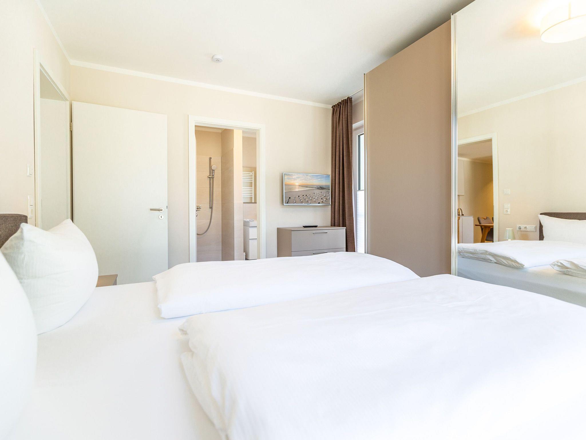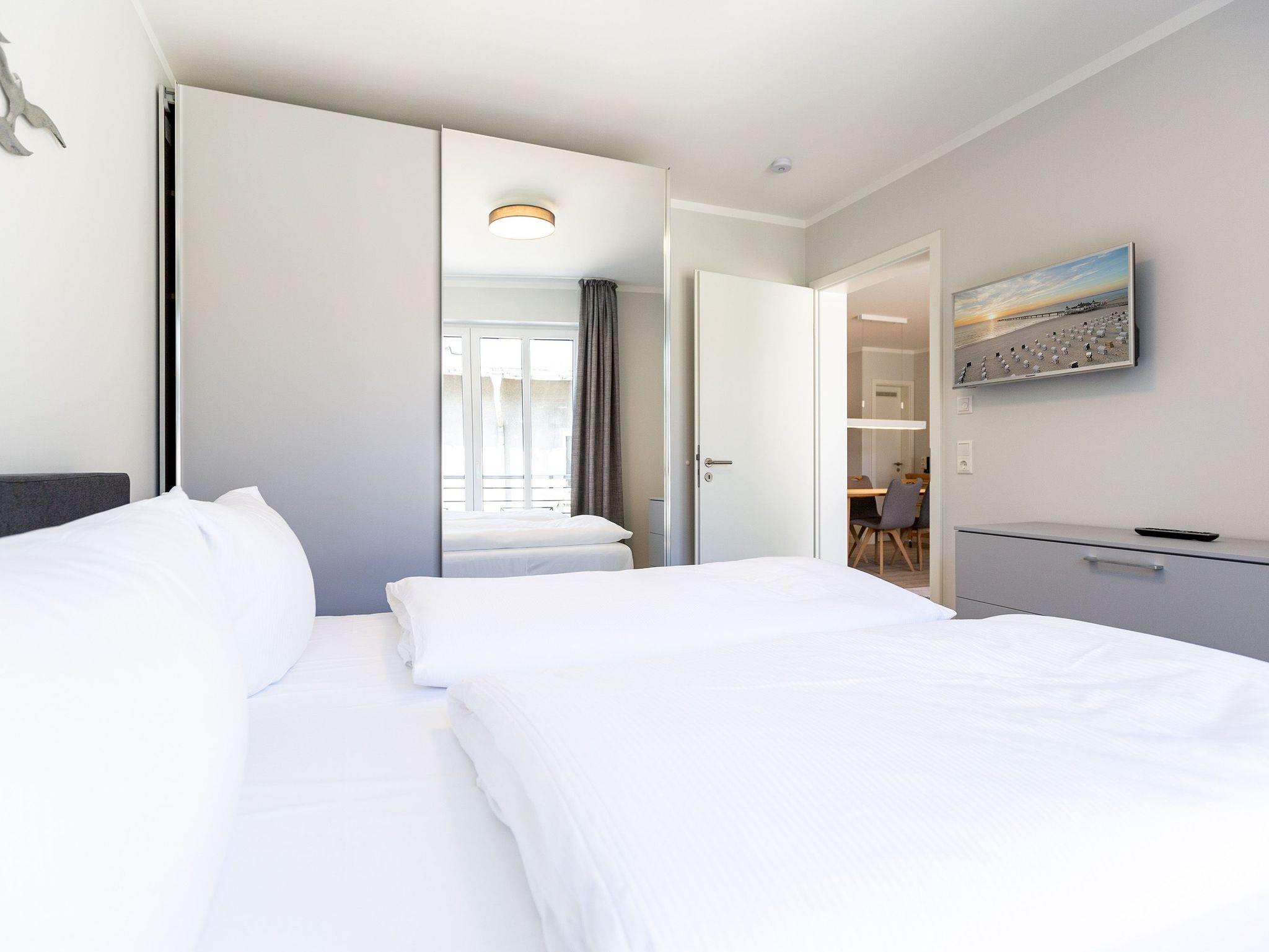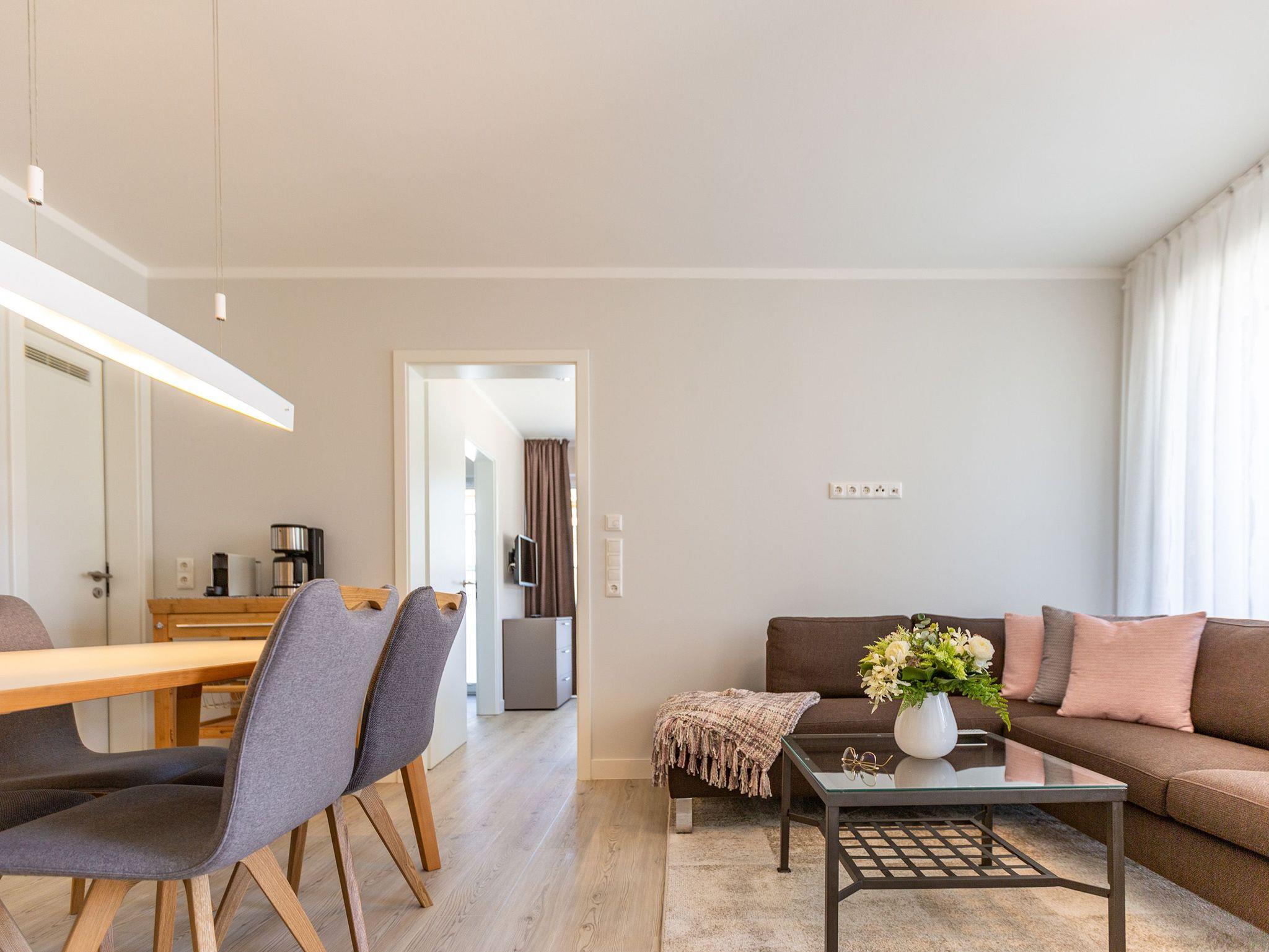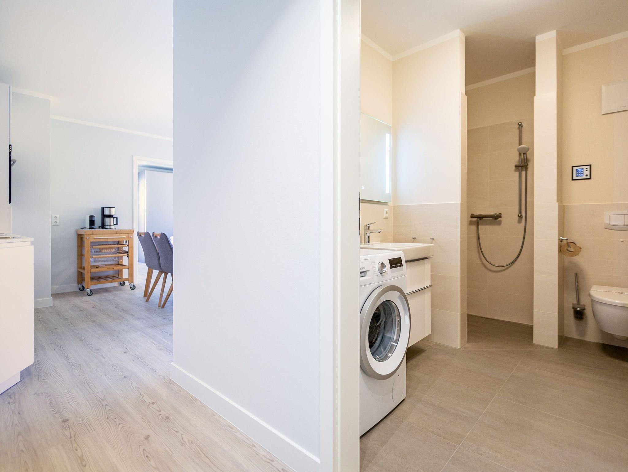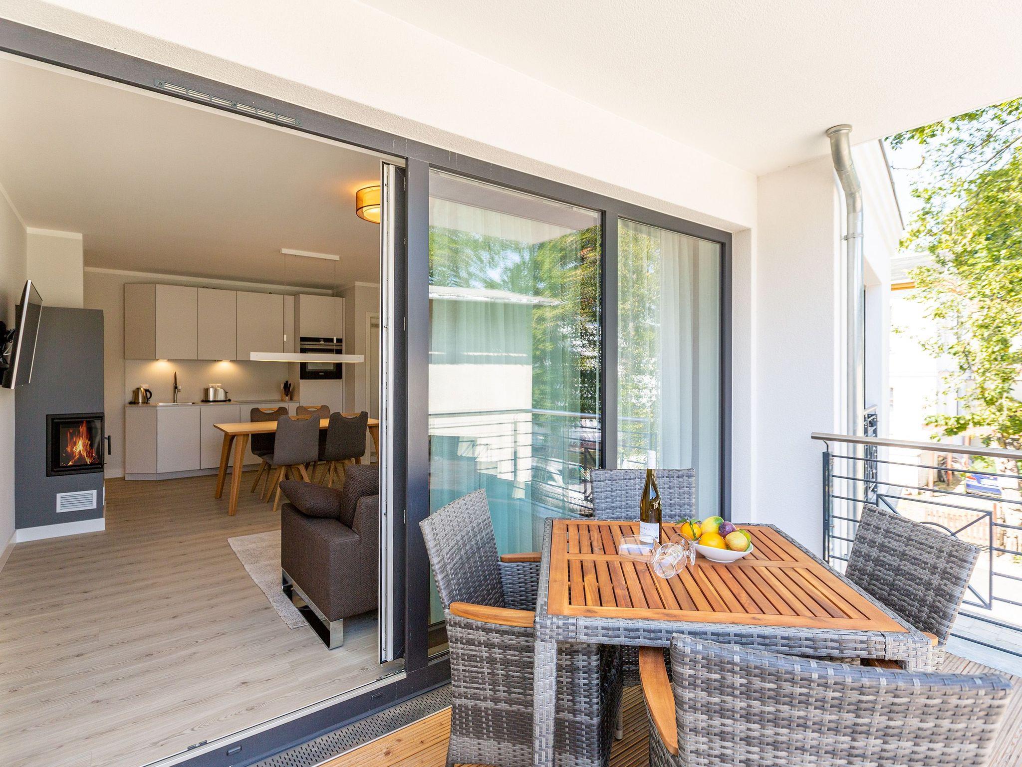 Hell und mit einer freundlichen Atmosphäre empfängt Sie dieses wunderschöne, 68 Quadratmeter große Ferienappartement im 1. Oberschoss. Bodentiefe Fenster lassen viel Sonne in das moderne Urlaubsdomizil und schenken lichte Behaglichkeit für bis zu vier Personen und ein Kleinkind (im Kinderreisebett). Ganz gleich ob Sie draußen auf dem Balkon (7 Quadratmeter) in den Gartensesseln die frische Ostseeluft genießen oder auf der bequemen Sofalandschaft im offenen und geräumigen Wohn-Esszimmer einen spannenden Film auf dem Flat-TV schauen ? Sie werden sich hier wohlfühlen. Für kuschelige und vor allem romantische Stunden sorgt ein Kamin. Ein schöner, großer Esstisch lädt zum Schlemmen ein. In der ins Wohnzimmer integrierten Küchenzeile finden Sie alles Nötige zum Kochen feiner Gerichte. Hochwertige Markengeräte erleichtern Ihnen die Arbeit während und nach dem Zubereiten der Mahlzeiten. Für erholsame Nächte warten zwei gut ausgestattete Schlafzimmer nur darauf, Sie ins Traumland zu entführen. Jedes der beiden Zimmer verfügt über ein Boxspringdoppelbett (1,80 m x 2,00 m), über einen Flat-TV und einen geräumigen Schrank mit Spiegel und viel Stauraum. Damit es beim täglichen Frischmachen nicht zu Engpässen kommt, hat Ihr Ferienappartement zwei Badezimmer mit Dusche und WC. Die Duschen sind ebenerdig und bieten Wasserliebhabern viel Platz. Eines der Badezimmer besitzt eine finnische Sauna und einen Waschtrockner. Bei Anreise liegen Handtücher bereit und auch die Betten sind bezogen. Sie brauchen sich also um solche Dinge nicht mehr selbst kümmern. Das WLAN ist kostenfrei nutzbar. In der Tiefgarage ist Ihnen der Stellplatz Nr. 9 zugewiesen.