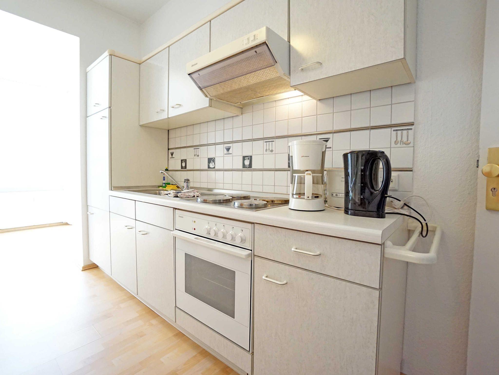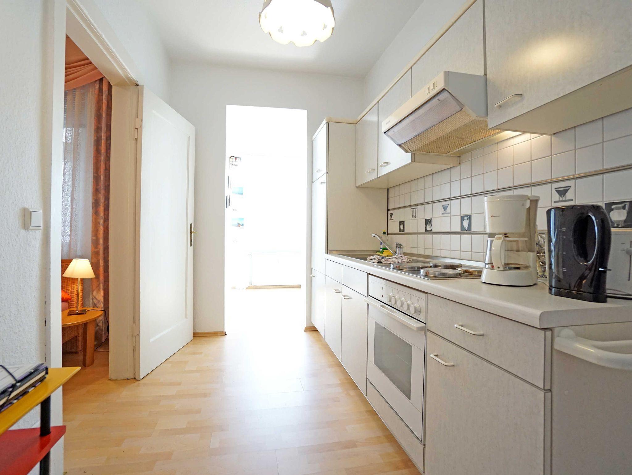 Die gemütlich eingerichtete, helle 2-Zimmer-Ferienwohnung (37m²) befindet sich im ersten Obergeschoss des Hauses. Die Nichtraucherwohnung verfügt über ein Wohnzimmer (Sitzecke, Flachbildfernseher) mit Zugang zu einem großen Balkon, einer separaten Küche (Kühlschrank, Herd und Ofen), einem geräumigen Duschbad und einem innenliegenden Schlafzimmer (Fenster zum Wohnzimmer) mit Doppelbett (140x200cm).