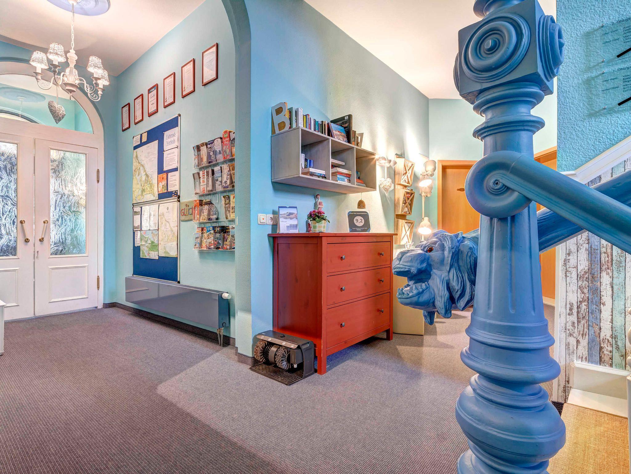 Im ganzen Haus gibt es kostenloses WLAN. Außerdem bieten wir Ihnen gegen Gebühr unsere Kaffee- und Teestation und einen Getränkekühlschrank an, die 24 Stunden für Sie bereit stehen.