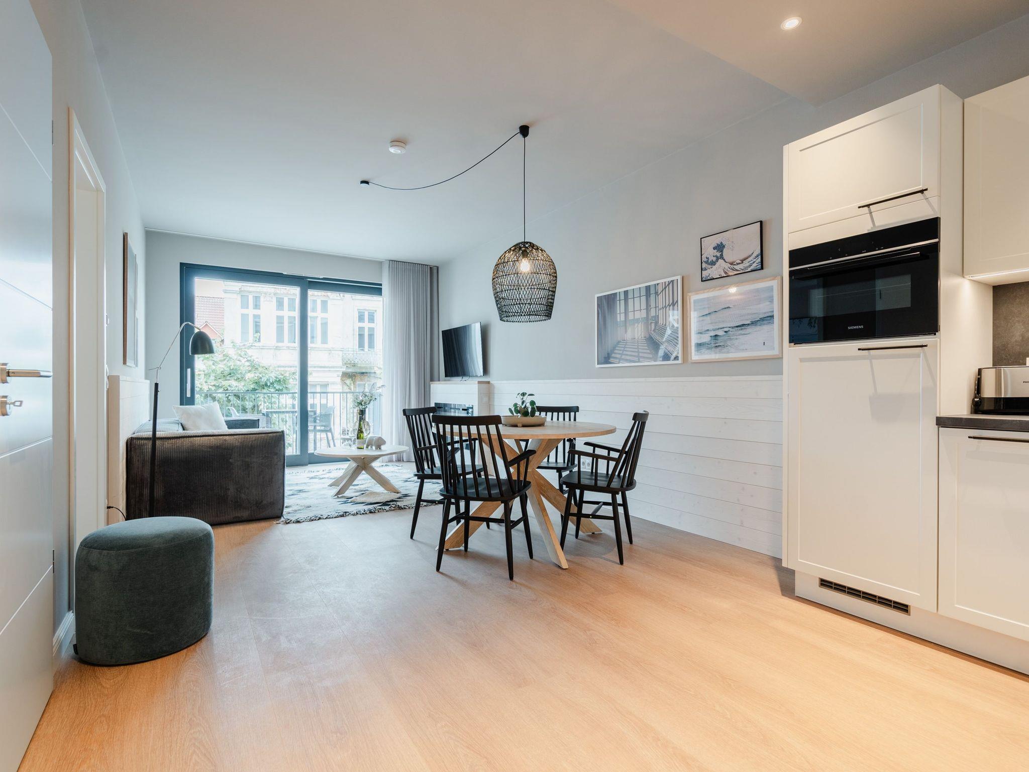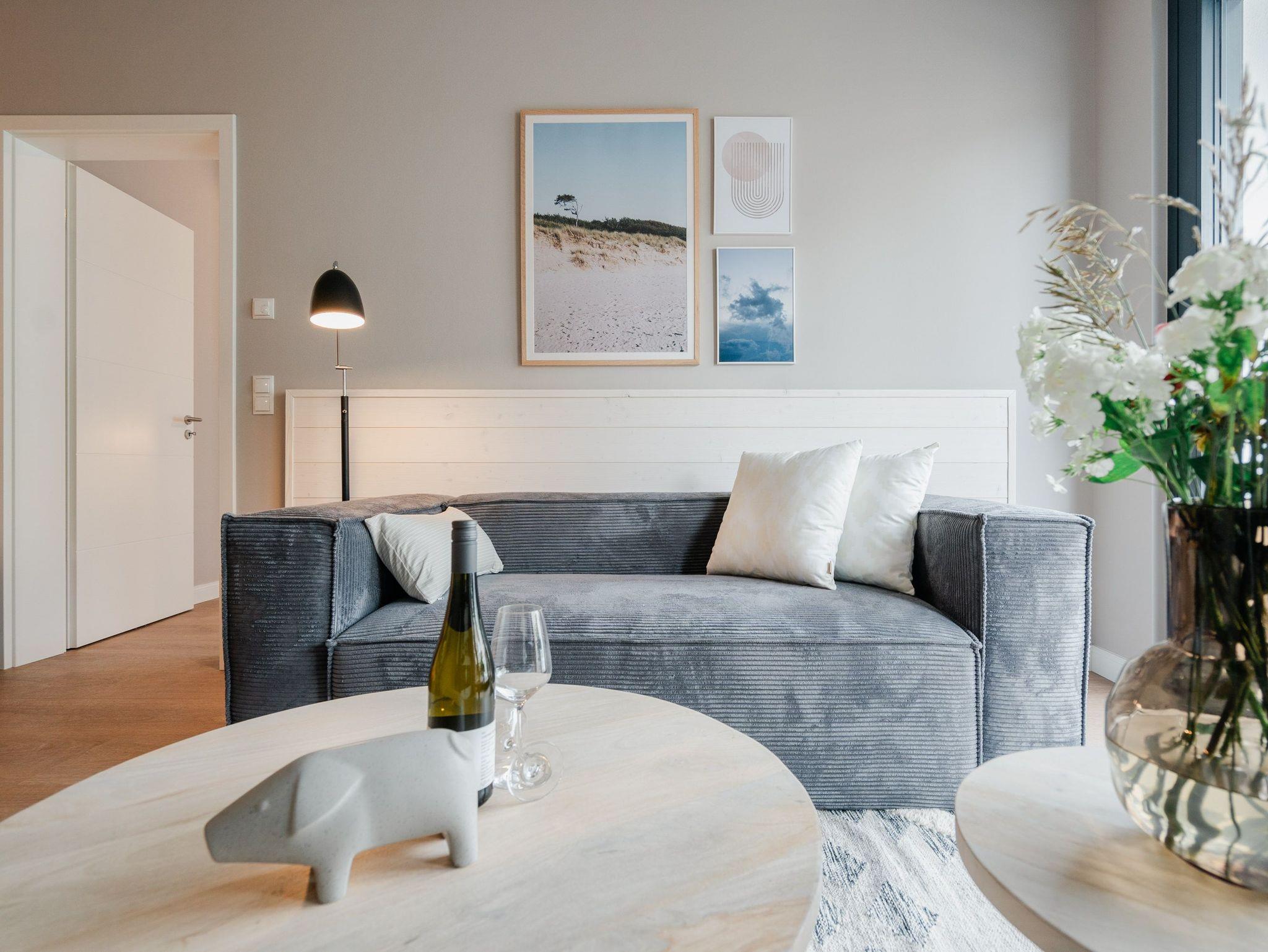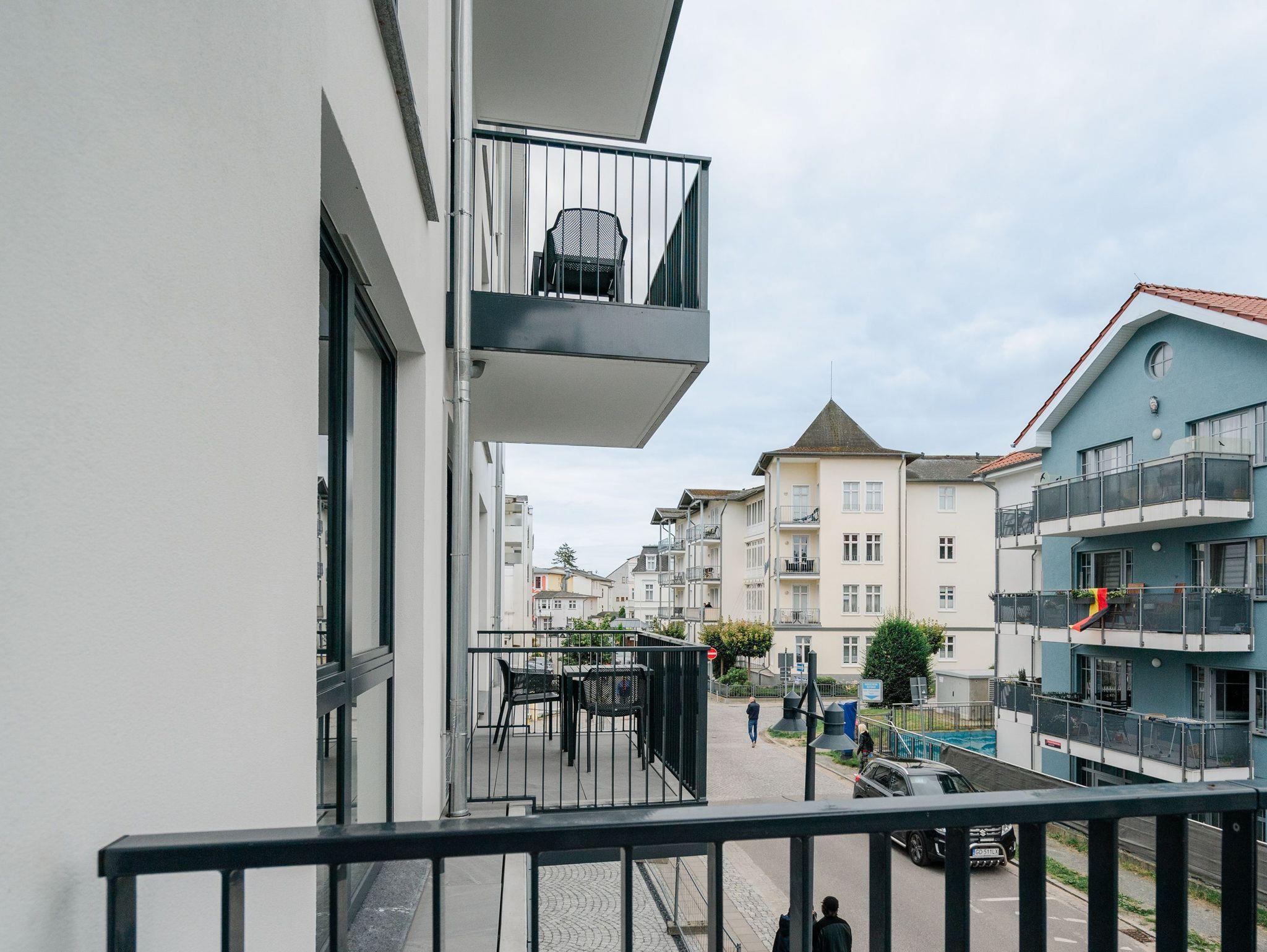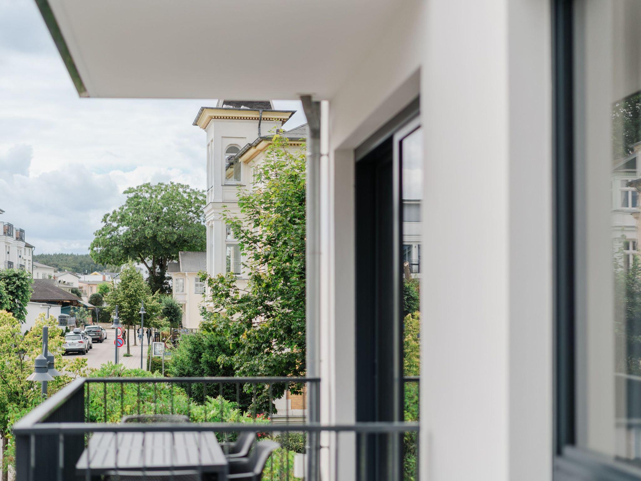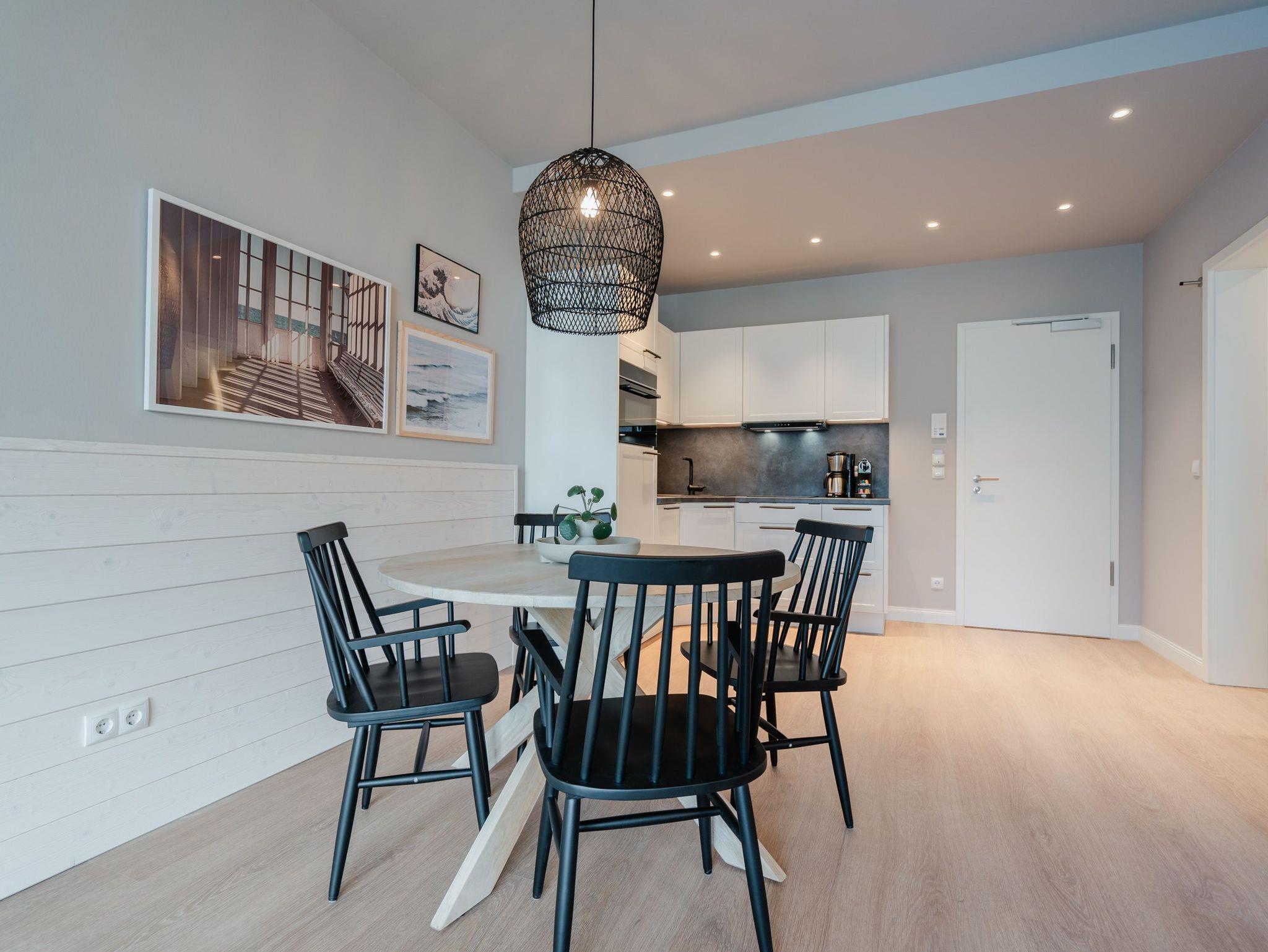 Willkommen im 2-Raum-Appartement B 1.6 im Haus B der Strandterrasse ? in Ihrem gemütlichen und komfortablen Urlaubsreich auf Zeit. Die Ferienwohnung in der 1. Etage ist mit ihren 53 Quadratmetern ideal für 2 Personen. Ein stilvolles Wohn-Esszimmer bietet Ihnen alle Annehmlichkeiten für eine traumhafte Auszeit am Meer, das nur knapp 80 Meter von Ihrer Unterkunft entfernt ist. Von dem kleinen Süd-West-Balkon mit Gartentisch und zwei Stühlen können Sie die Wellen rauschen hören und dabei den Anblick der schönen Bädervillen des Ortes genießen. Das Innere Ihres Domizils wartet mit viel Gemütlichkeit und einem wundervollen Designkonzept auf. Ein kuscheliges Sofa lädt zum Faulenzen vor dem Elektrokamin (ohne Wärmeabgabe) ein. Ein großer Flat-TV (50 Zoll) sorgt für Unterhaltung. In der offenen Küche können Sie alles für leckere Abendessen oder Frühstücke zubereiten. Die Elektrogeräte wie der Backofen, der 3-Platten-Induktionsherd, die Geschirrspülmaschine und die Nespresso-Kapselmaschine sind hochwertige Helferlein. Der große Esstisch bietet Platz für ausgiebige Gerichte oder ausufernde Brettspiele. Verbringen Sie erholsame Stunden im komfortablen Boxspringdoppelbett (1,80m x 2,00m) im Schlafzimmer. Hier finden Sie zudem einen geräumigen Kleiderschrank und einen zweiten 50 Zoll Flat-TV. Das moderne Duschbad ist mit einem Waschtisch, einer Infrarotsaunakabine und einem WC ausgestattet. Wir wünschen Ihnen viel Freude in dieser kleinen Wellnessoase. Ein PKW-Stellplatz in der Tiefgarage sorgt für bequemes Parken. Es ist also alles bereit für Ihre entspannende Auszeit an der Ostsee.