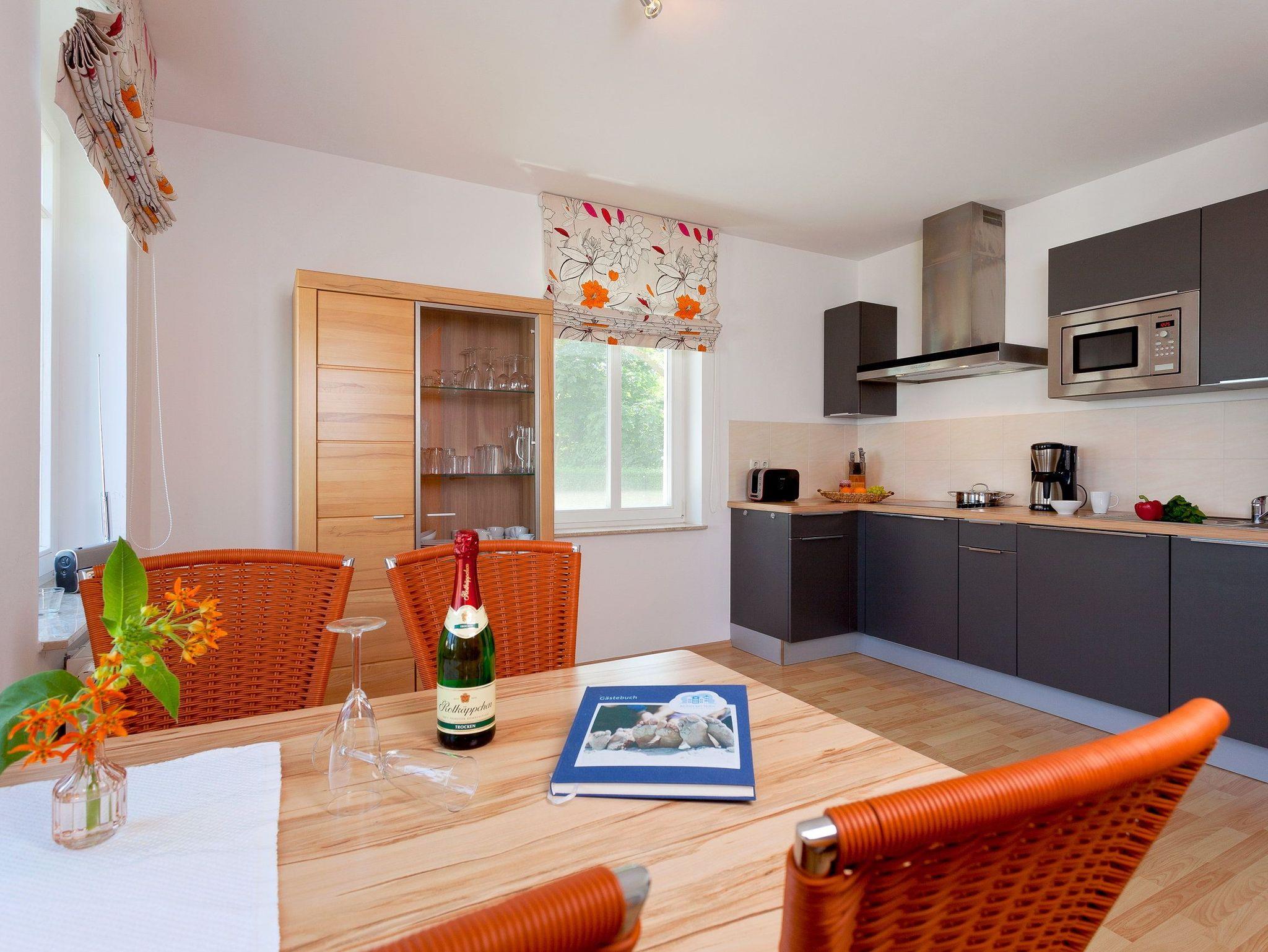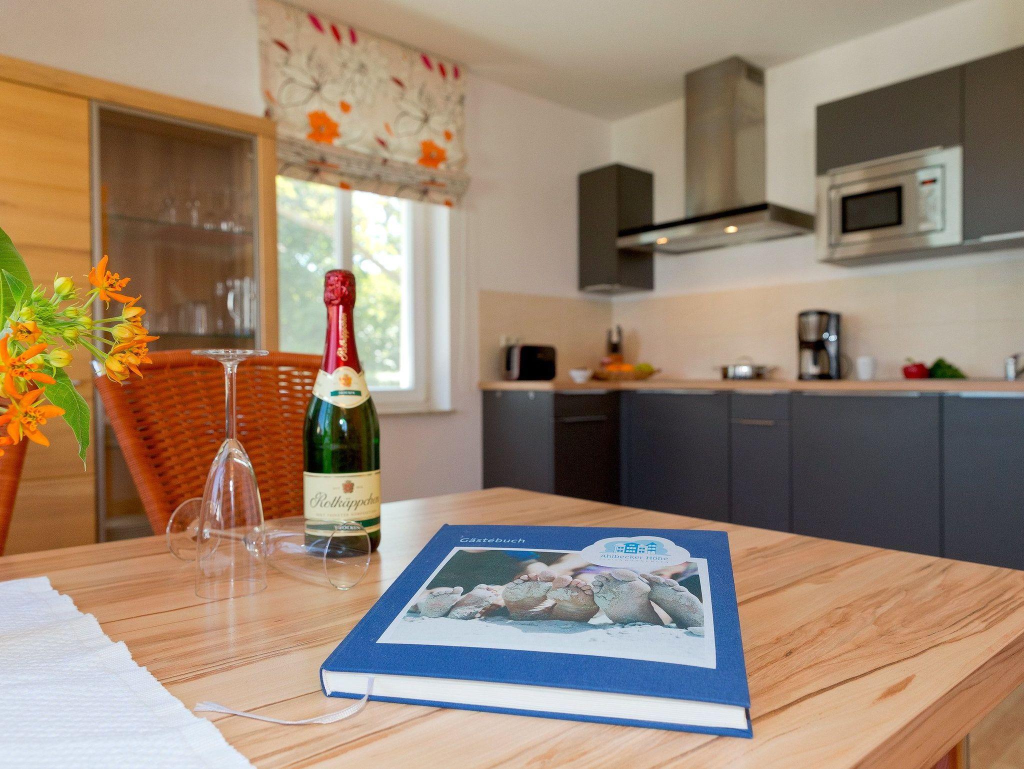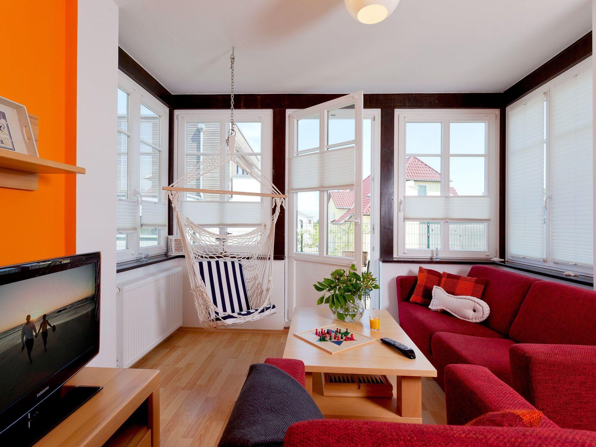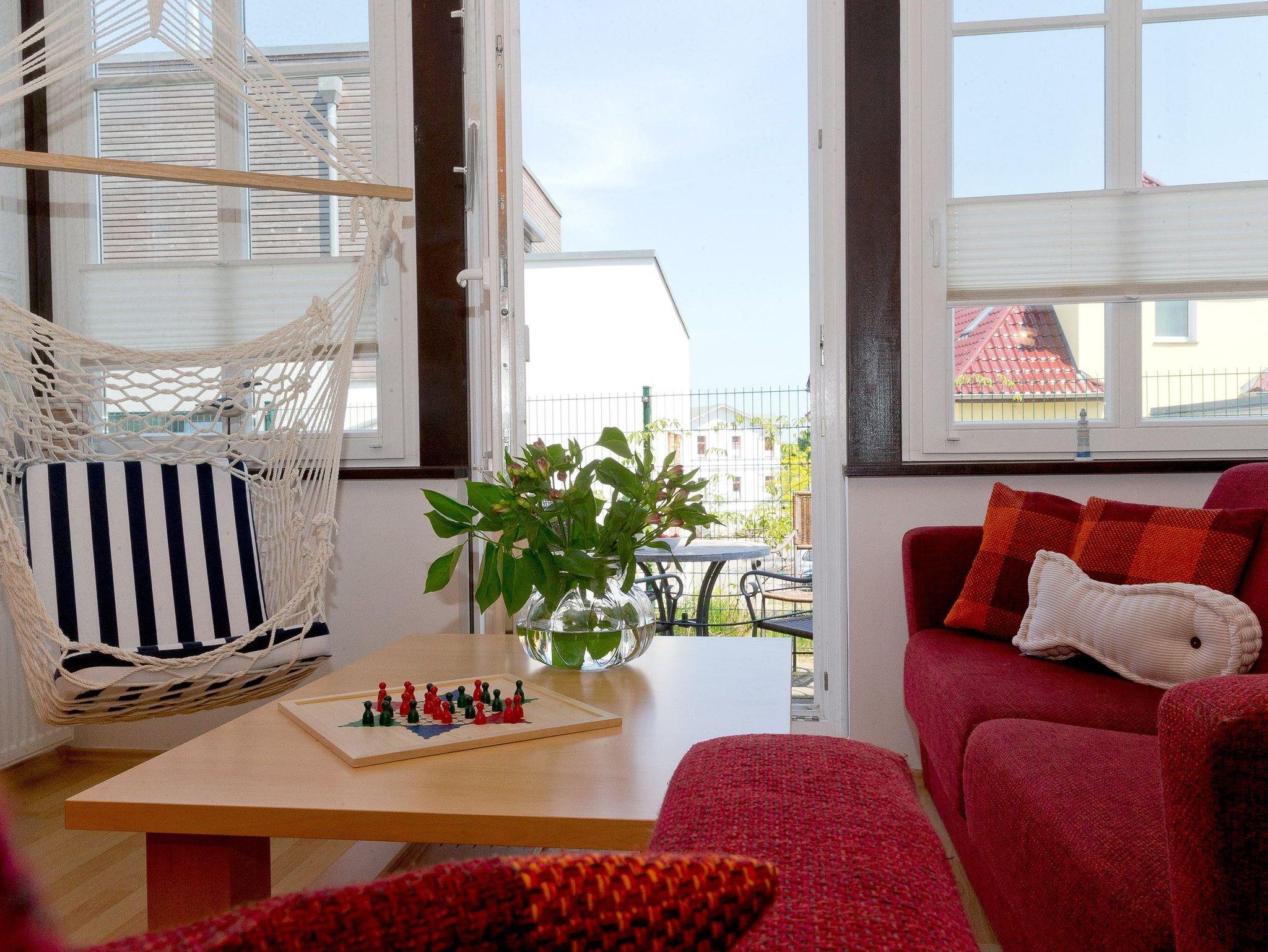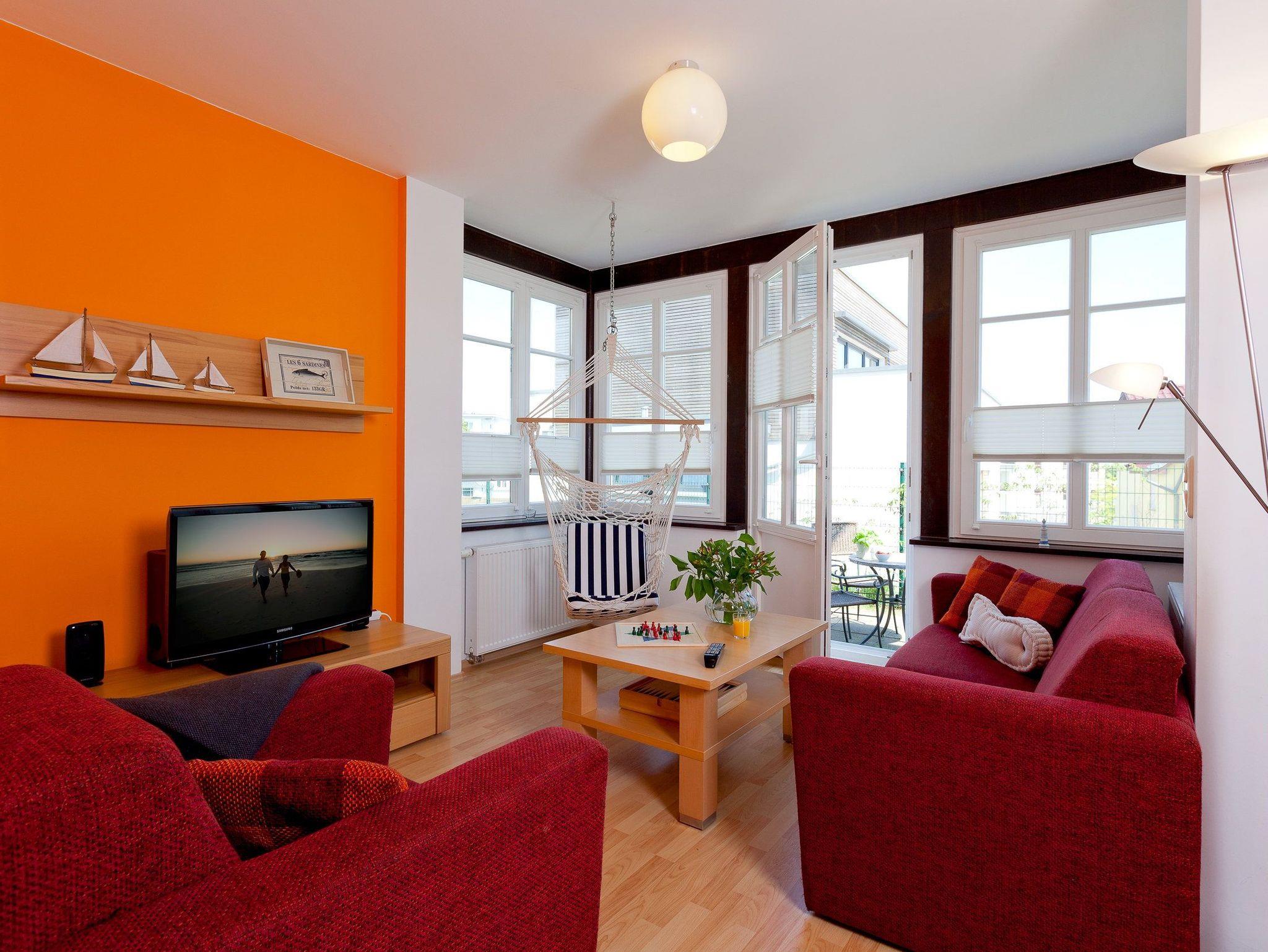 Das 2-Raum Appartement befindet sich im Hochparterre der Ahlbecker Höhe in der Bergstraße 5 im Seebad Ahlbeck und ist mit seinen 43 Quadratmetern das ideale Urlaubsdomizil für 4 Personen. Der Wohnbereich verfügt über eine gemütliche Couch (mit Ausziehfunktion für Aufbettung) mit Leselampe, Flachbild TV (32 Zoll), CD / DVD / Bluray 2.1 Dolby System, iPod-Dockingstation sowie einen Esstisch mit Schwingstühlen.