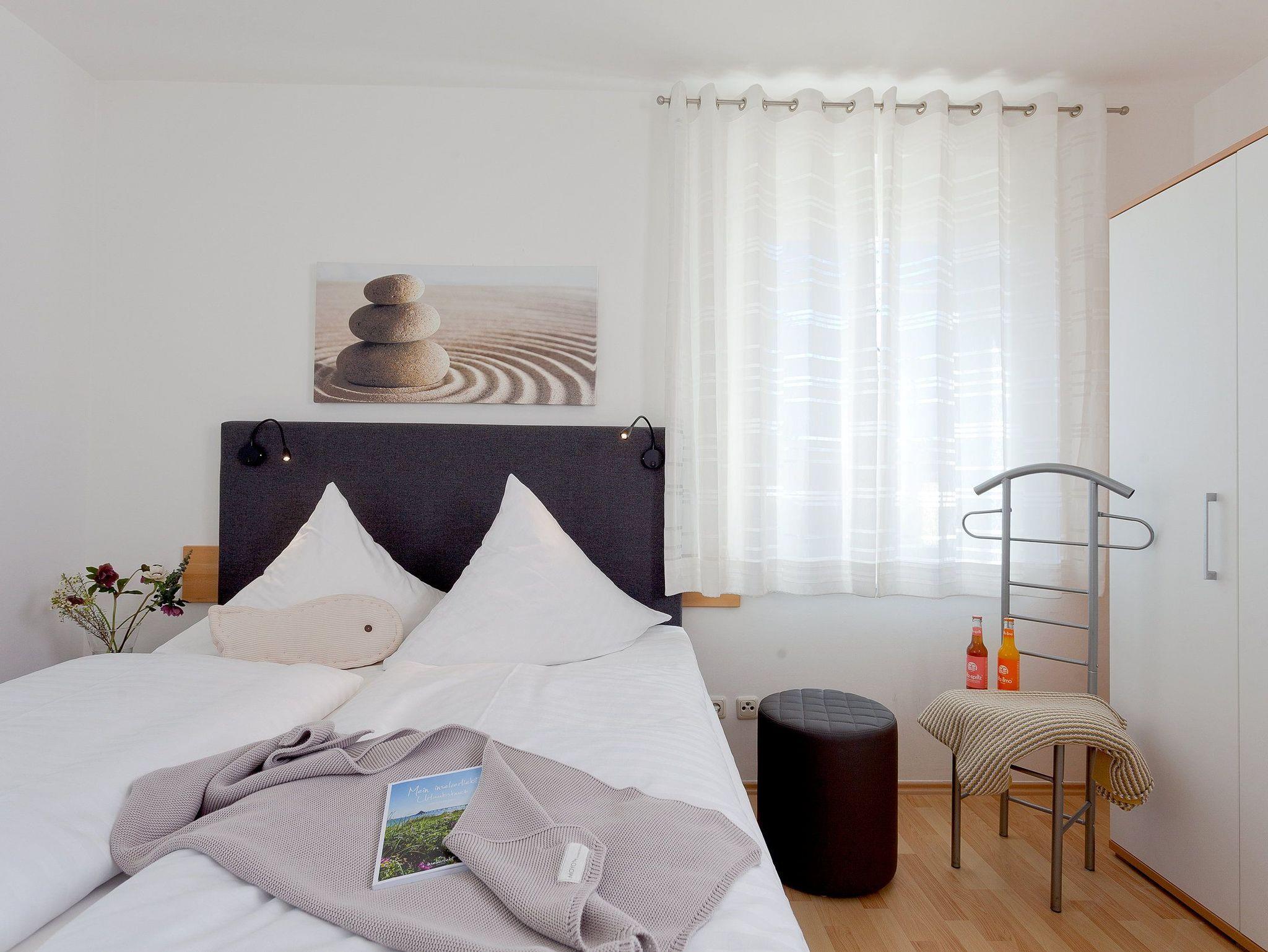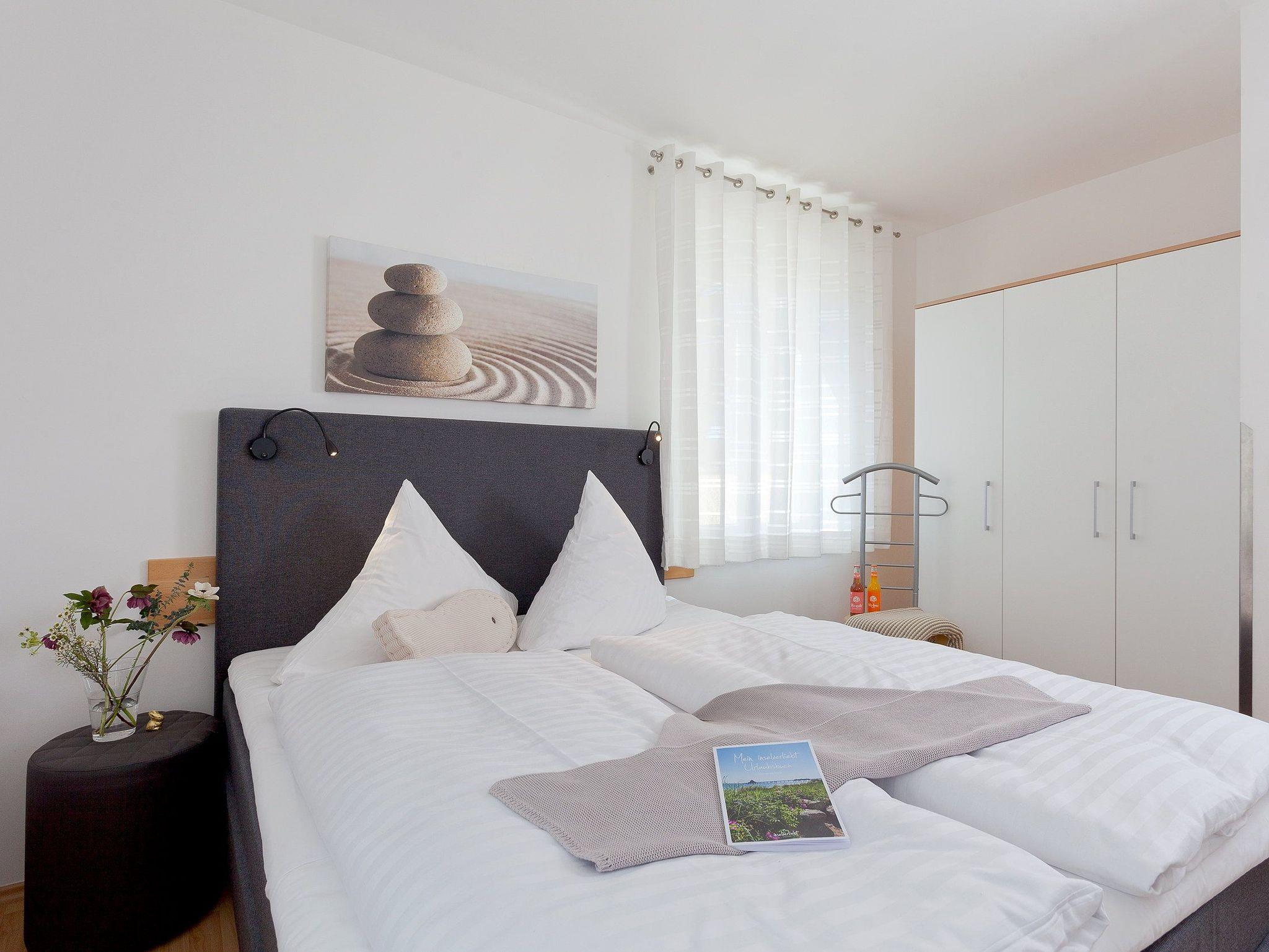 Damit Sie Ihre wohlverdiente Urlaubszeit bereits am Anreisetag in vollen Zügen genießen können, haben wir das Bett für Sie und das für Ihre lieben Mitreisenden bereits bezogen und ein Duschtuch sowie ein kleines Handtuch bereitgelegt. Die Aufbettung für ein Kind ist im Schlafzimmer im Babyreisebett (max. 3 Jahre) oder auf Faltmatratze (3[nbsp] bis 10 Jahre) 80 x 200 cm möglich. Die großzügige dem Wohnzimmer anschließende Terrasse lädt zu erholsamen Stunden ein. Das Badezimmer ist mit Dusche, WC, Handtuchtrockner und Fußbodenheizung ausgestattet.