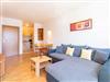 Dieses Appartement verfügt über ein Schlafzimmer mit Doppelbett und zusätzlich einer Schlafcouch.