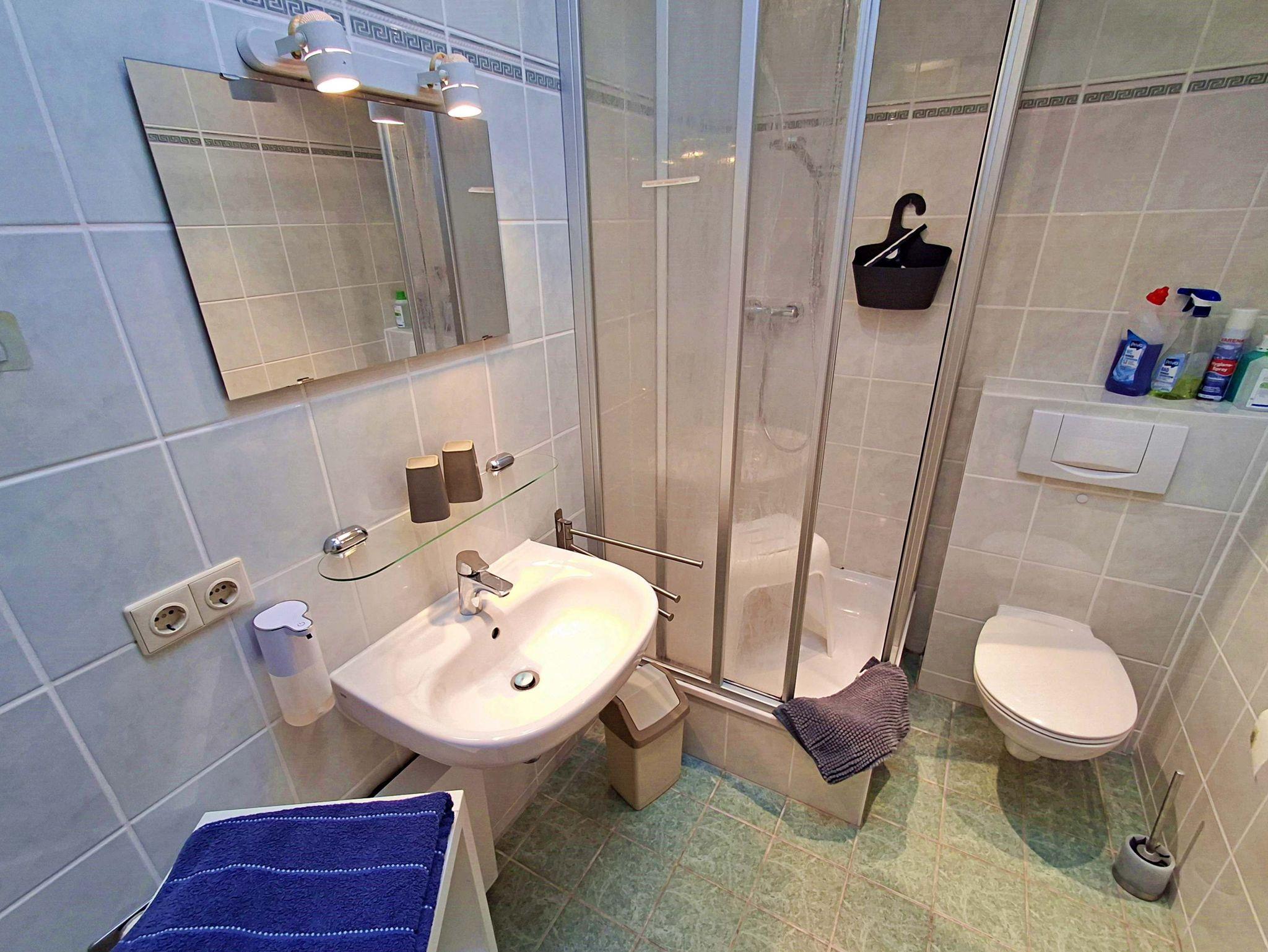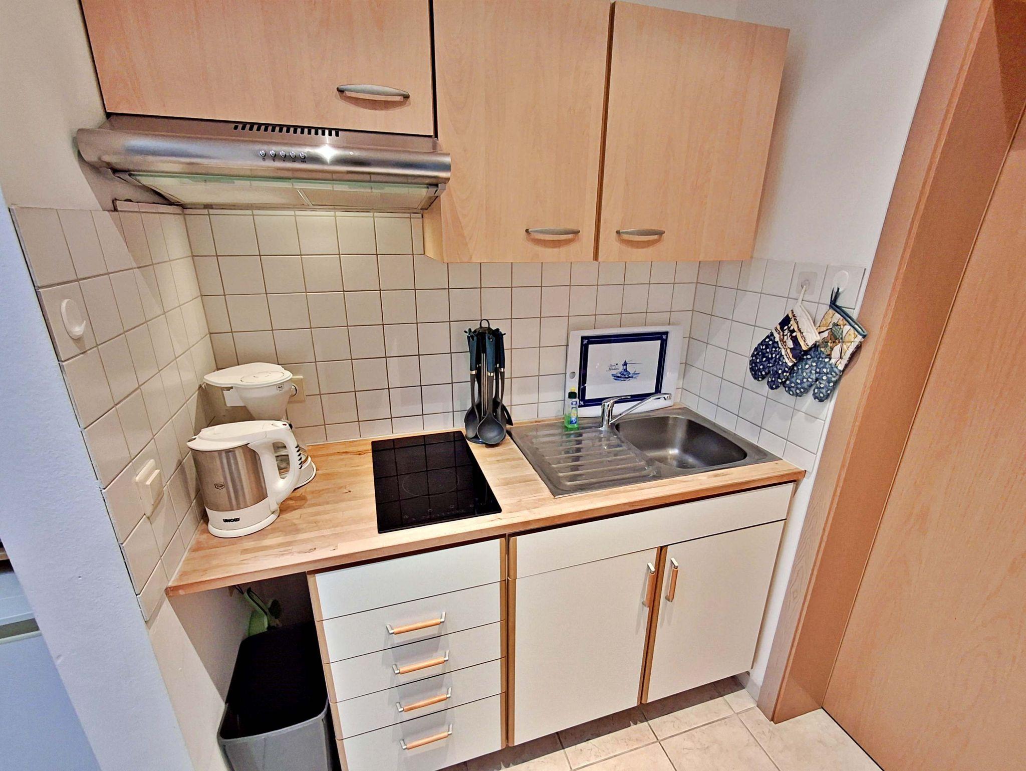 Diese helle und freundliche 40qm große 2-Raum-Ferienwohnung im Erdgeschoss verfügt über einen kombinierten Wohn- und Schlafraum (Schlafcouch für max. 1 Kind bis acht Jahre) mit Kabel-TV und Radio sowie ein Schlafzimmer mit einem Doppelbett. Die Küchenzeile ist mit 2-Felder-Ceran-Herd, Kühlschrank, Mikrowelle, Kaffeemaschine, Toaster und Geschirr ausgestattet. Das Badezimmer hat Dusche und WC. Die Terrasse mit Sitzmöbeln lädt zum Verweilen ein und vervollständigt die Ausstattung der Wohnung. Ihren Pkw können Sie gern an der Ferienwohnung parken (nicht für Kleinbusse und Anhänger geeignet).