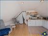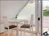Das offene Atelier im Dachgeschoss, mit maritimer Einrichtung hat einen gemütlichen Wohnküchenbereich mit Balkon. Die Küche ist ausgestattet mit zwei Kochplatten, Geschirrspüler, Kühlschrank, Mikrowelle und Minibackofen. TV, WLAN und Klimaanlage sind vorhanden. Bitte beachten Sie, das aufgrund der Dachkonstuktion die Deckenhöhe maximal 2.12m beträgt.
