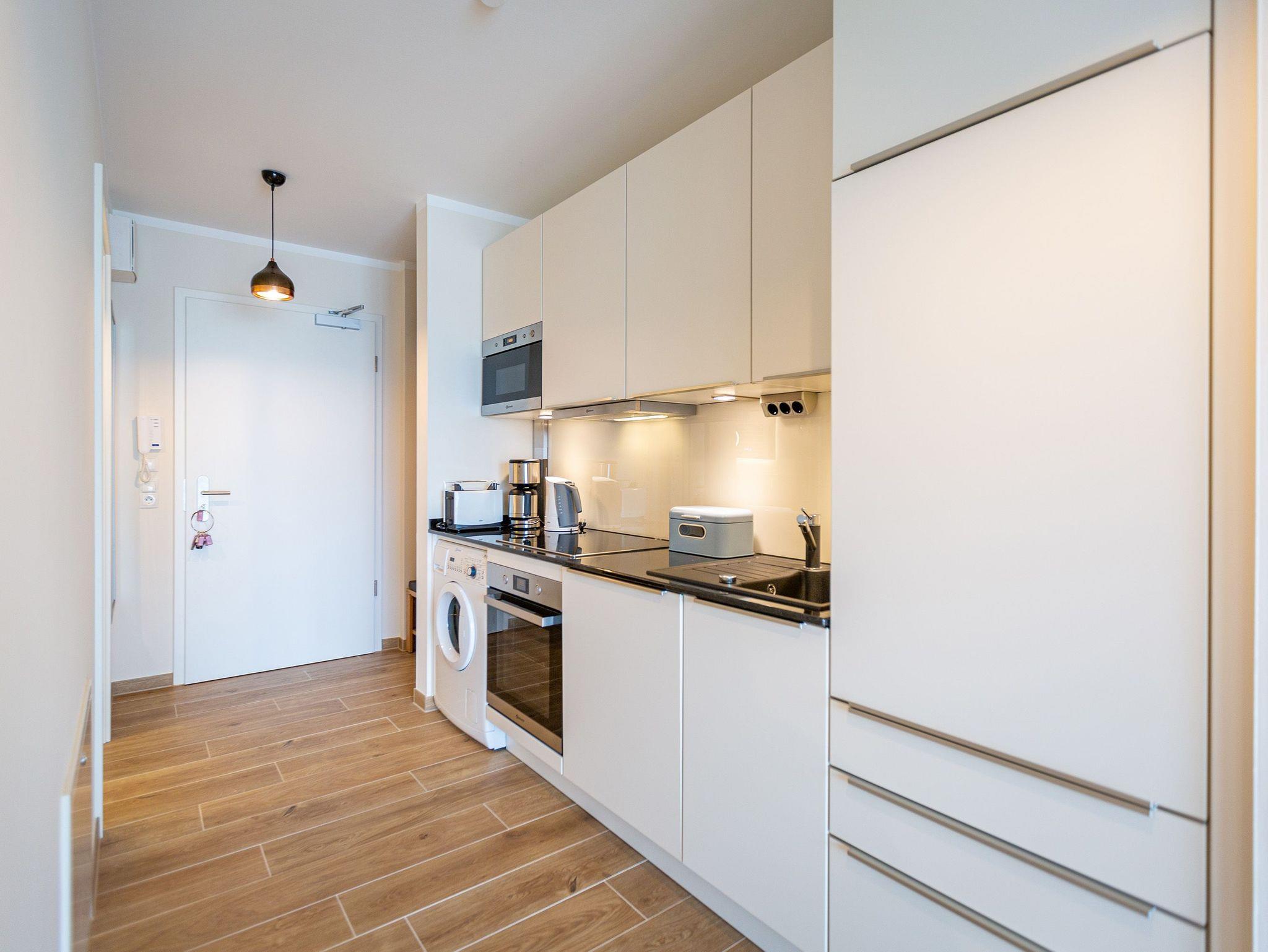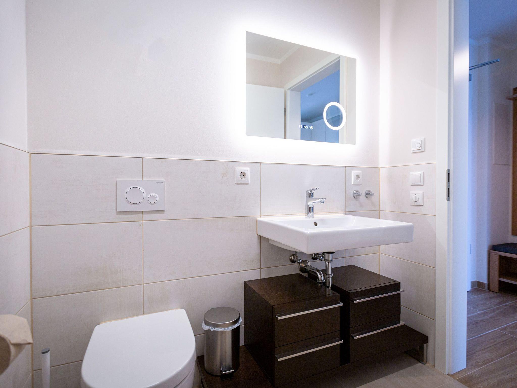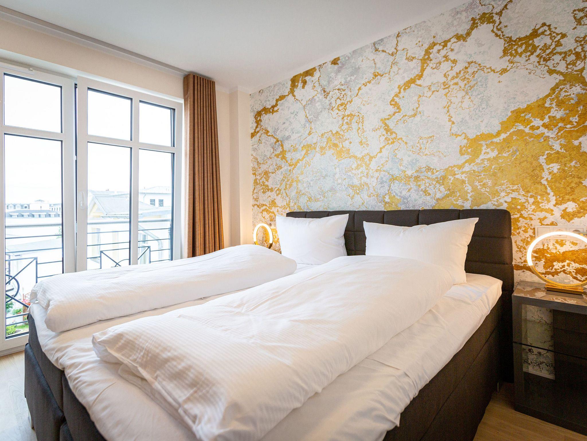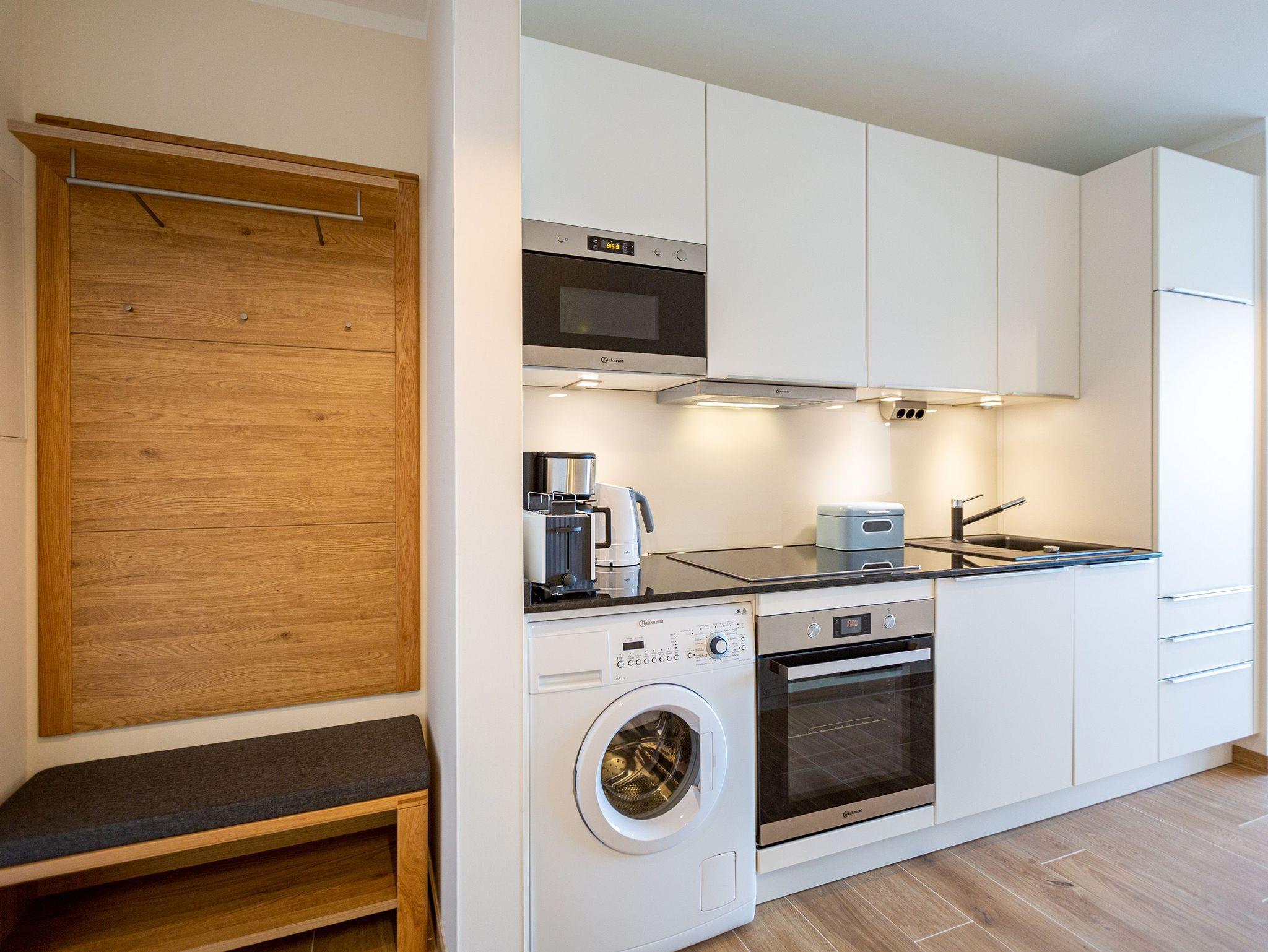 Auf den 45 Quadratmetern dieses eleganten und gemütlichen Feriendomizils im 1. Obergeschoss können Sie es sich zu zweit super kuschelig machen. Ob in der Finnischen Sauna, im komfortablen Boxspringbett (1,80 m x 2,00 m) im Schlafzimmer oder auf dem Sofa vor dem Kaminofen ? dieses Appartement lädt einfach dazu ein, sich pudelwohl zu fühlen. Die beiden Zimmer sind mit viel Gespür fürs Wohlige und viel Geschmack eingerichtet. Vom Wohnzimmer aus haben Sie Zugang auf einen kleinen Nord-Ost-Balkon (8 Quadratmeter) mit Gartenmöbeln. Er ist ideal, um hier in der Sonne zu frühstücken. Das Wohnzimmer selbst ist mit hochwertigen Möbeln, einem Flat-TV und besagtem Kaminofen eine kleine Wohlfühlzone. Am schönen Glastisch direkt vor den bodentiefen Fenstern lässt es sich wunderbar essen. Zubereiten können Sie Ihre Mahlzeiten in der ans Wohnzimmer angrenzenden, offenen Küche. Ob Induktionsherd, Spülmaschine, Toaster, Kaffeemaschine, Wasserkocher oder Geschirr ? alles ist vorhanden. Sogar eine Waschmaschine ist vorhanden und kann genutzt werden. Ein wunderschönes, kleines Paradies ist das Schlafzimmer. Das Bett sorgt für entspannte Träume. Im Badezimmer mit Dusche, WC und Föhn erwartet Sie mit der Finnsichen Sauna ein eigenes SPA. Handtücher liegen schon bereit. Sie können also jederzeit loslegen mit der Schwitzkur. Auch die Betten sind bei Anreise schon bezogen. Das WLAN ist kostenfrei und in der Tiefgarage ist für Sie ein Stellplatz reserviert. Zudem gibt es im Keller einen separaten Fahrradabstellraum.