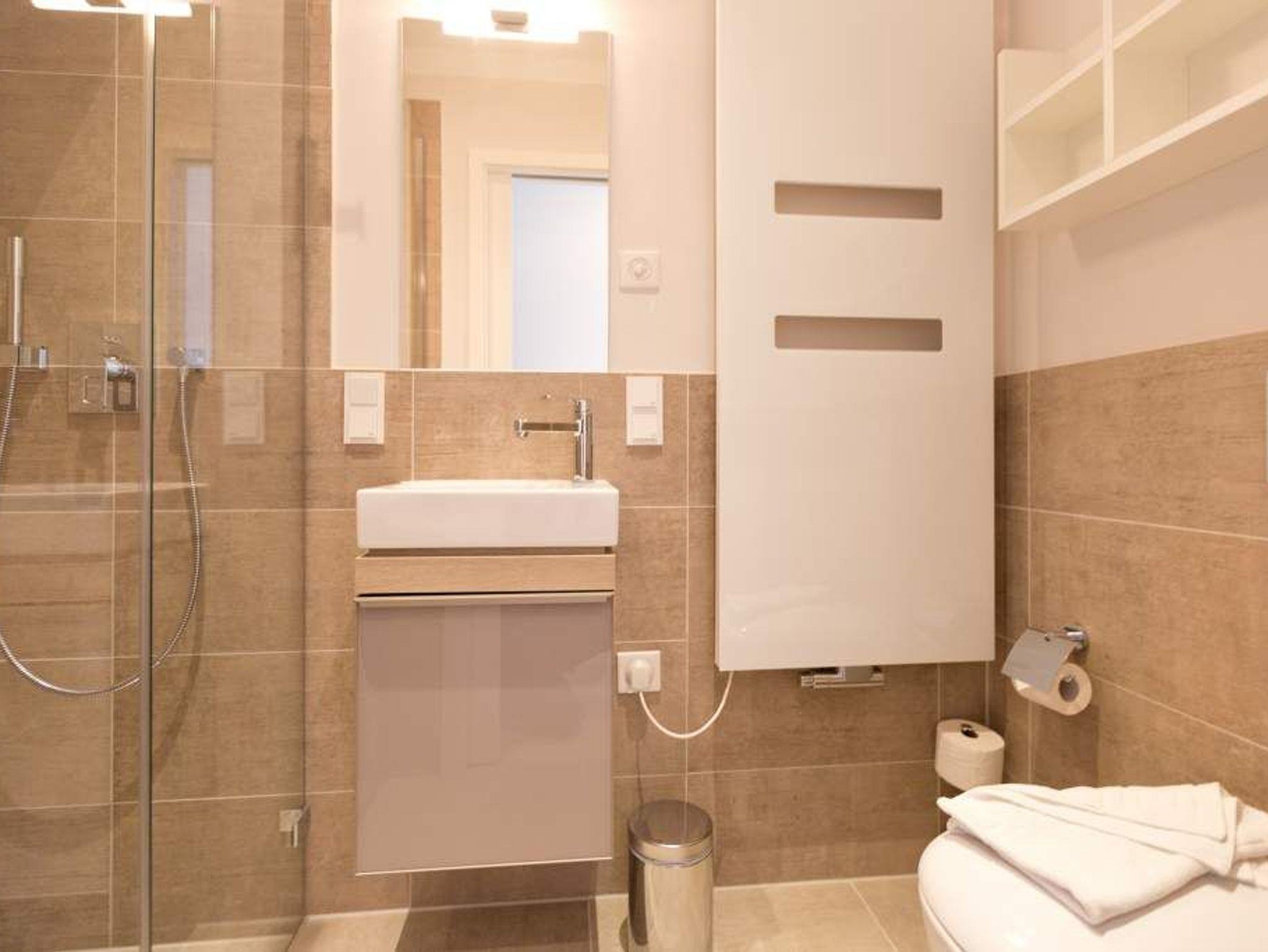 Die Freiheit ist Blau. Schon beim Aufwachen legt sich Ostseeweite in den Blick. 78 Quadratmeter Wohlfühlwelt bieten die 3 Räume der Wohnung Nummer 6 im ersten Obergeschoss der Villa Westend. Meerblick gibt es hier jedoch nicht nur aus einem der beiden Schlafzimmer. Auch der großzügige Wohnbereich mit offener Küche und angrenzendem Balkon wartet mit Weite bis an den Horizont auf. Eingerichtet vom Innenarchitekten mit eleganten Möbeln und stylischen Wohn-Accessoires sorgt das Appartement für Urlaubsgefühl pur. Highlight nicht nur im Winter ist der Elektro-Kamin. Kühle Abende werden damit zu wohligen Augenblicken. Zwei Schlafzimmer bieten in hochwertigen Boxspringdoppelbetten (1,80 m x 2,00 m) Platz für 4 Personen. Zum Verdunkeln können Außenjalousien heruntergelassen werden: hierbei handelt es sich lediglich um einen Sonnenschutz, der automatisch bei schlechtem Wetter einfährt und nicht um Außenjalousien. Alle drei Zimmer verfügen über Flat-TVs. Wie wäre es mit einem eigenen kleinen Spa-Bereich? Zwei Bäder mit exklusivem Baddesign, Tropendusche und einer Panorama-Sauna im Masterbad lassen den Urlaub zur Wellness-Auszeit werden. Und damit Sie sich wirklich um nichts kümmern müssen, liegen bereits Handtücher für Sie bereit und auch die Betten sind bezogen. Zu dieser Wohnung gehören 2 Stellplätze ( Nr. 26 [&] 27) in der Tiefgarage.