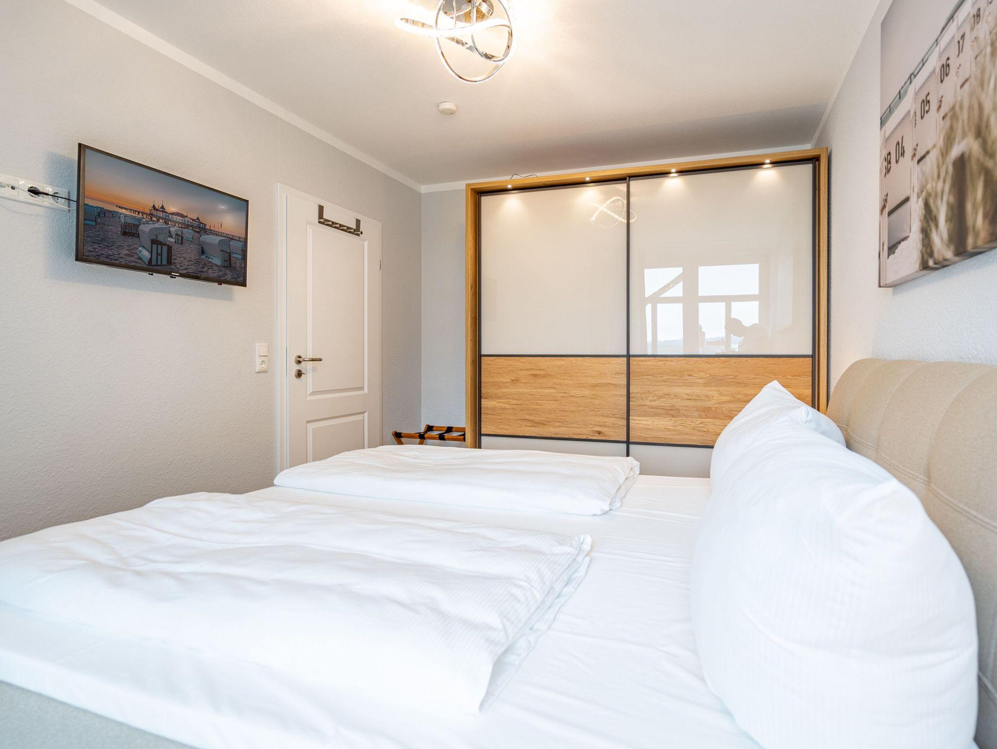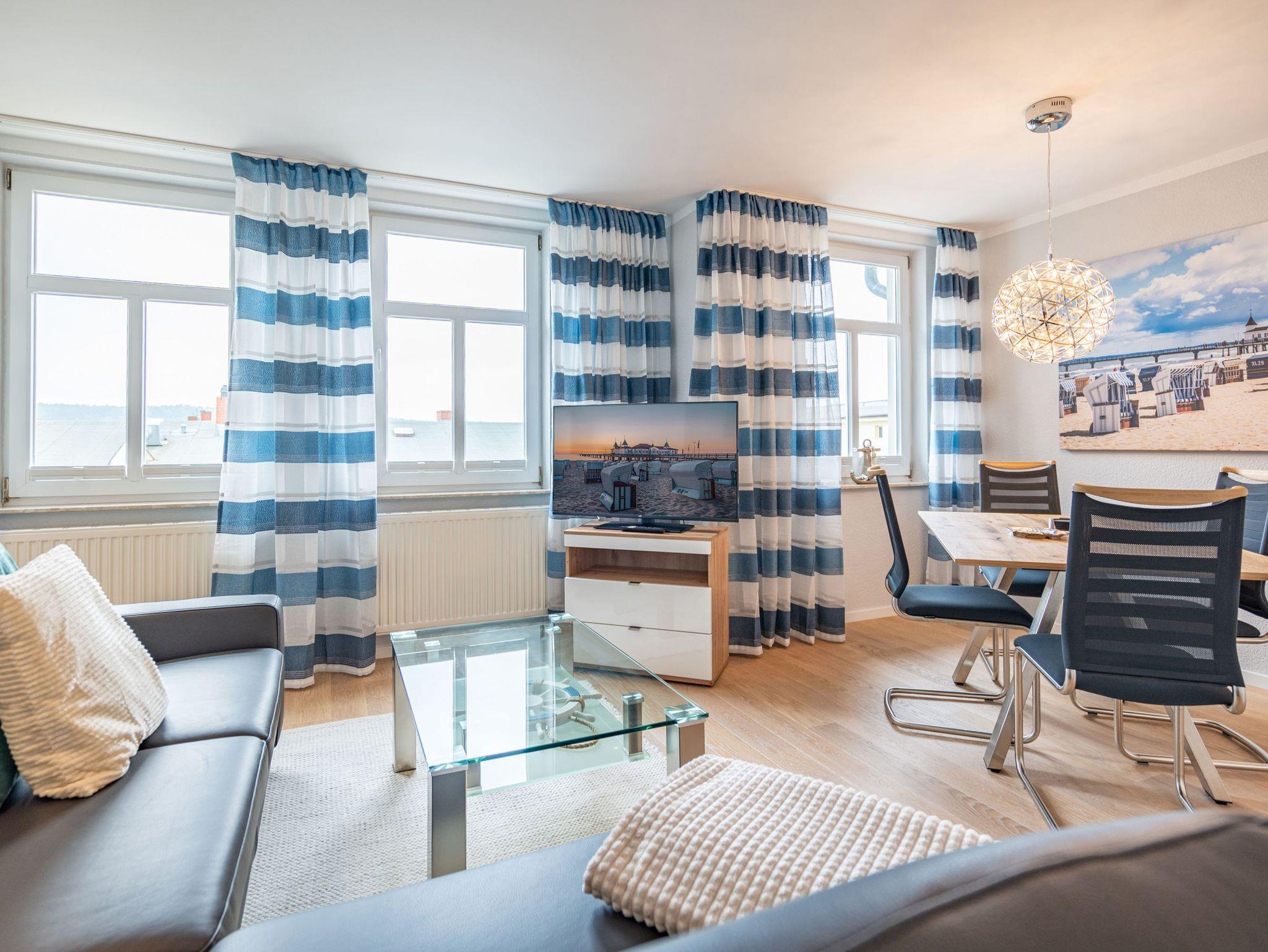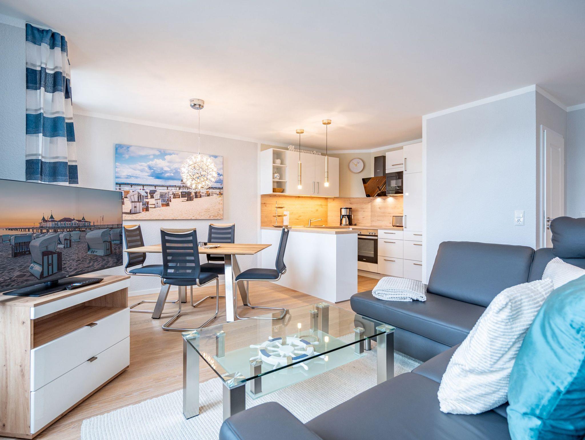 Das Haus am Kurpark besticht nicht nur durch seine zentrale, strandnahe ( 250 m) Lage im Seebad Ahlbeck, auch die moderne, geschmackvolle Ausstattung der 2-Raum-Appartements wird Sie überzeugen. Ein besonderes Extra ist der Saunabereich im Obergeschoss des Hauses, denn hier saunieren Sie ganz entspannt mit Blick über das Seebad und auf die Ostsee. Die historische Seebrücke, das Ortszentrum, Cafês und Restaurants erreichen Sie fußläufig. Für jede Wohnung steht im Haus ein PKW-Stellplatz in der Tiefgarage zur Verfügung (Einfahrthöhe 2,05m). Hier können Sie auch Ihre Fahrräder abstellen. Waschmaschine und Trockner sind gegen Gebühr nutzbar